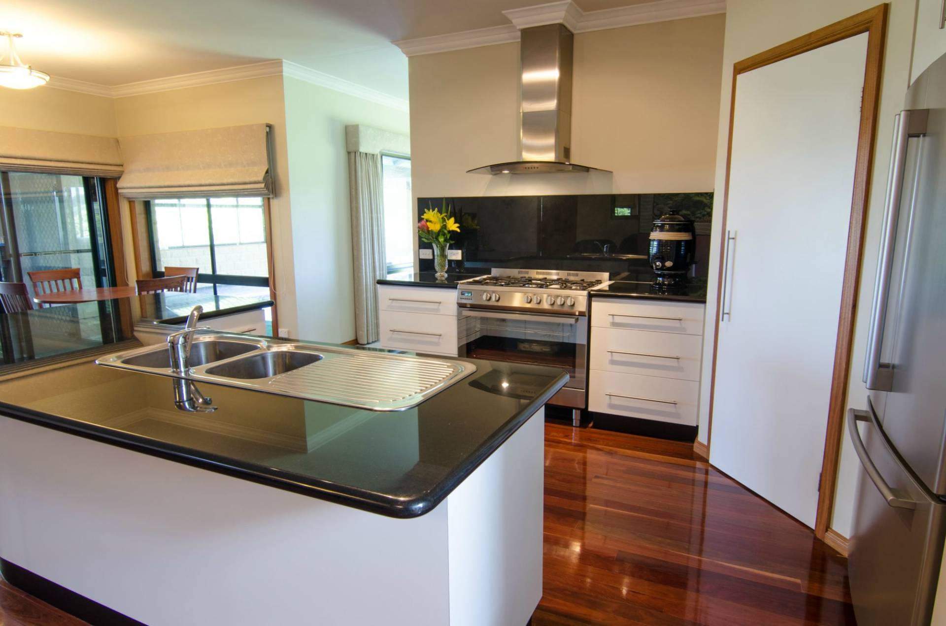 43 sqs (approx) of opulent living, this beautifully designed two storey home offers you stylish comfortable life style living. The home has a northerly aspect with elevated views of the surrounding country side. The home design features grey iron bark timber flooring in all downstairs living areas. Downstairs we have a modern and spacious kitchen with stainless steel 5 burner gas stove, dishwasher, large island bench with double sink and corner pantry. Reverse cycle split air conditioning system in the kitchen/family meals area which is one of the four living areas. The formal dining room is off the kitchen and next to the billiards room that has a built in wet bar, also downstairs is the study, 5th bedroom, powder room, bathroom, and generous size master bedroom with a spacious sized full ensuite.
