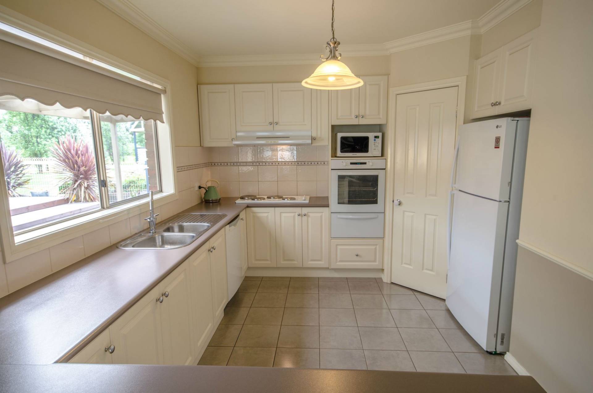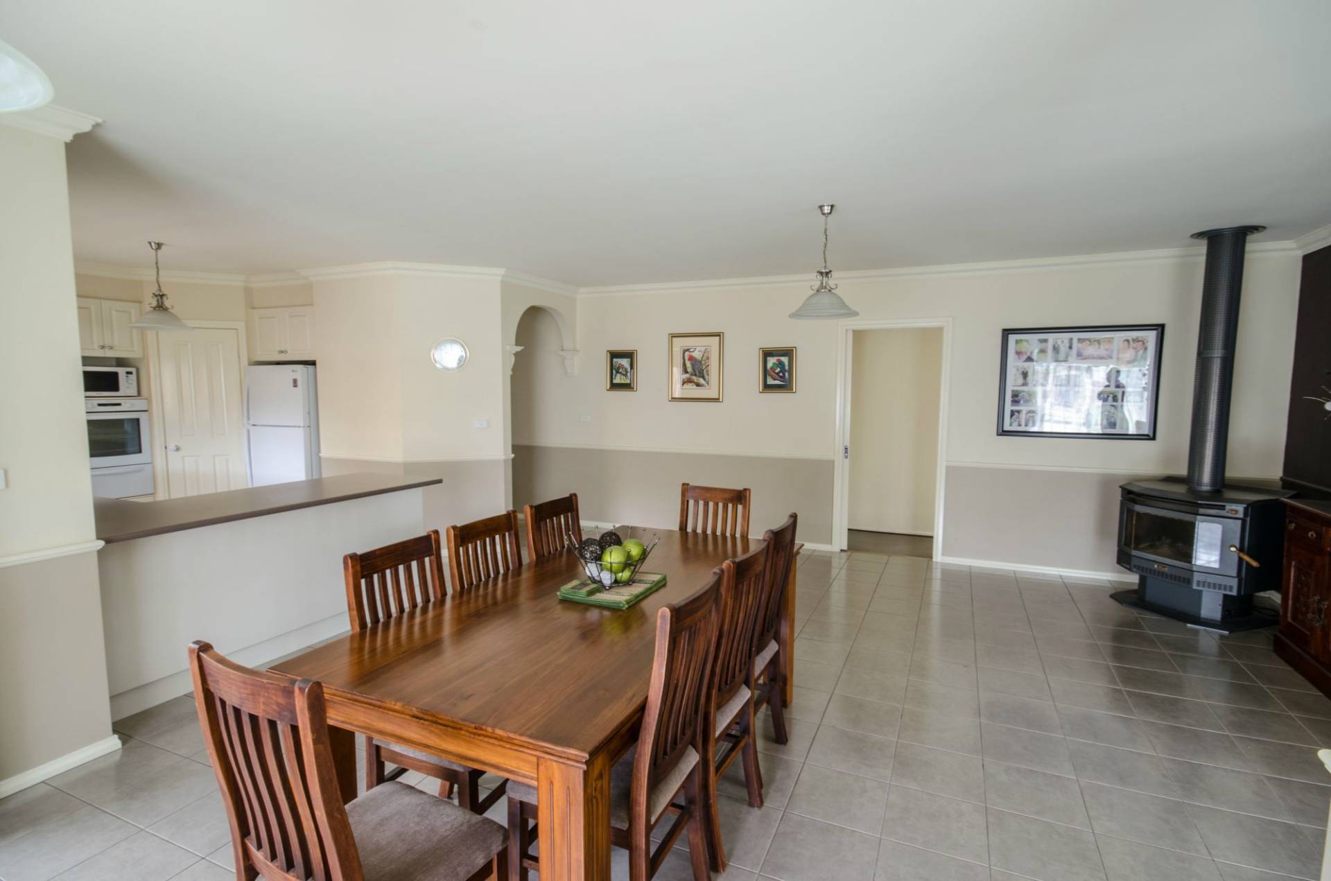 Beautiful kitchen with a corner walk in pantry, lots of cupboards, electric cooking appliances and dishwasher. The 2 large living area consist of the open plan tiled family and meals areas with rumpus/theatre room adjacent, provides a venue for relaxation away from the formal lounge area. Light and bright with high ceilings, federation cornices, quality fittings and curtains, this home is a delight. 2 x R/C split systems and large Coonara wood heater for comfortable living all year round.