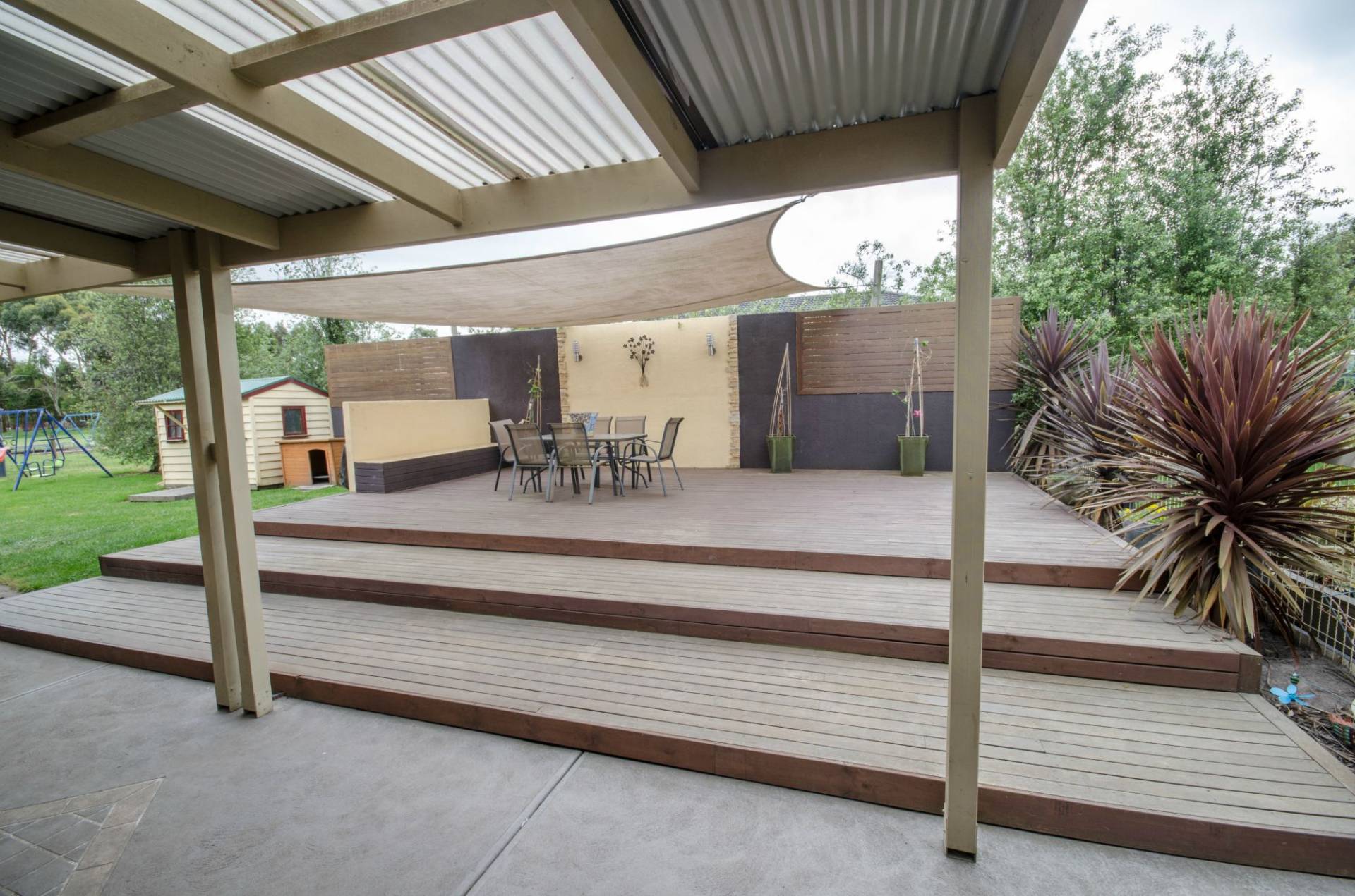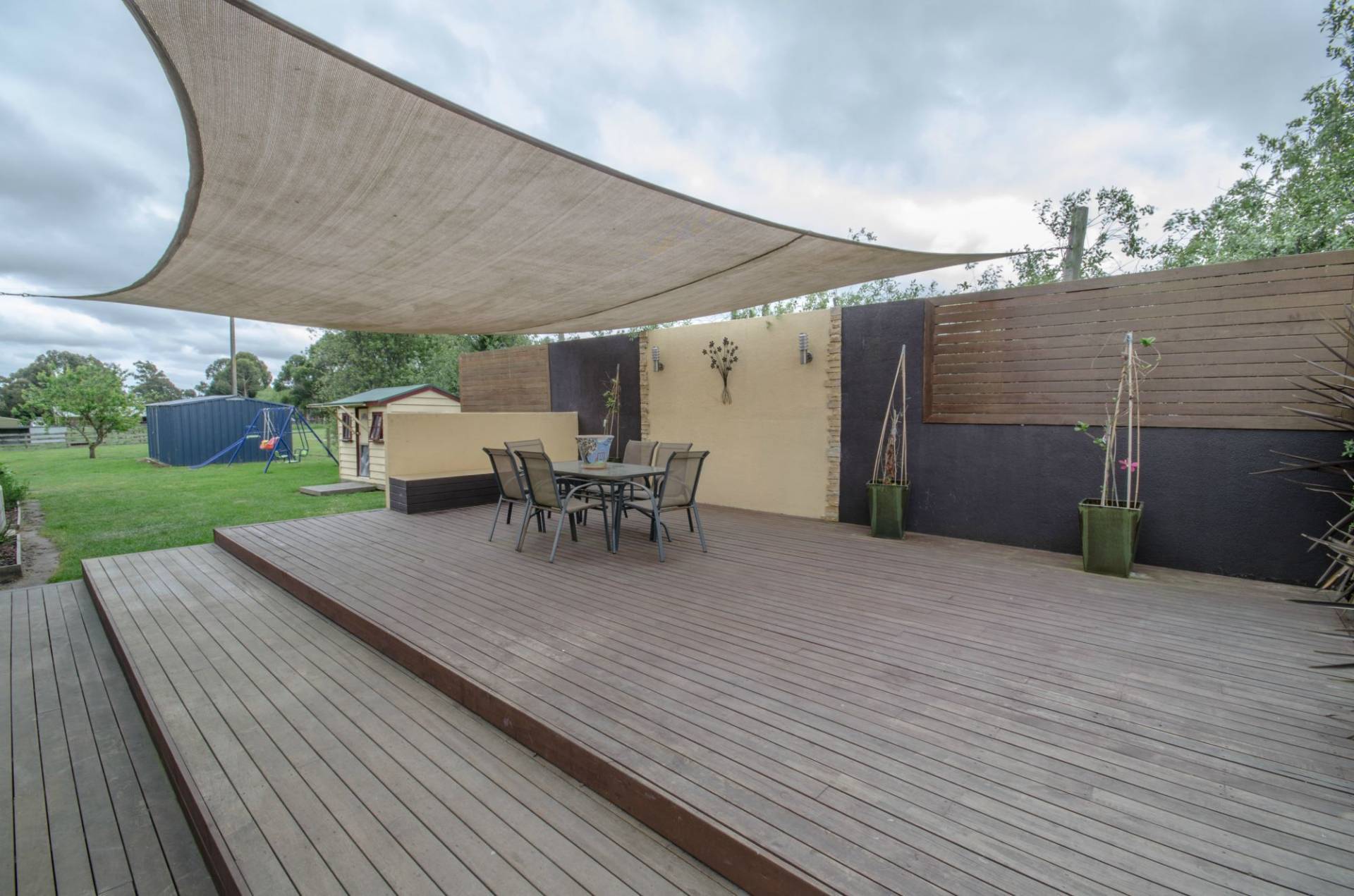 Outside the home gives that real country feel with a modern touch with an impressive timber decking/entertaining area with rendered privacy scree with built in lights all under a 7 x 5m shade sail, under cover veranda. Sewerage has been connected.
