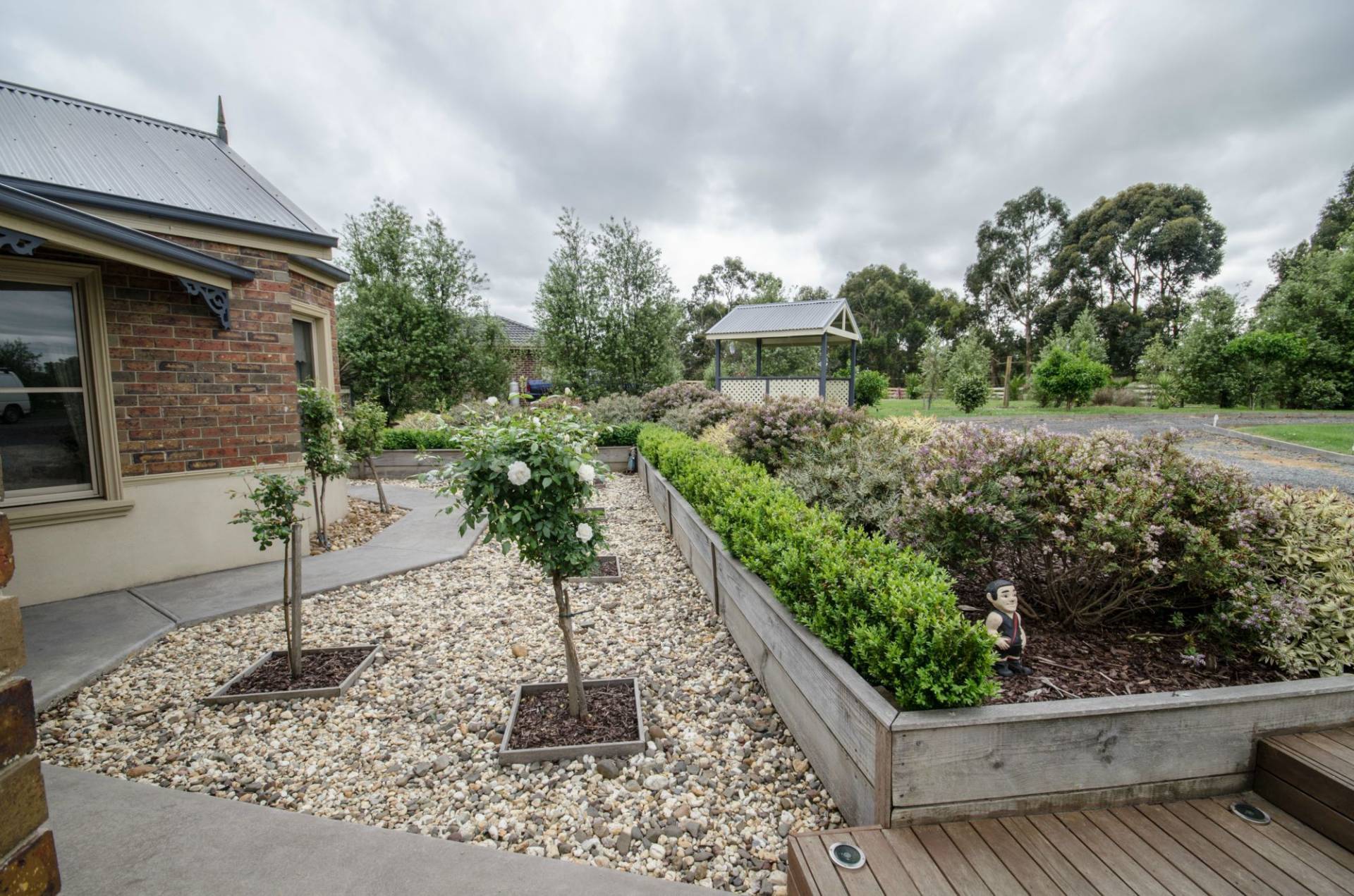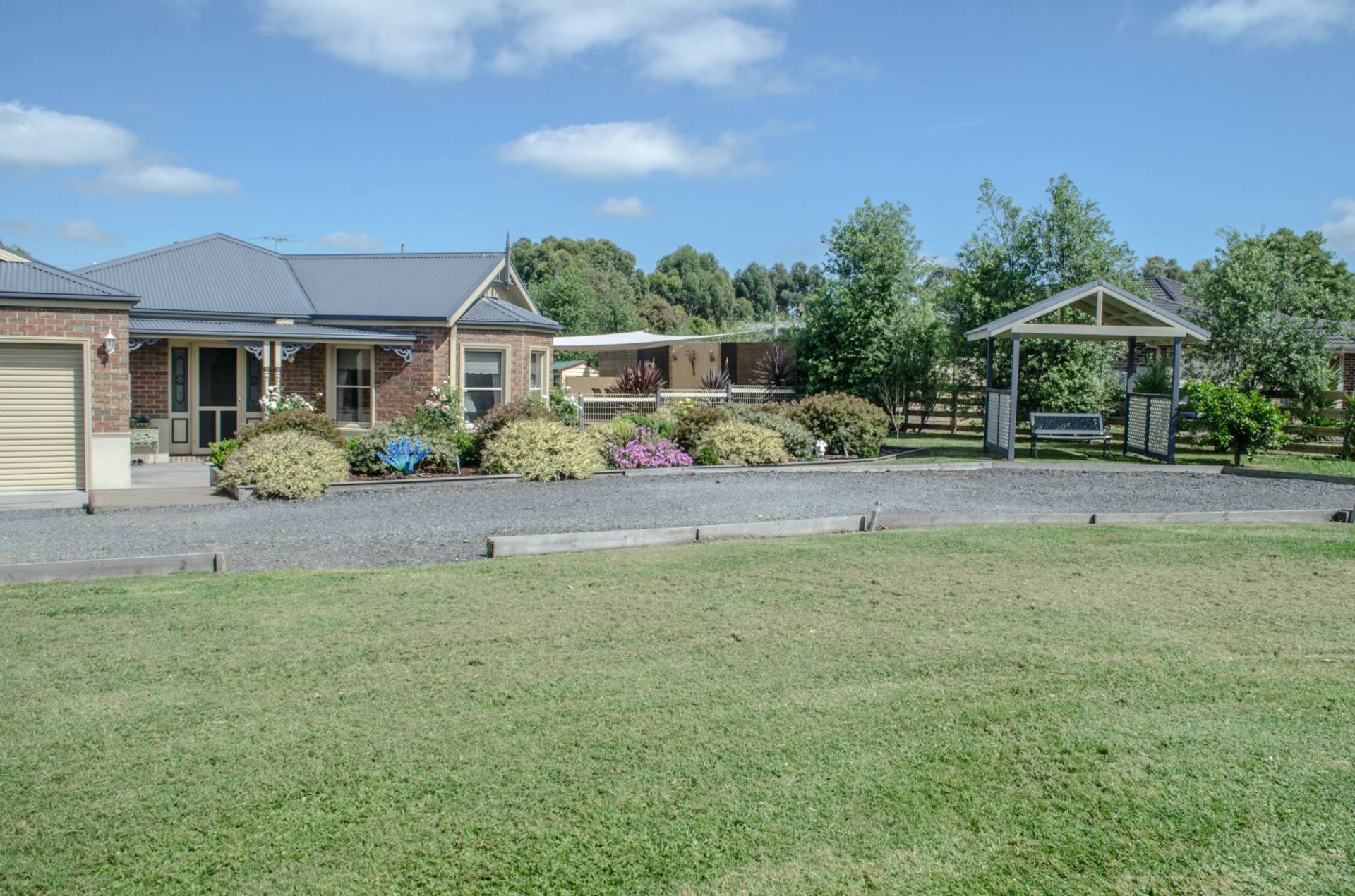 Horseshoe driveway with beautiful gardens and a Gazebo to sit watching the sun come up over the hills with your morning coffee. With ample shedding a 6 x 3m2 and a 10 x 6m high bay shed for the handyman and also all that storage. Plenty of space for the kids to kick the footy or for that dream pony with owns its paddock and many more extras.
