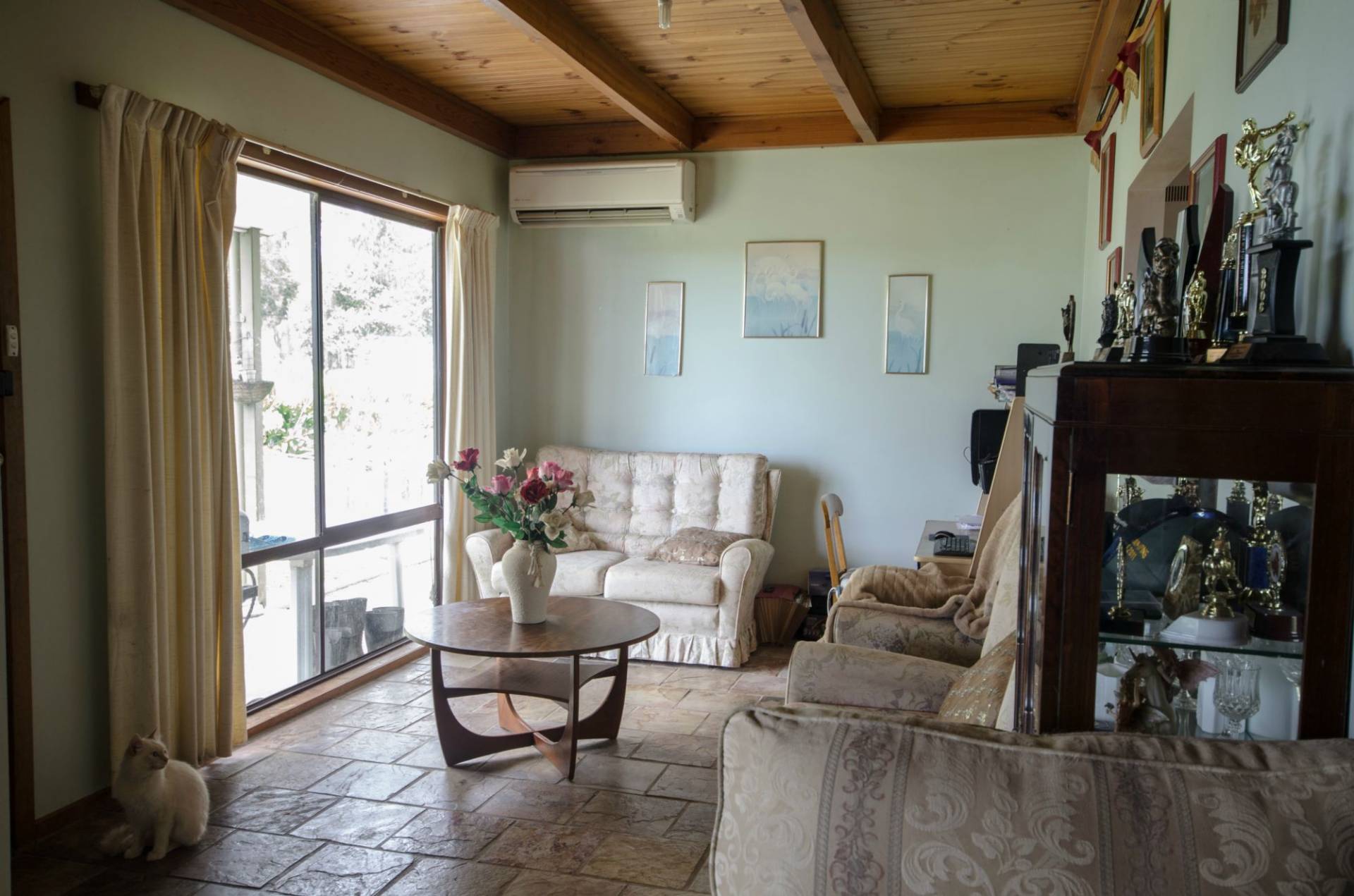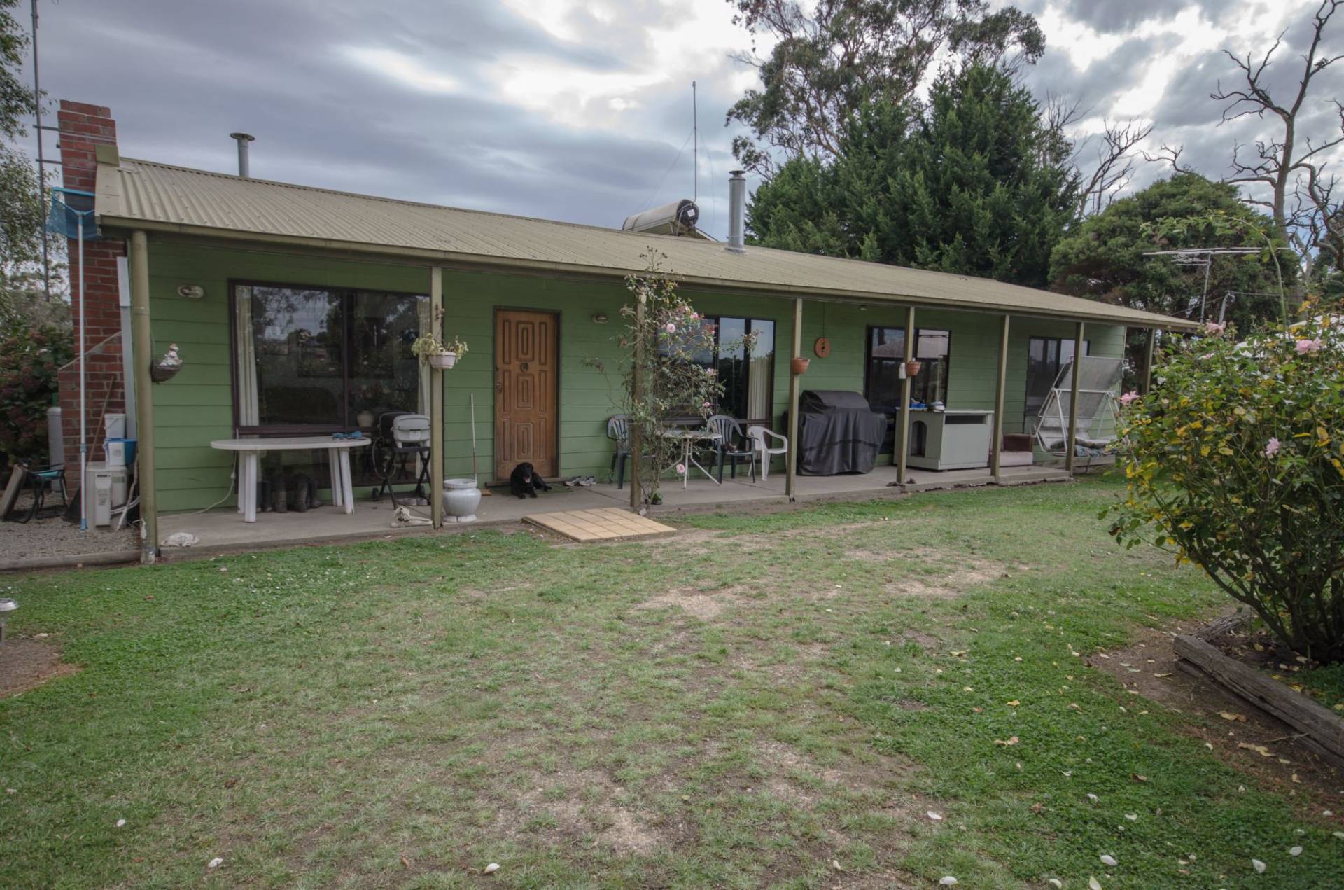 Comfortable 3 bedroom home, separate lounge room with wood heater, air conditioner and slate flooring. 3 generous sized bedrooms, single bathroom, modern kitchen with gas cooking and dishwasher, spacious meals area, large laundry with second shower. The land is a mix of mainly pasture with balance of established treed area's. Improvements include stockyards, loading race, gravel lane ways services access to multiple paddocks, dam water and small winter creek, the land is gently undulation and has sealed road frontage.