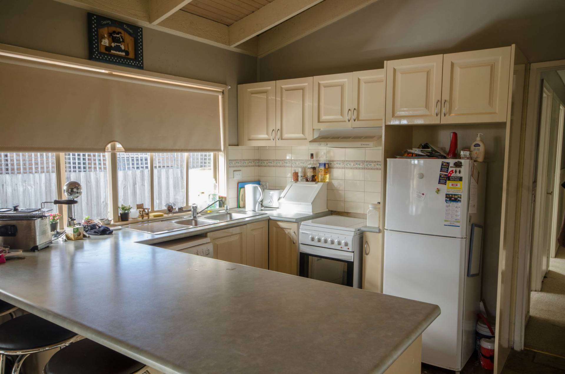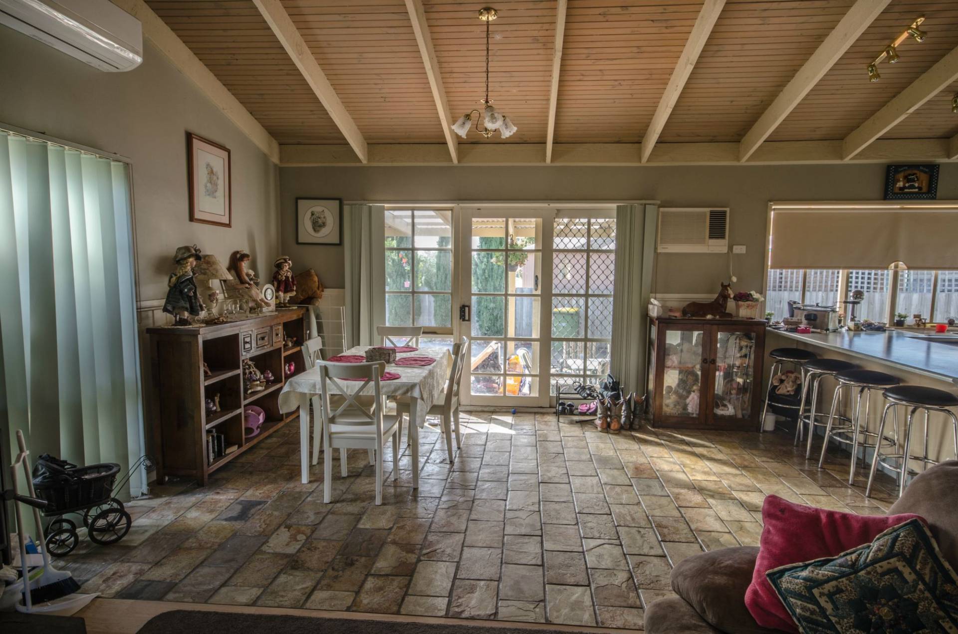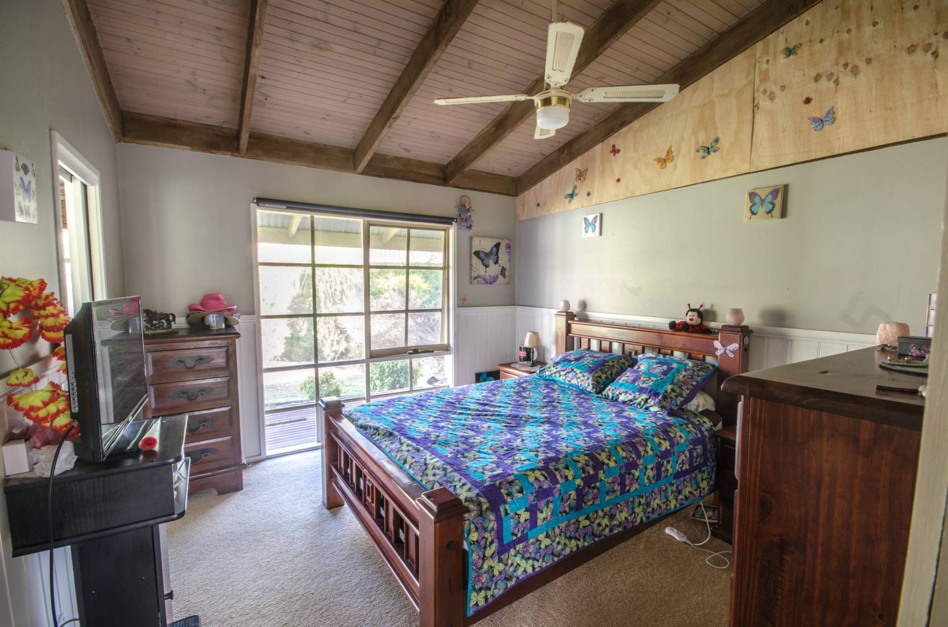 Open plan living, Daddo walls, wood heater and split system. Family room has slate flooring and raised ceilings. Beautiful kitchen with overhead cupboards and a two door pantry. Dishwasher has not long been replaced. Large bench space and electric stove. Master bedroom has WIR, Ensuite with bath. Second bathroom also has a bath, shower and vanity. Second & Third bedrooms both have wardrobes.