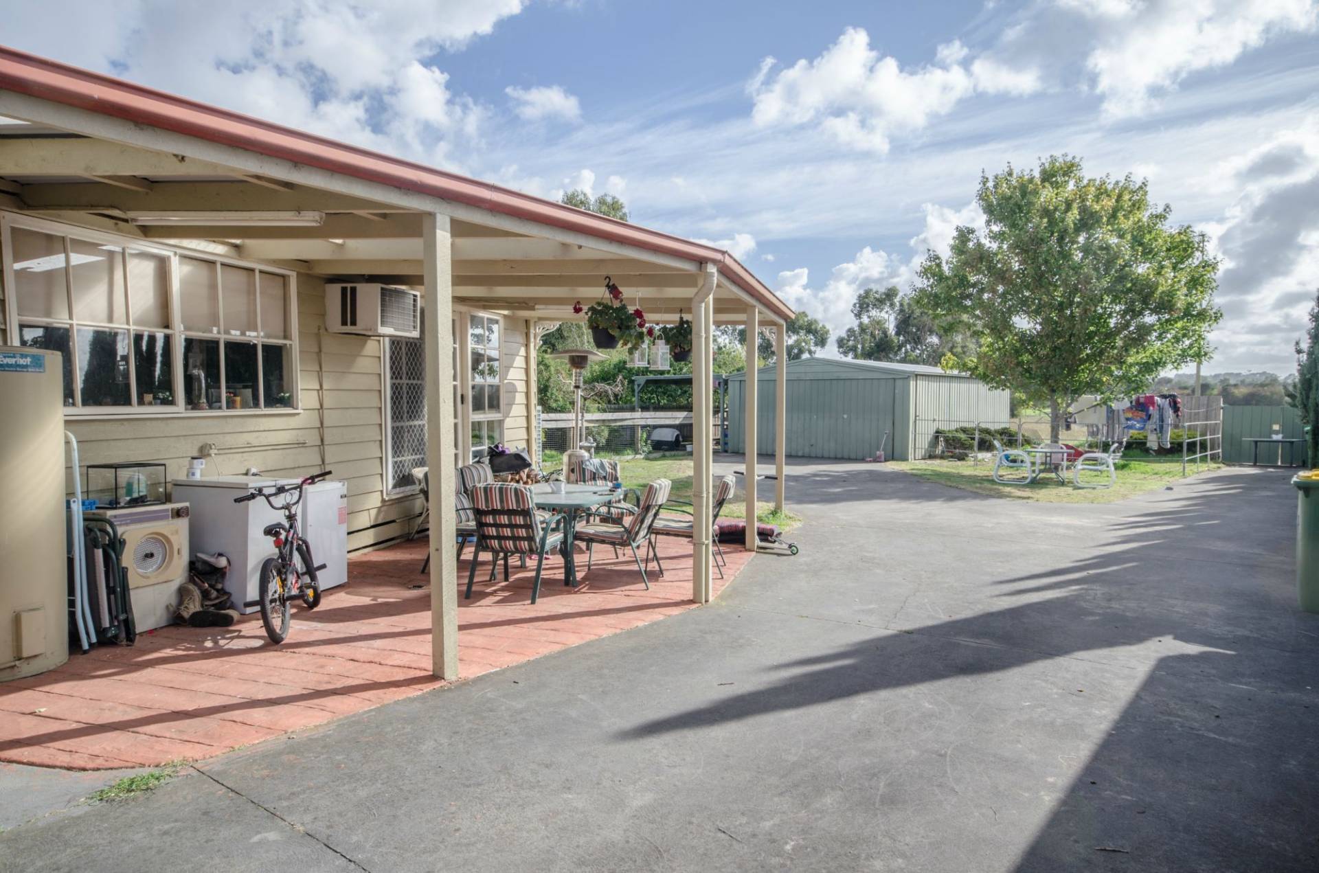 Long concrete driveway to powered Double Garage. Concrete dog run and Carport. Large side access, with Bull Nosed Front Veranda. Paved, under cover Pergola at back door.