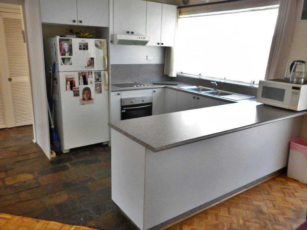 Located in quiet street only minutes walk to safe sandy swimming beach is this split-level home consisting of -