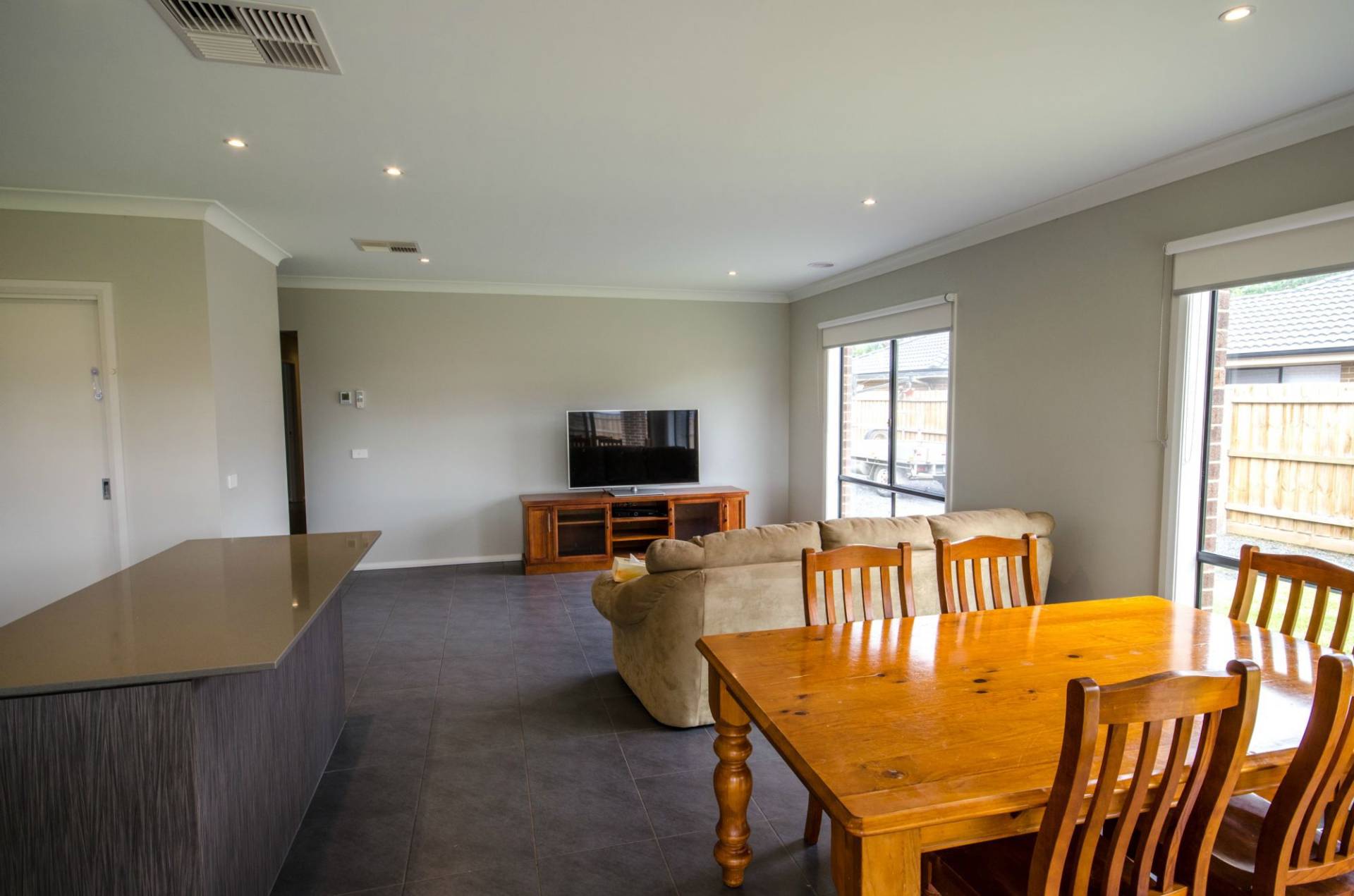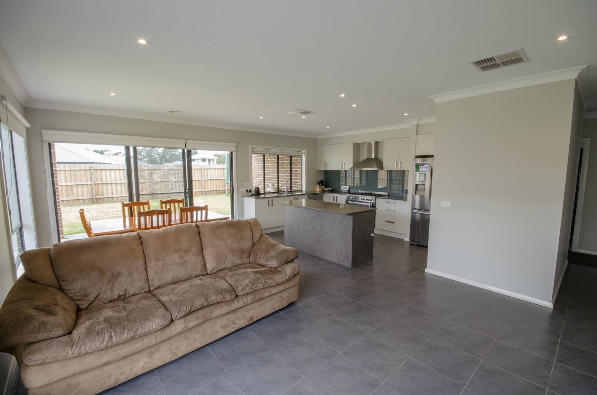 This 26sq URL brick veneer home, just over 1 year old. 4 bedrooms all with robes. Master has WIR, ensuite, double shower – his & hers, vanity and toilet. Theatre room/formal lounge. Ducted heating and evap cooler throughout. A kids retreat. Spacious kitchen, stainless steel gas cooker, island bench, dishwasher, double sink, overhead cupboards. 2nd bathroom has bath, vanity and shower. Double linen cupboard. Laundry also has a linen cupboard and bench. Family/dining room, sliding double doors out onto alfresco area. An internal door to double garage URL. Side gates to backyard, room for 2nd shed. Neat property. A must see.