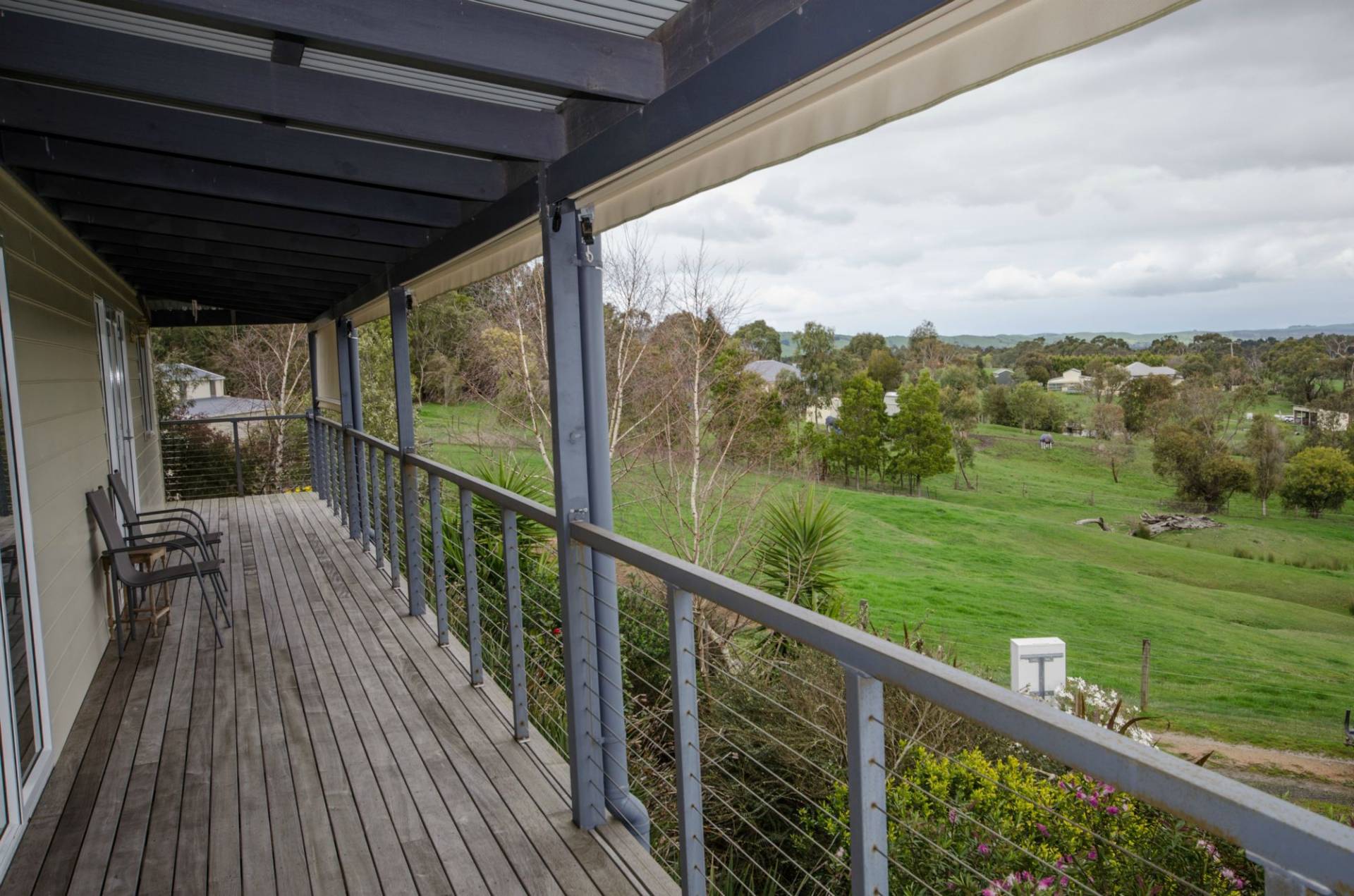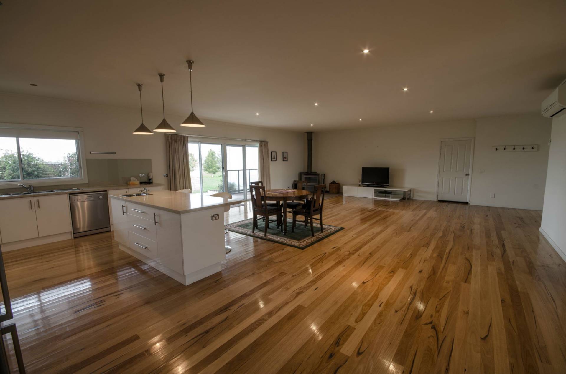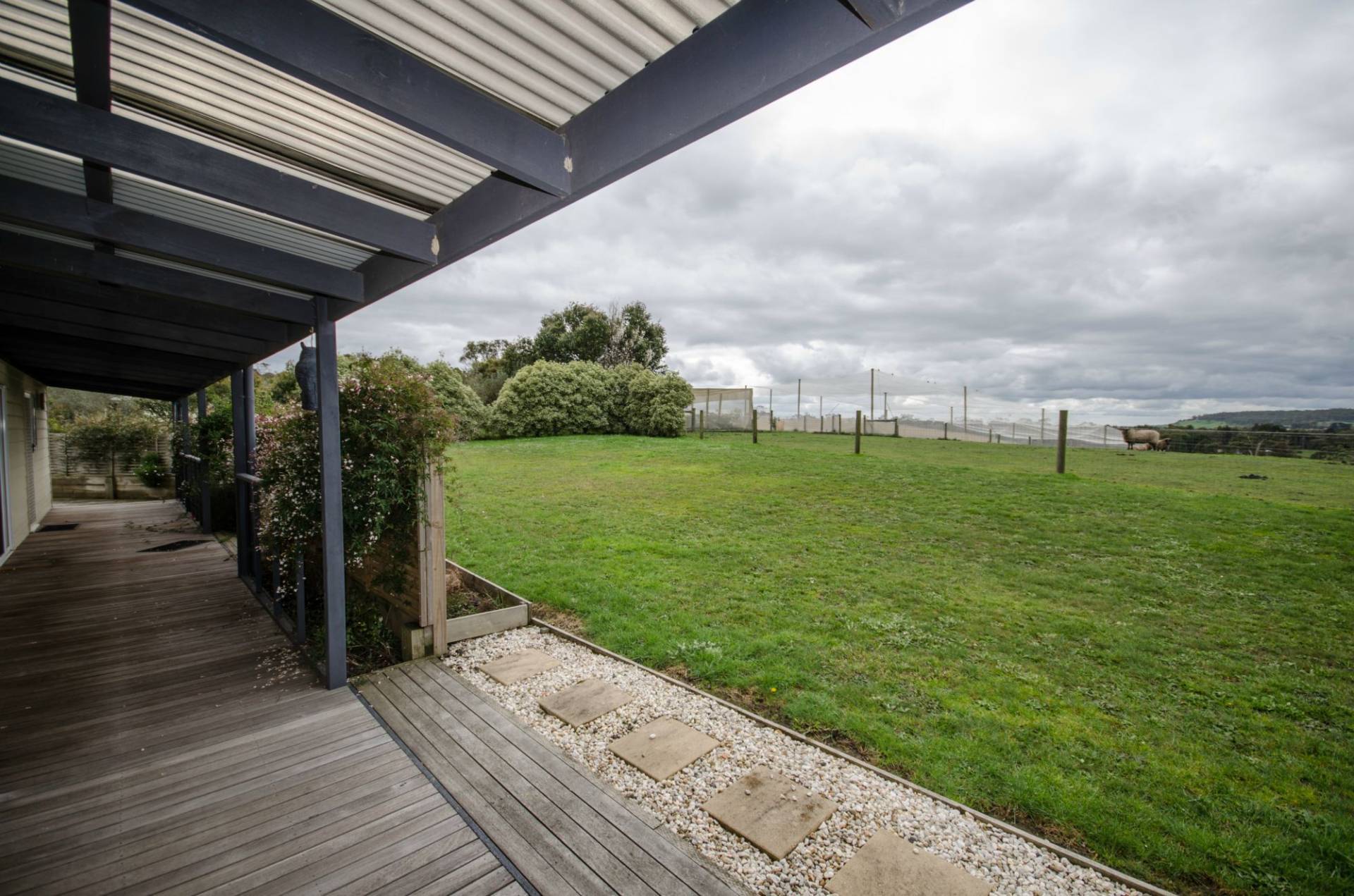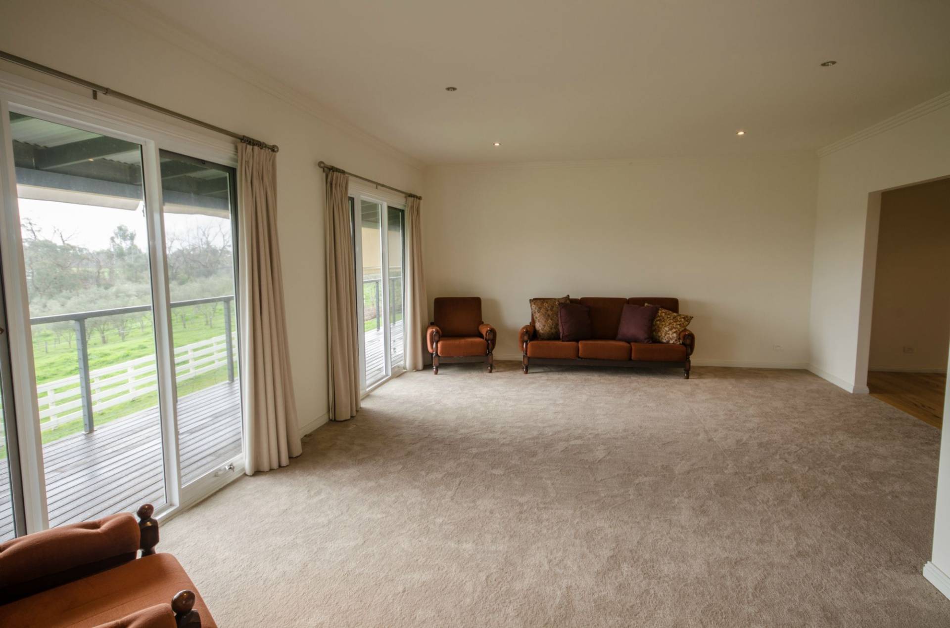 This elevated property has lots to offer. 38sq living, 3 Br plus study, 3 Large living areas, separate formal lounge, study could be used as a 4th Bedroom. A spacious rumpus room, good sized 2nd & 3rd bedrooms. Master bedroom has walk in robe, full ensuite, spa, toilet and double shower. Beautiful modern kitchen walk in pantry, large island bench including pot draws, double sink, Noble Stove, gas top and another extra sink. Massive family room split system, or alternatively wood heating. Home includes quality timber flooring and ducted vacuum system. Front & back verandah’s both have sun blinds. A big barn with concreted floor and power too. Double garage under roof line with internal door to house. Town water plus water tank. 2 fully fenced paddocks with electric fencing.