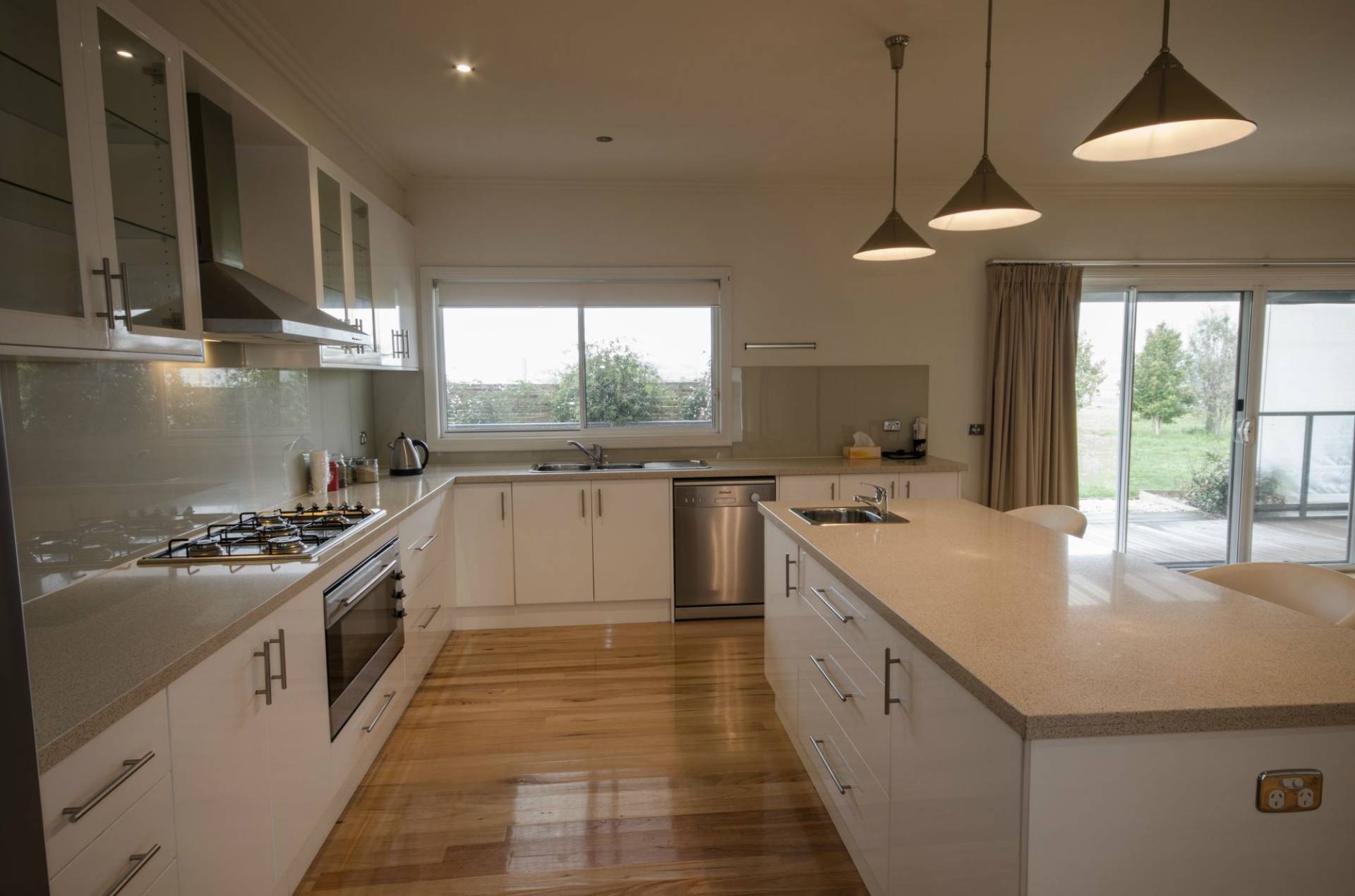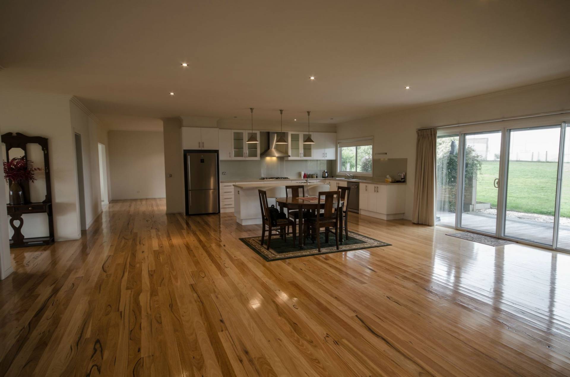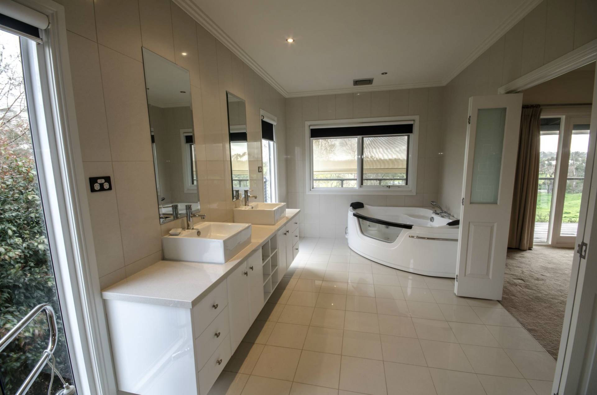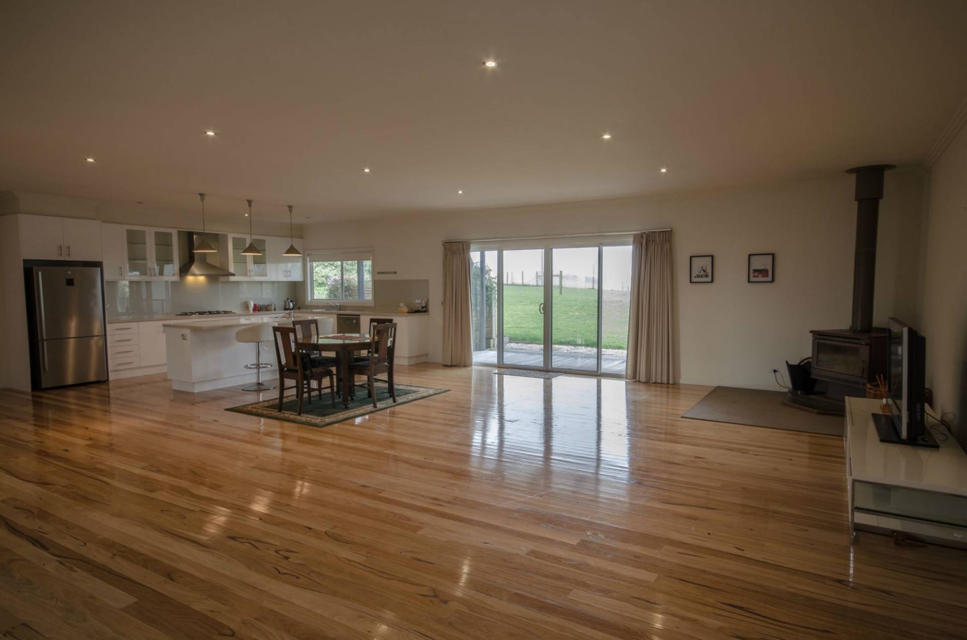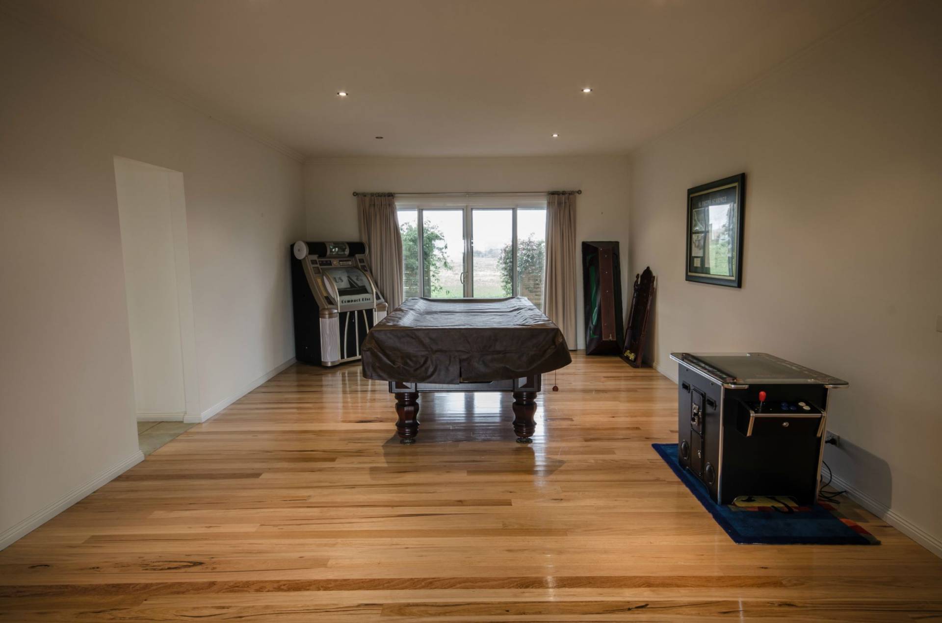 This elevated property has lots to offer. 38sq living, 3 Br plus study, 3 Large living areas, separate formal lounge, study could be used as a 4th Bedroom. A spacious rumpus room, good sized 2nd & 3rd bedrooms. Master bedroom has walk in robe, full ensuite, spa, toilet and double shower. Beautiful modern kitchen walk in pantry, large island bench including pot draws, double sink, Noble Stove, gas top and another extra sink. Massive family room split system, or alternatively wood heating. Home includes quality timber flooring and ducted vacuum system. Front & back verandah’s both have sun blinds. A big barn with concreted floor and power too. Double garage under roof line with internal door to house. Town water plus water tank. 2 fully fenced paddocks with electric fencing.