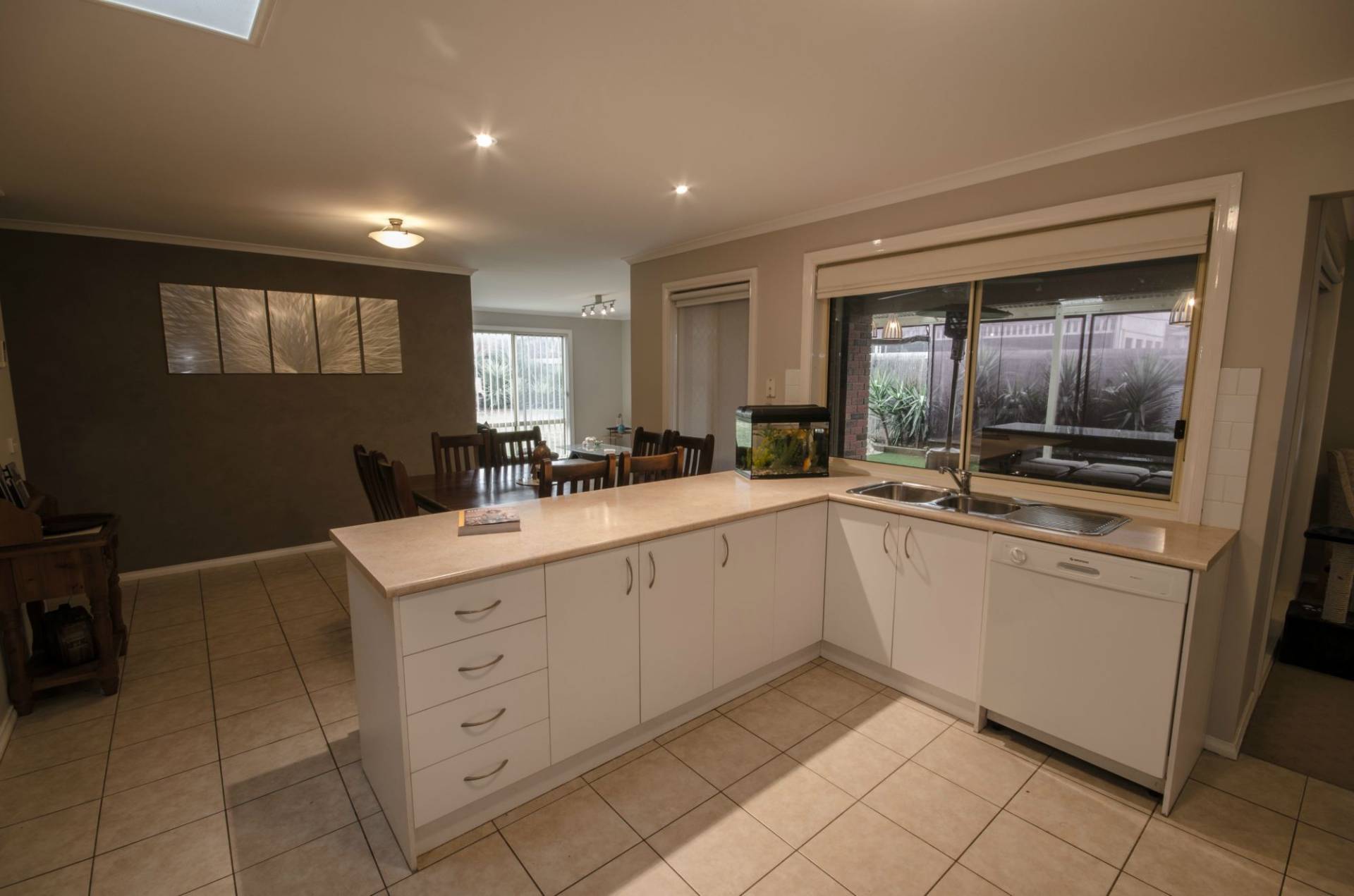 A spacious and modern kitchen with pantry, dishwasher, electric oven, overhead cupboards and a large extended bench. 2nd & 3rd bedroom with built in robes. 2nd bathroom includes, shower, vanity and a bath. Split system for heating & cooling. 10 solar panels installed on the roof and 32 cents going back to the grid. Alfresco area in the rear and huge undercover pergola, including drop down plastic blinds for wind protection for the Spa, which has a new heater and sensor pad. Security system fitted, garden shed on approx. 757m2 block.