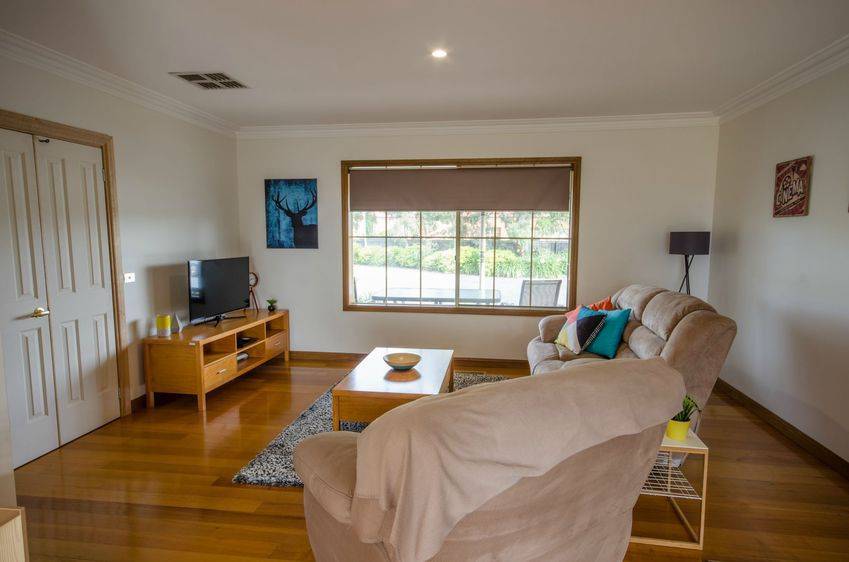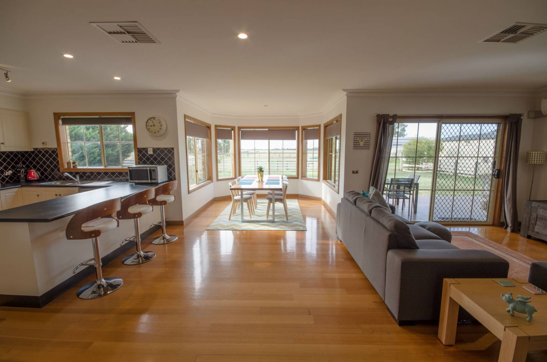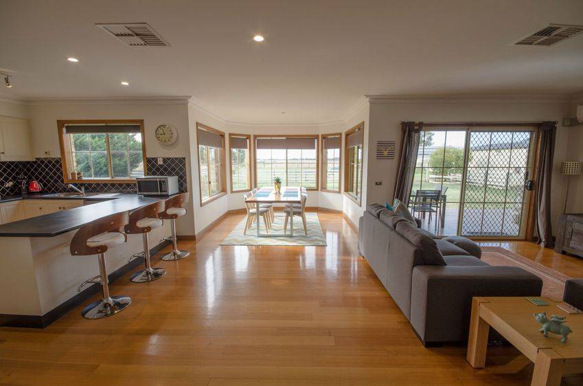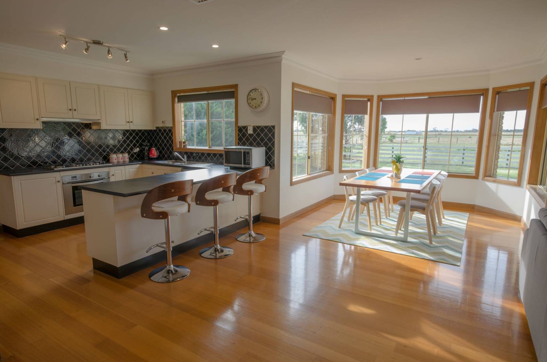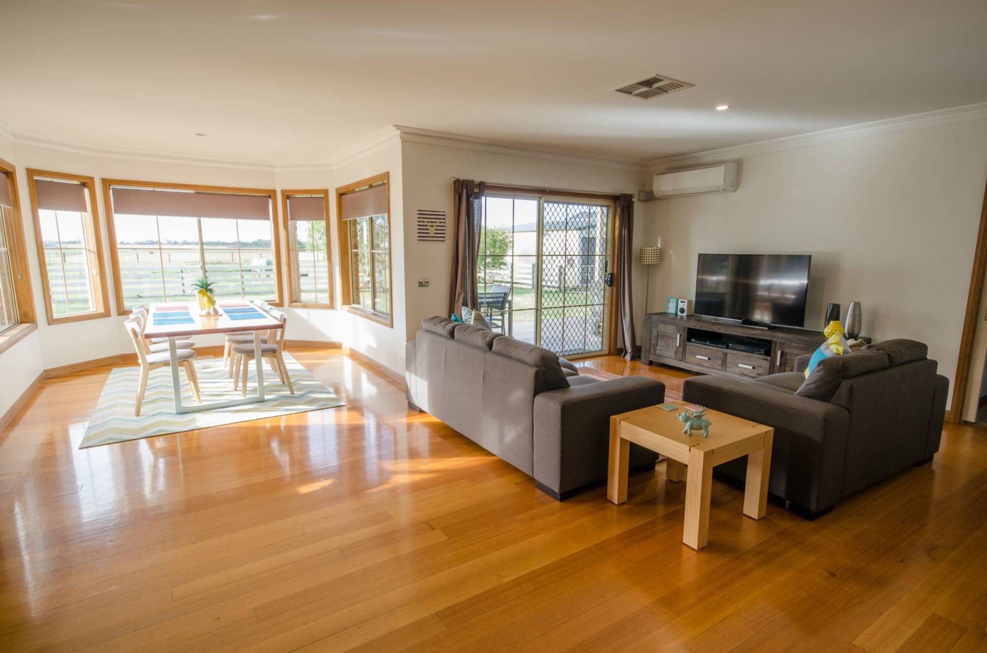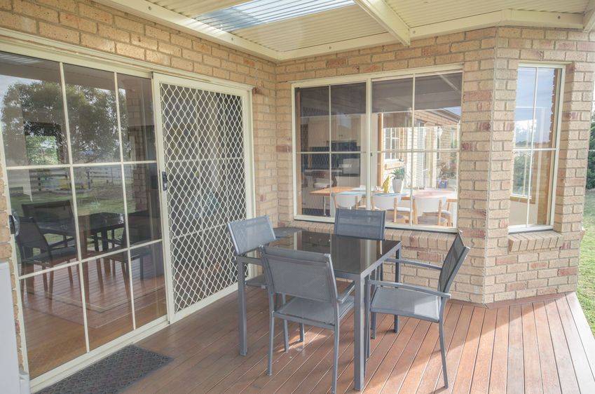 The dining area has bay window capturing oodles of natural light and is conveniently located with close proximity to the kitchen and family room. Double doors lead to an outdoor undercover decked area with easy access to the rear yard and paddock.