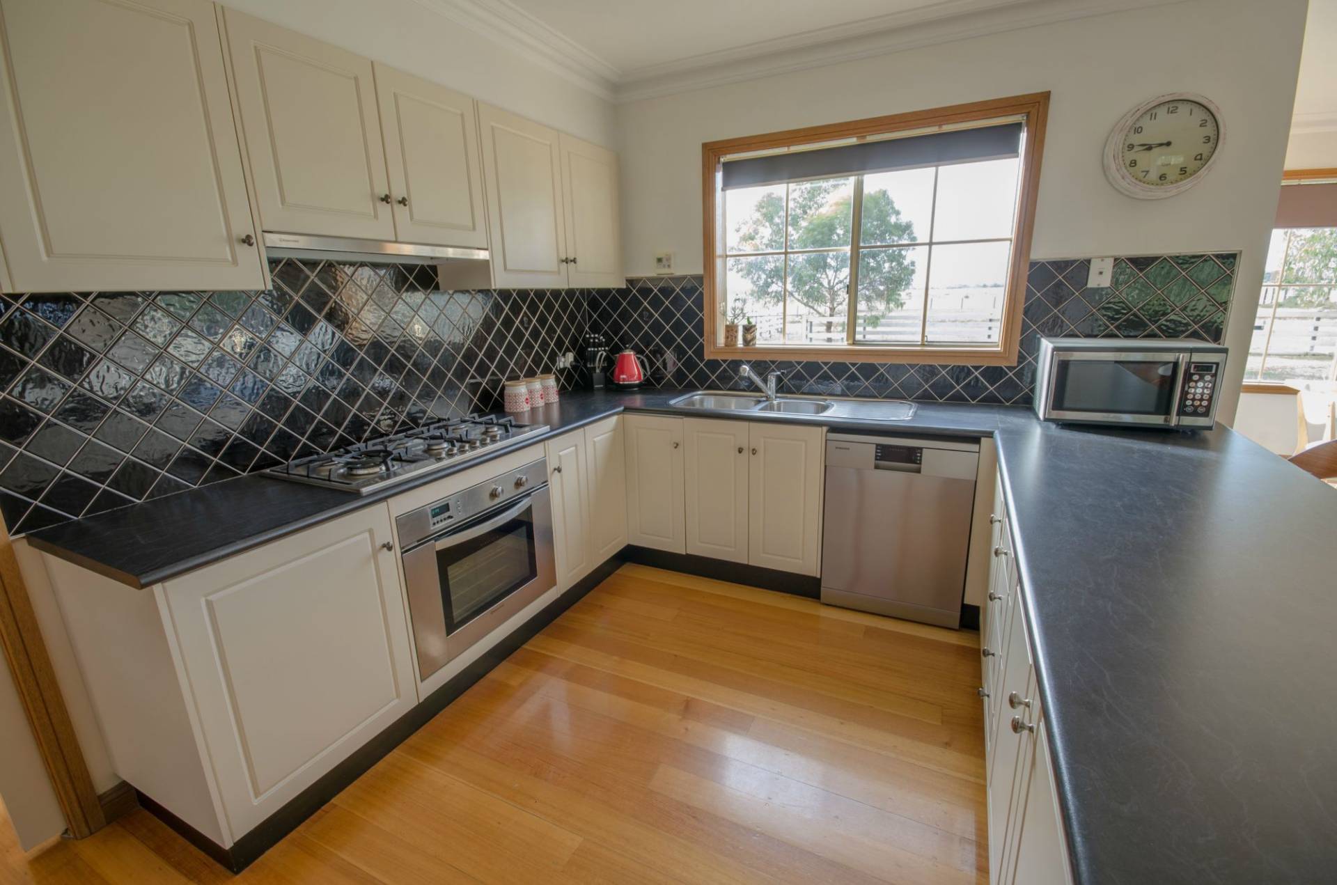 The spacious kitchen with rural outlook includes s/s appliances, including d/w, 900mm electric pyrolytic oven and 6 burner gas cooktop. Plenty of counter space and a double door walk-in pantry make it an ideal entertainer’s kitchen.