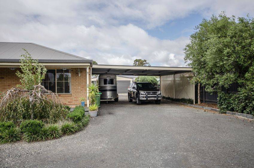 The front of the property has a covered verandah with a 4 car carport URL, large enough to store a horse float or caravan. In addition, there is a 4 car secure garage with the capacity for 3-phase power. The garage is concreted and provides ample storage and space for a workshop. The circular driveway provides ample car/large vehicle parking and would be ideal for a tradesmen or truck driver.