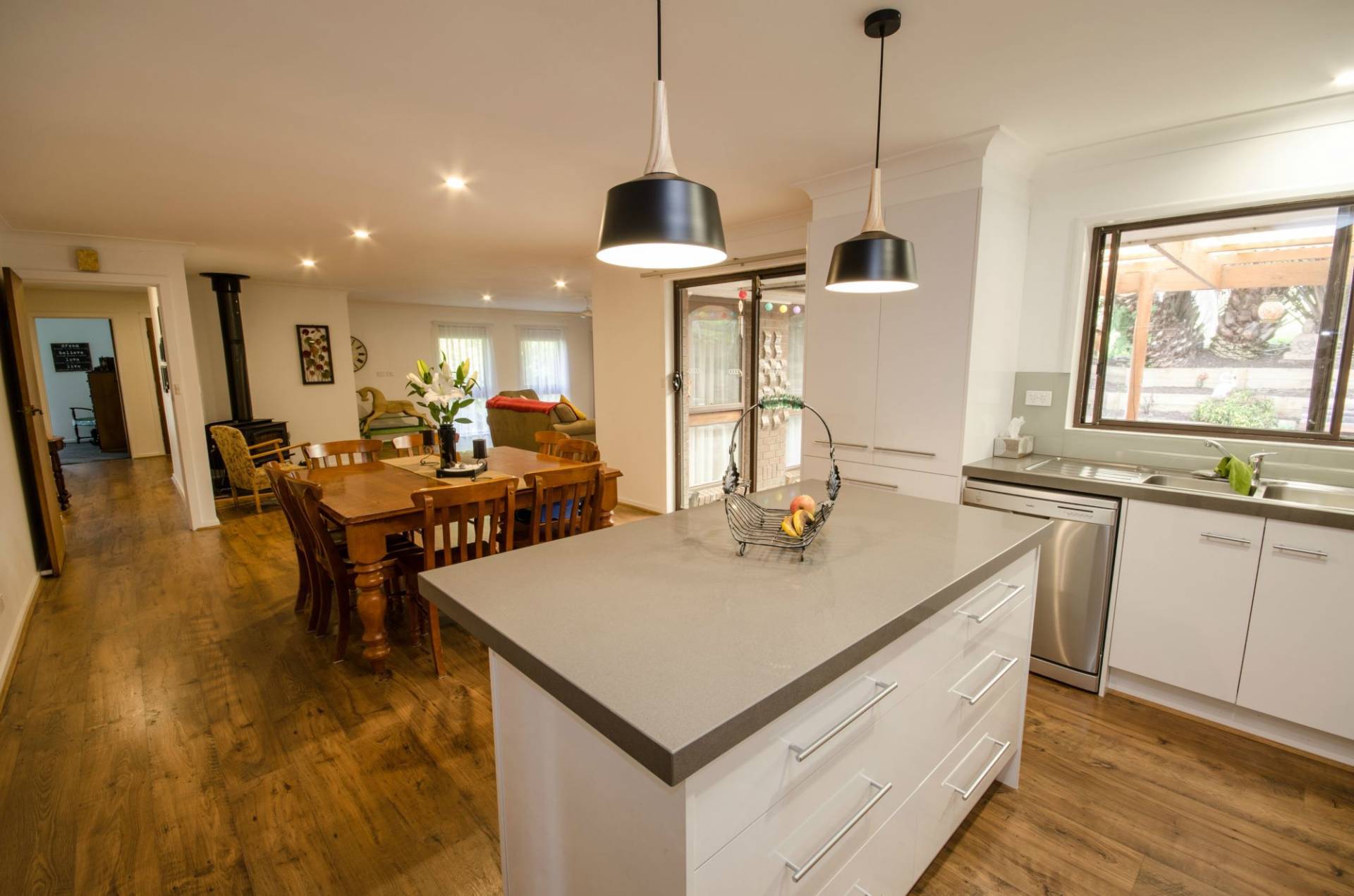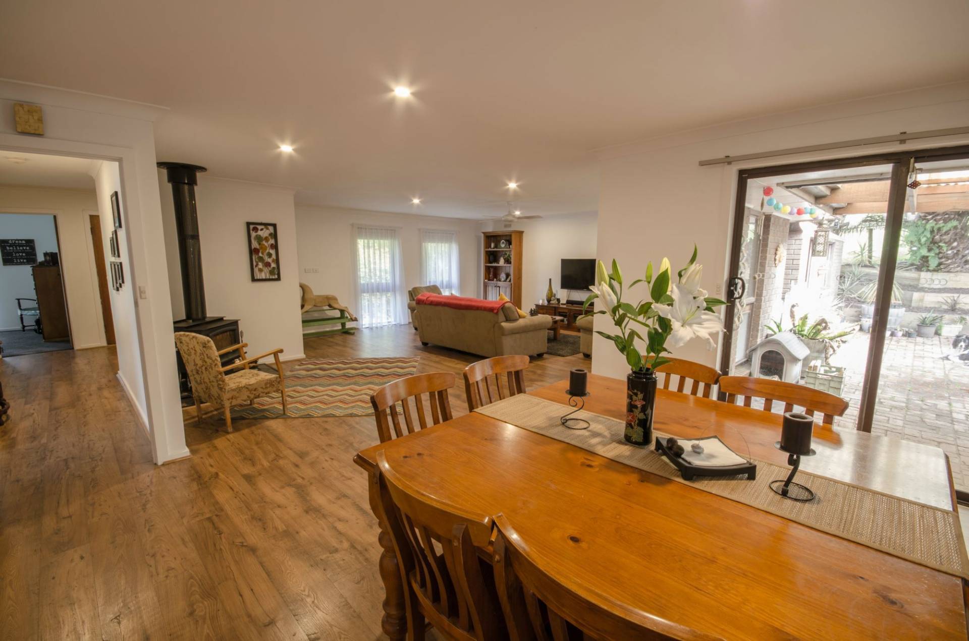 Home has been painted throughout, new quality carpets and timber look vinyl slat flooring. Open plan living and cosy wood heater in lounge. New down lights & curtains. New modern kitchen, granite bench tops, glass splash back, pot draws, dishwasher, glass cooktop & electric oven. Master has walk in robes, ceiling fan and new ensuite. Second bathroom has also been renovated. Spacious laundry with granite bench top and lots of cupboards.