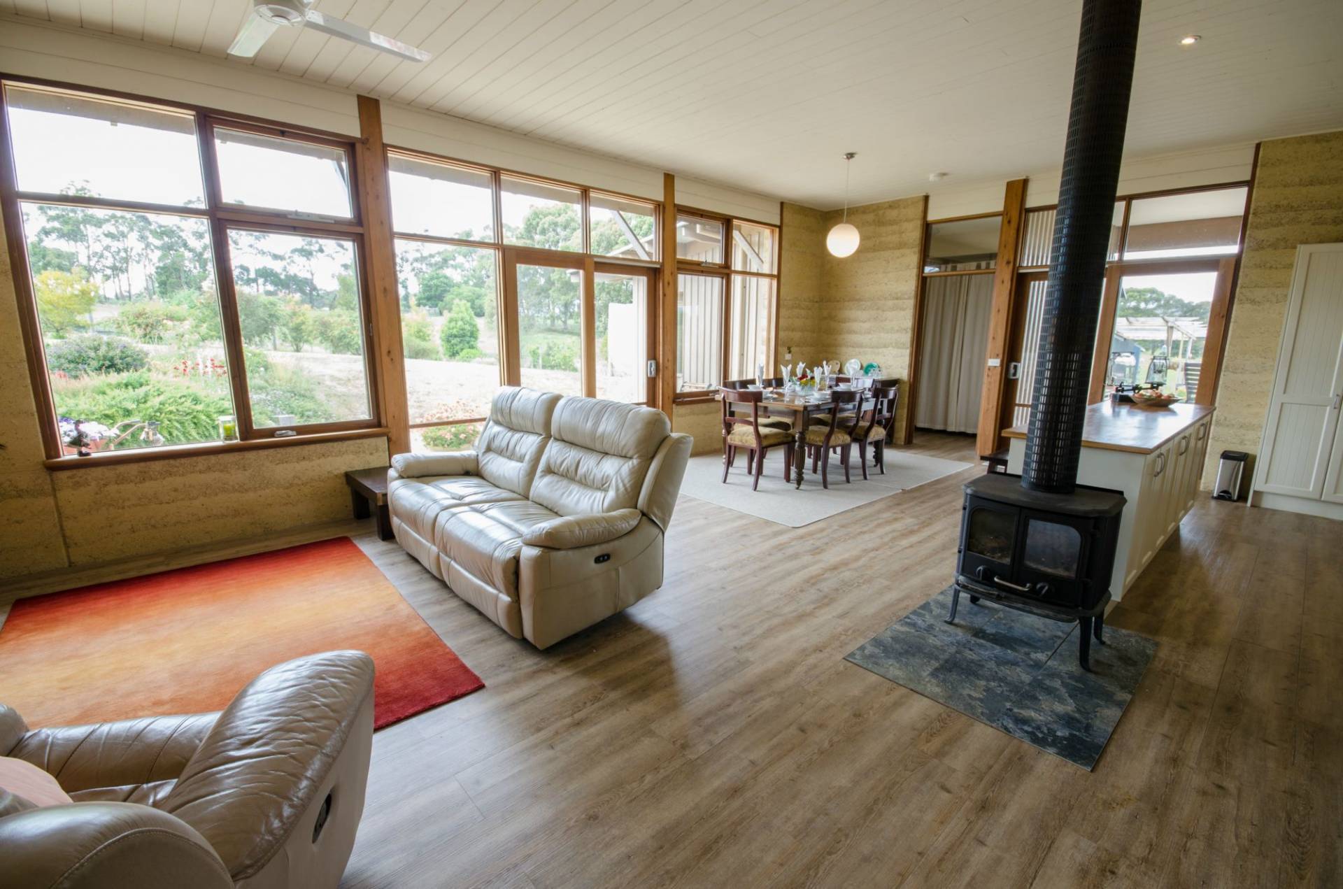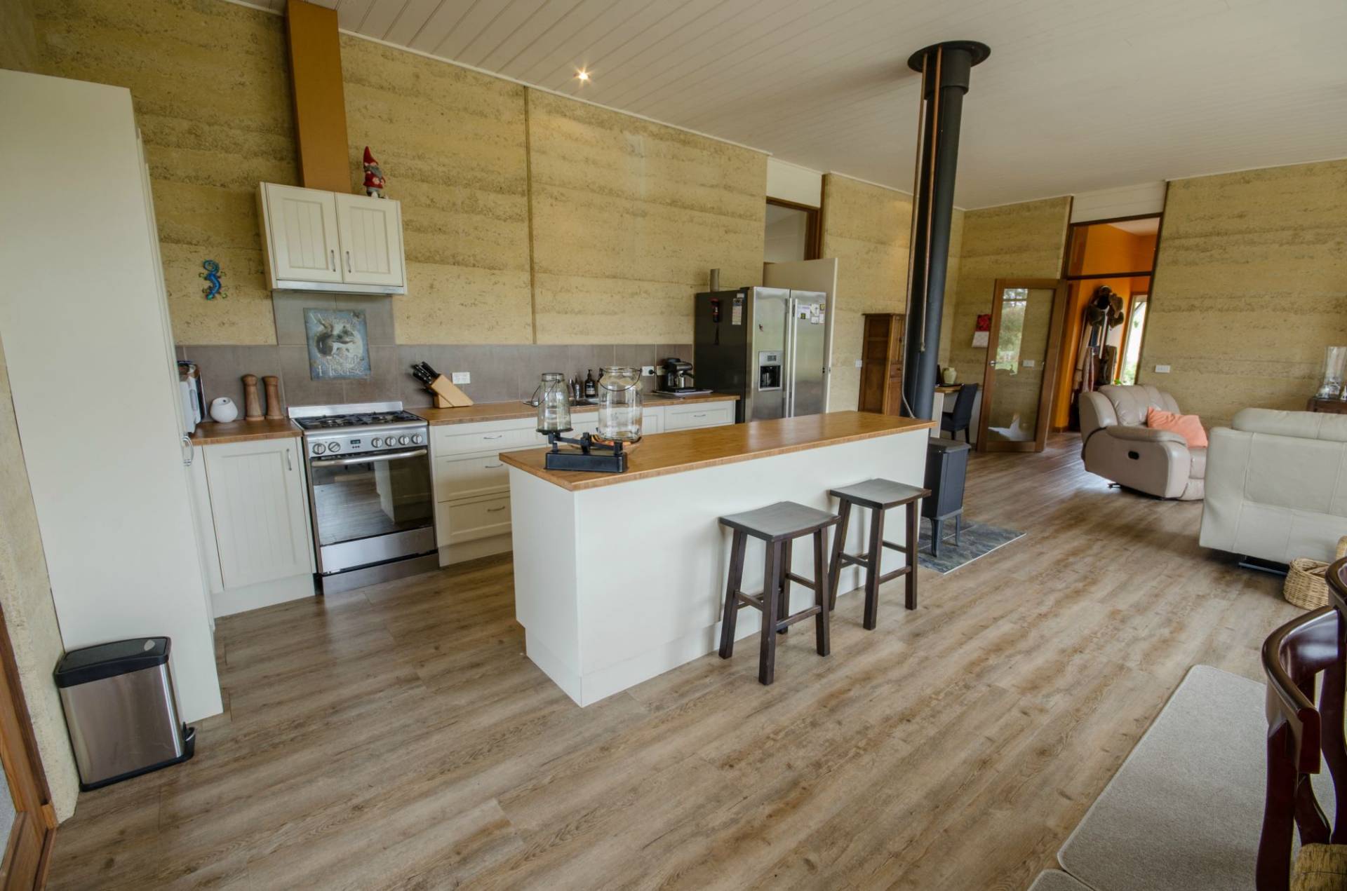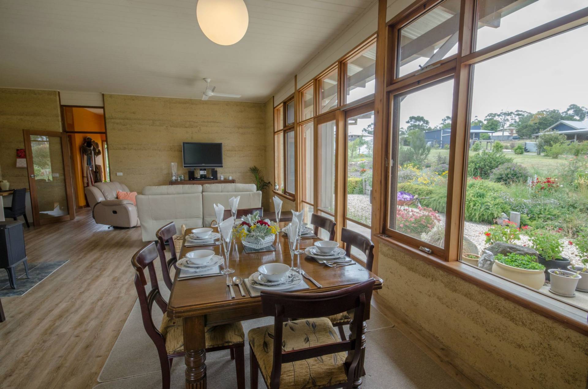 Welcome to Eco Lodge, designed and built by an award winning architect, where you have energy saving ideas plus million dollar views. You will be warm in winter and cool in summer with this clever north facing design featuring rammed earth walls and an abundance of glass.