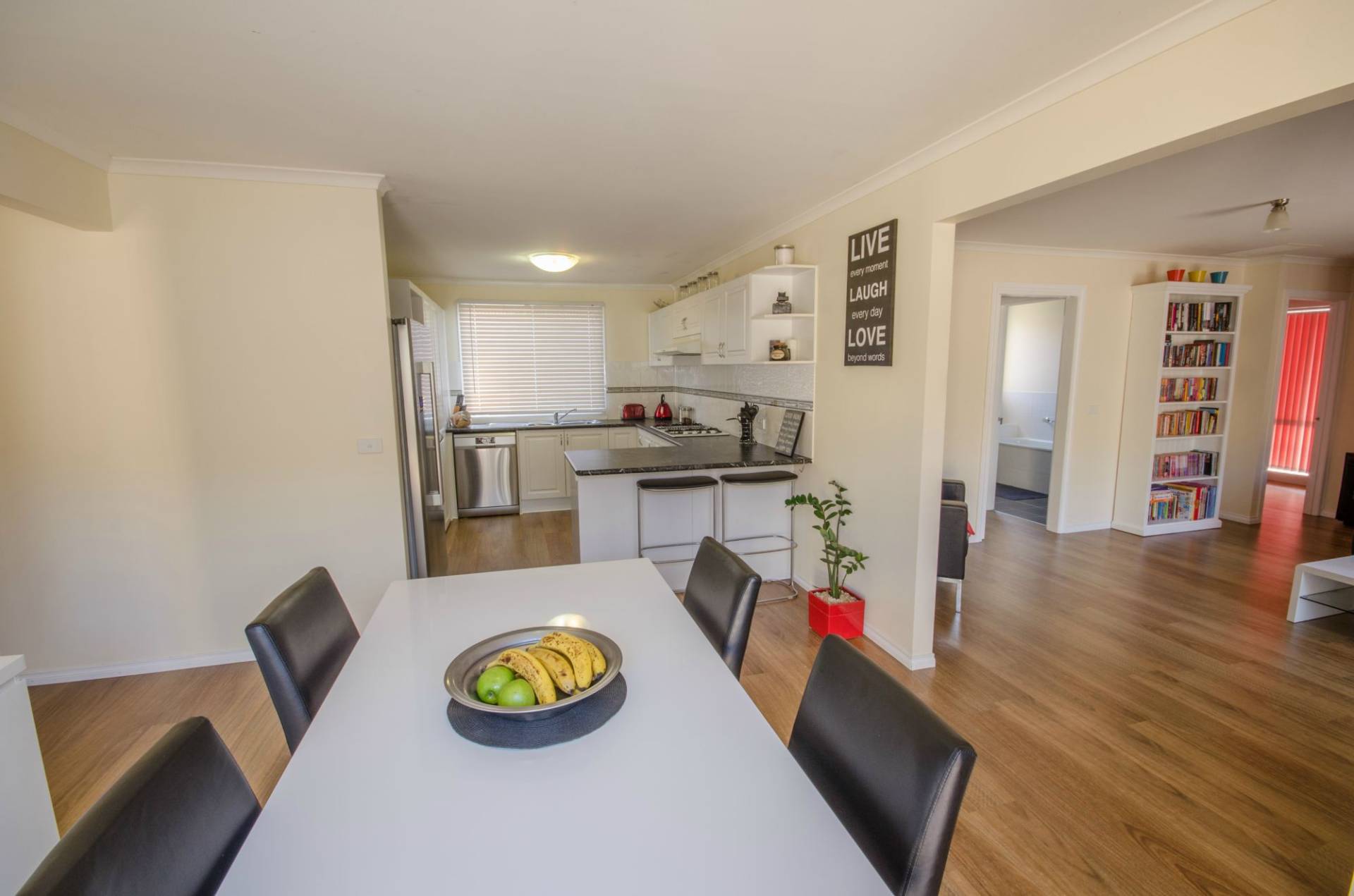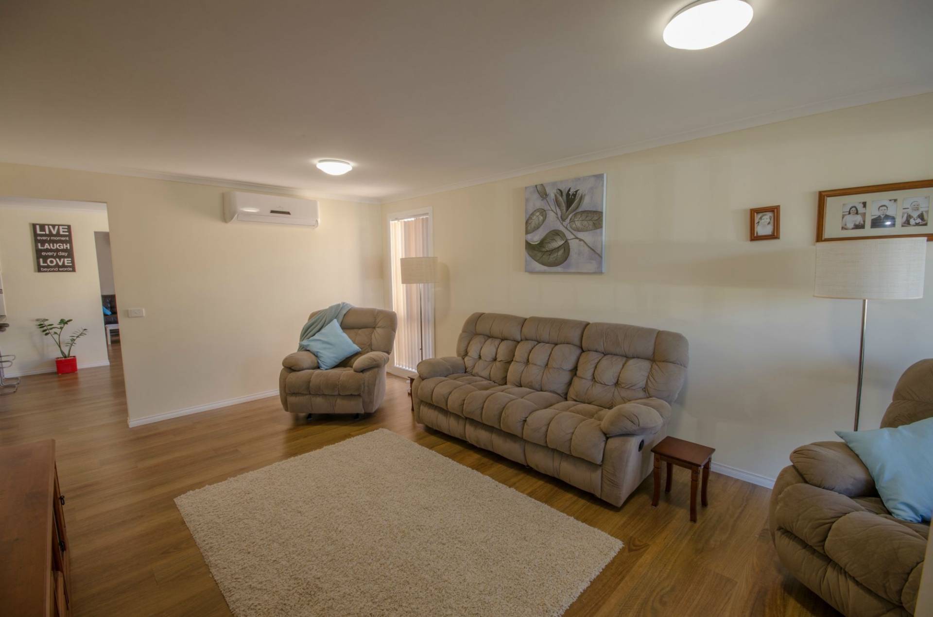 This very neat property on just under 600m2 block. 4 bedrooms master bedroom has a bay window, ensuite and walk in robe. 2nd & 3rd bedrooms have built in robes. Separate lounge, all new floating floorboards throughout, home has been repainted. Ducted gas heating and split system in each of the two living areas. An attractive country style kitchen, new dishwasher, wall oven and range hood. Two door pantry, gas cook top and plenty of bench space. Rumpus room sliding door to large paved BBQ area. 18 Solar panels 4.5kw plus solar back up hot water, neat established gardens and tool shed. 2 car garage URL, roller door access to back yard. The property is fully fenced and is located in a quiet court.