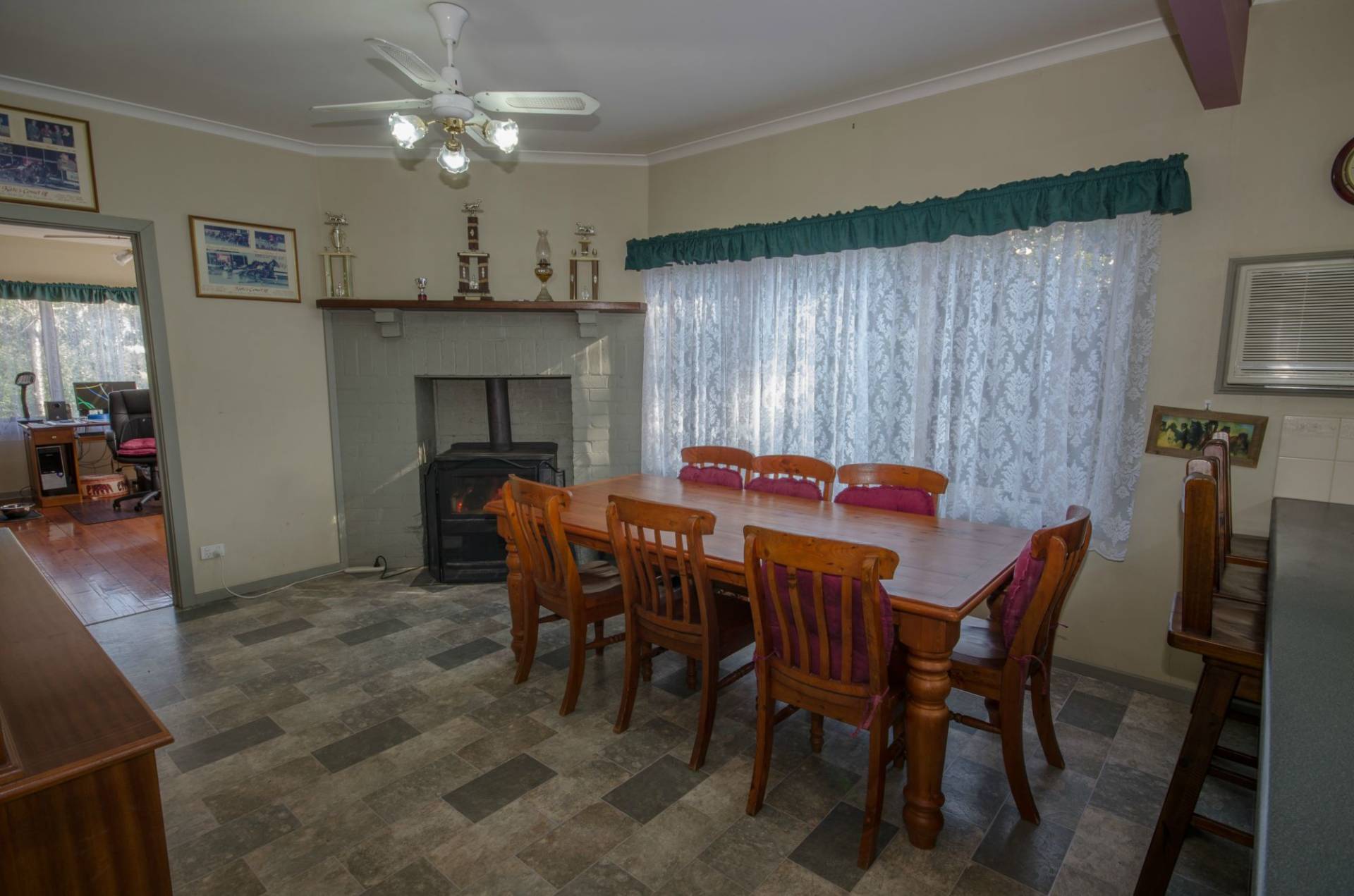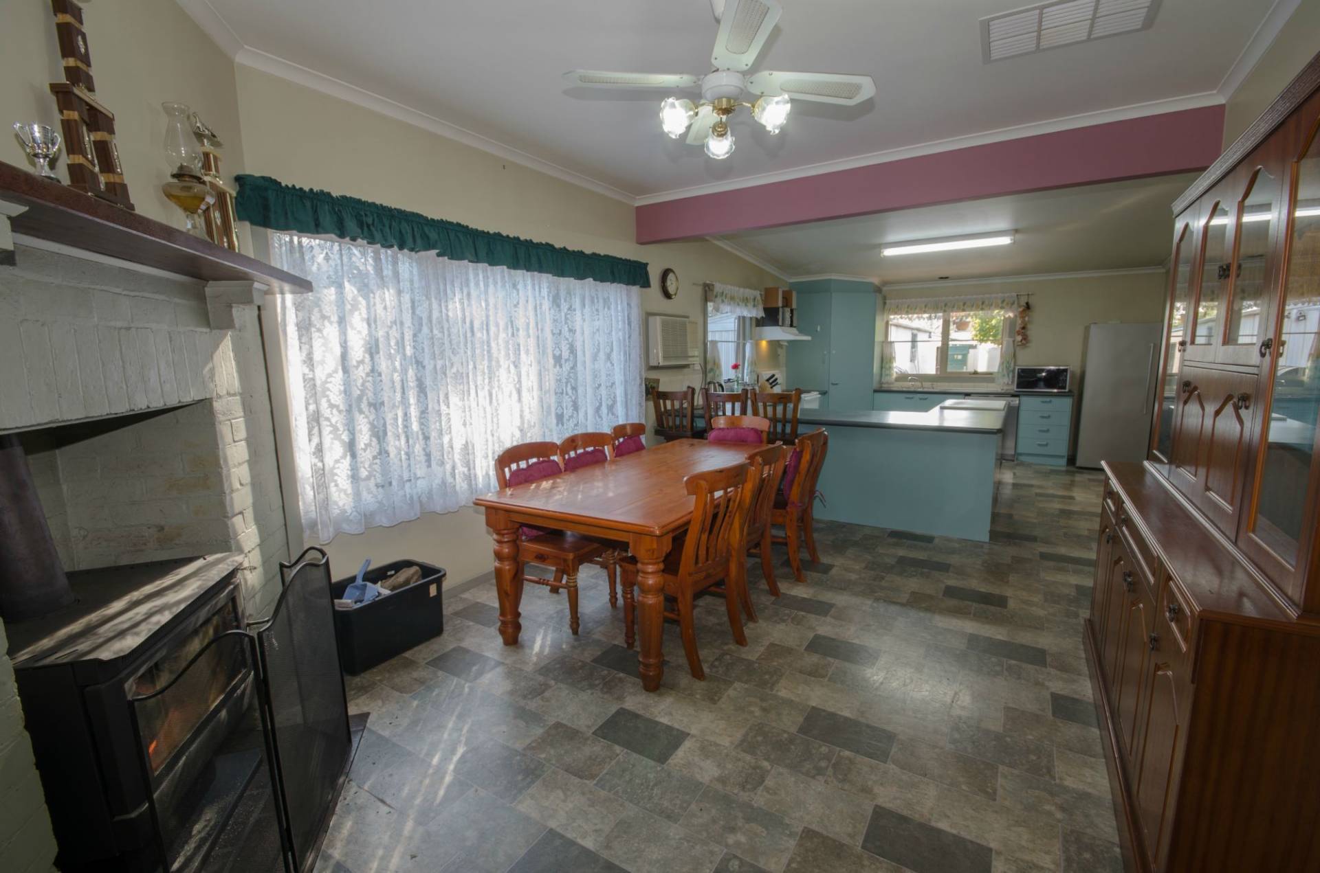 This property is situated on approx. 1472m2 double block, close to shops in a quiet street. 3 living areas, 4 bedroom cedar Home. Separate lounge, new evaporated cooling, family room, also has a new wood heater in a featured fire place, natural gas heating. Spacious kitchen, dishwasher, electric stove, huge bench space and corner pantry. Ceiling fan in Family Room. New hot water Service, all good sized bedrooms. Timber Flooring, Large Rumpus Room, Under cover outdoor pergola area and coloured concrete. 3 car carport, caravan park, wood shed, storage shed, double garage, 20 solar panels 4.9KW, 57,000 litre water tank and back up town water. New lead lights inside & out. Dual driveways plus rear access and neat established gardens.