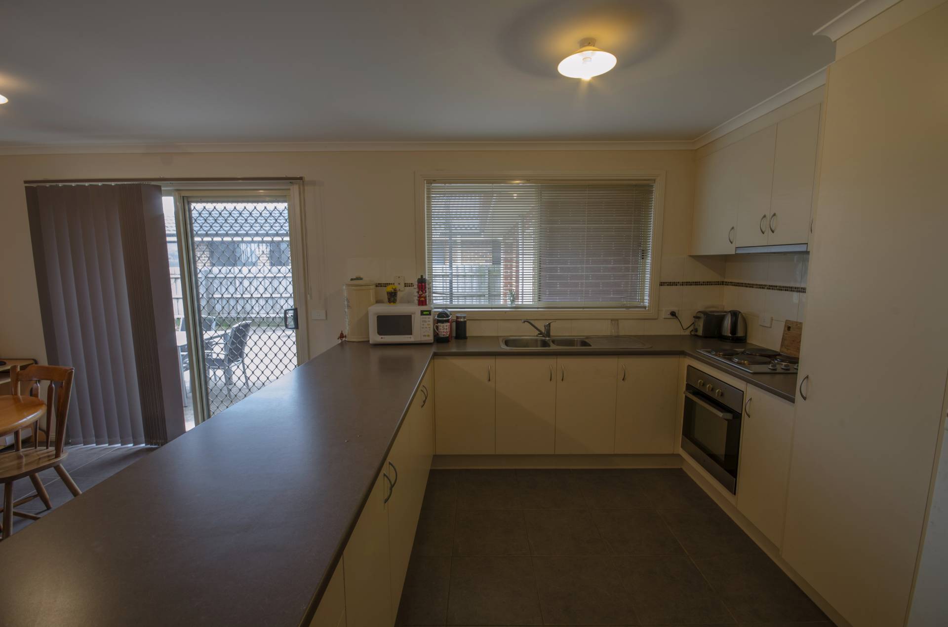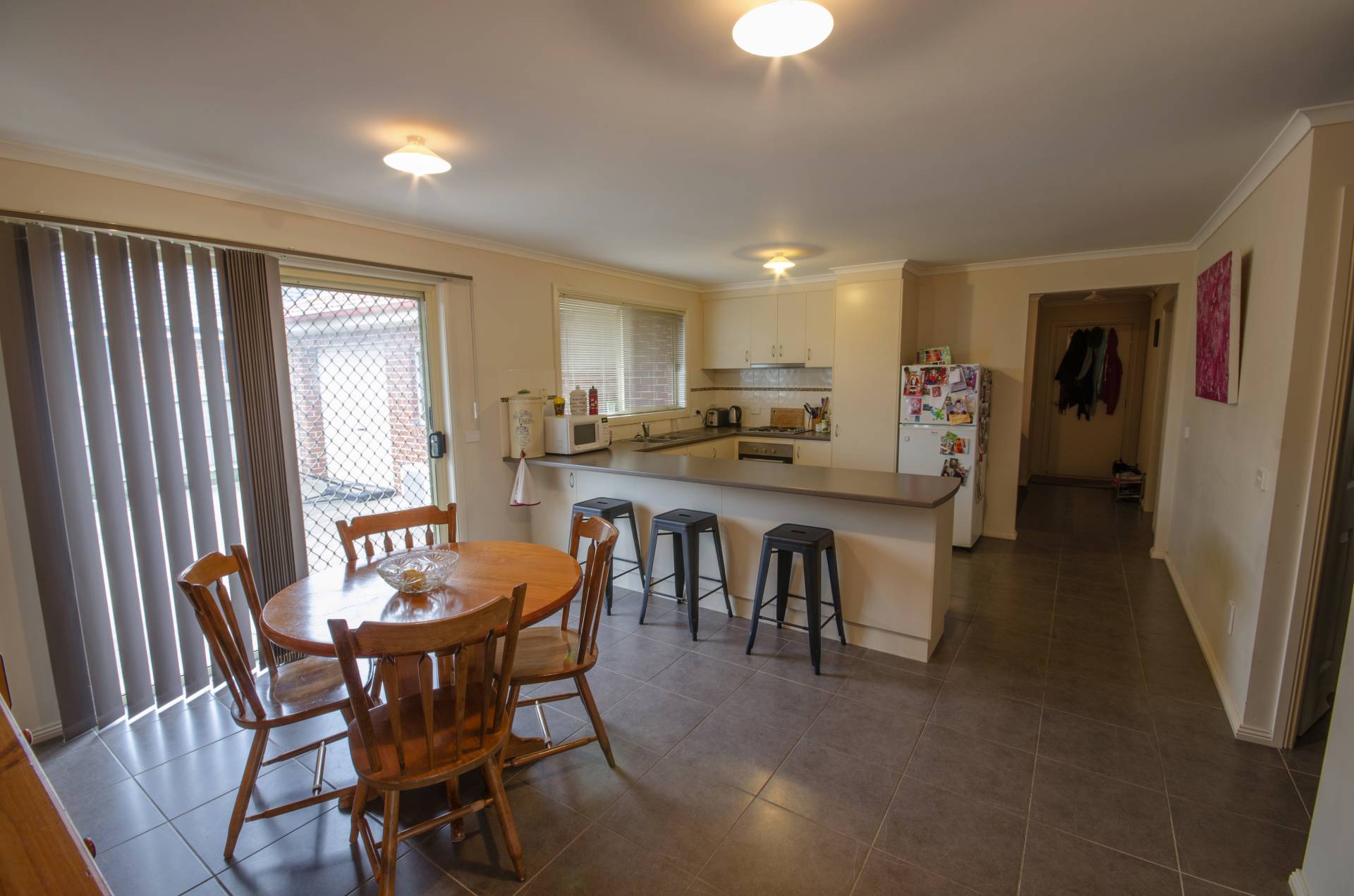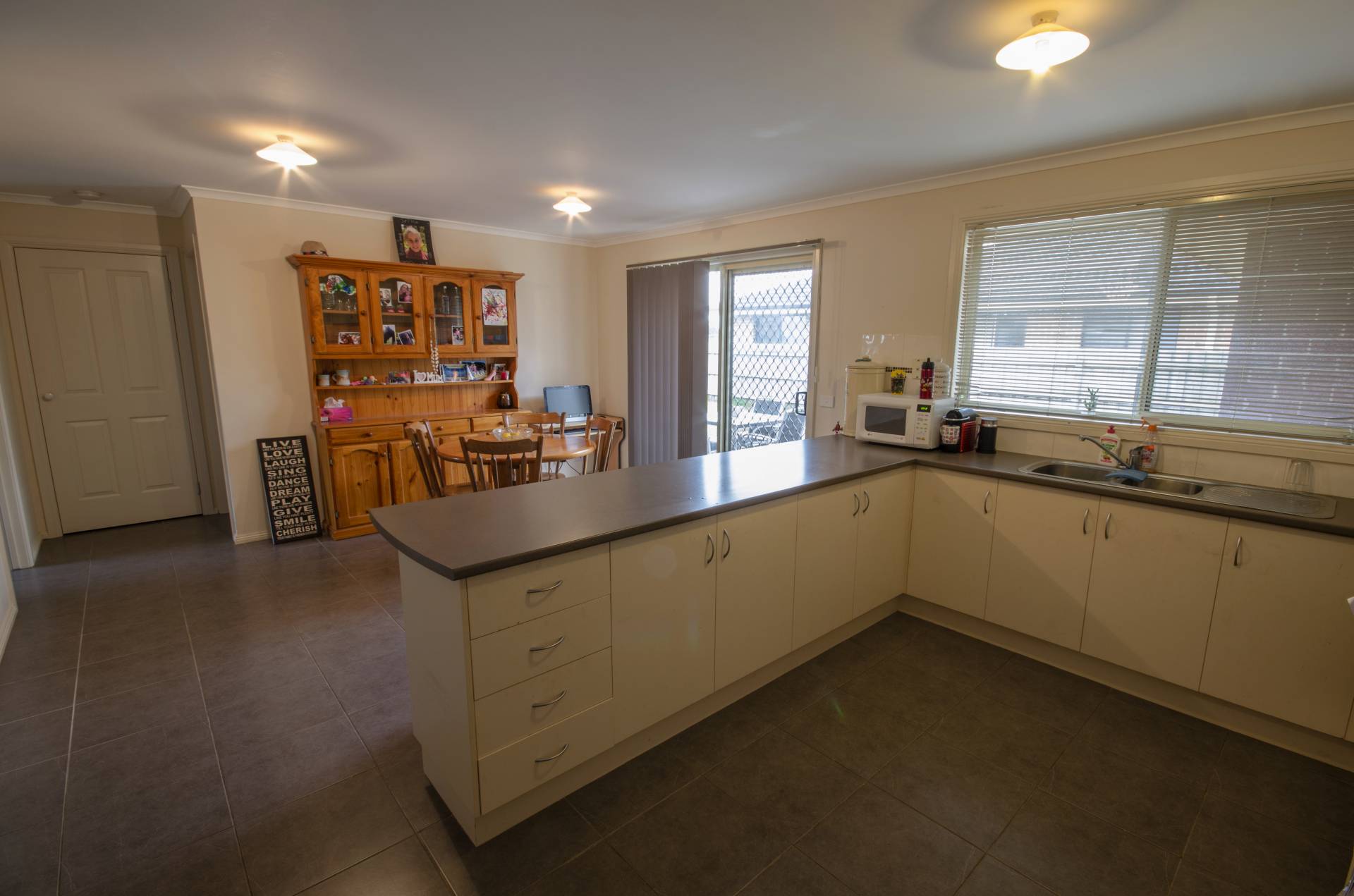 This very neat 3 bedroom, 2 bathroom home with double garage URL on a 514m2 block, spacious kitchen and family room. Electric hotplates, oven, large bench space, overhead cupboards and pantry. Ducted vacuum system. Master has walk in robe and ensuite, 2nd & 3rd bedrooms with built in robes. Large concrete area outside family room.