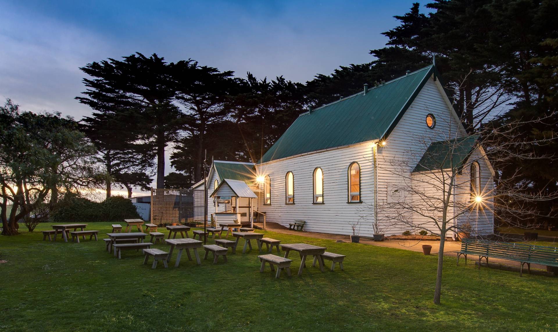 Two gateways and twin bitumen driveways provide separate access to the two buildings under the canopy of spreading cypress trees. The roomy 4 bedroomed home retains many original features, including 15 foot pressed tin ceilings, sweeping hallway and hardwood door and window frames. The old church seats close to 100, has a modern toilet block and entrance hall and a permit for use as a restaurant.
