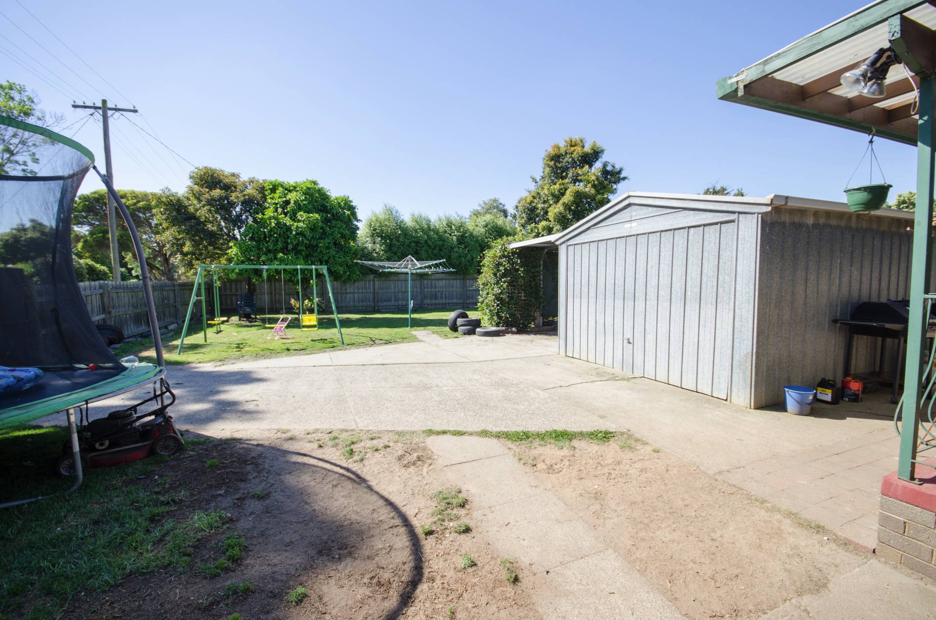3 bedroom brick veneer home close to shops and school. Corner block on approx. 790m2 side access, double gates to back yard. Separate lounge sliding glass doors.