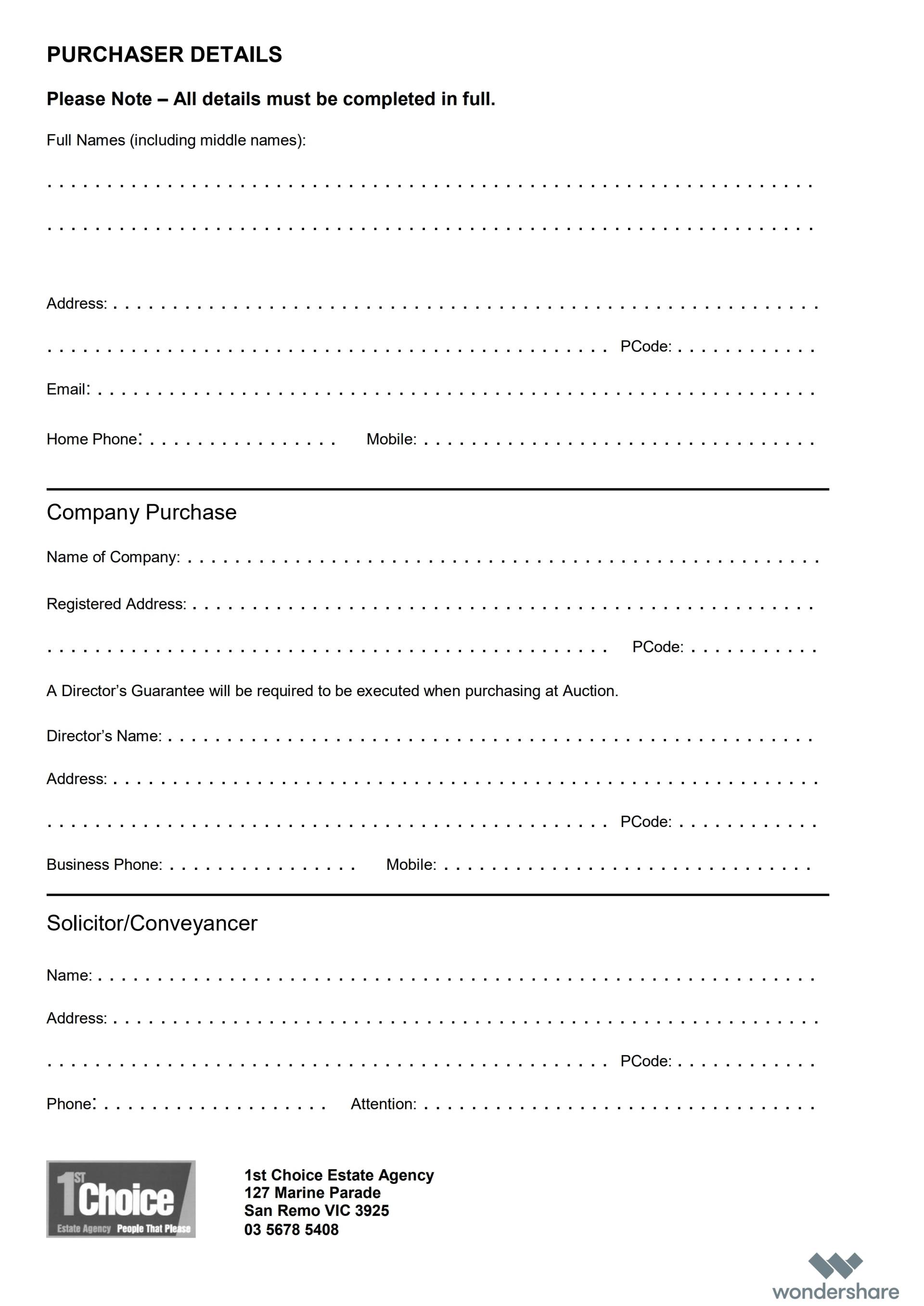 1. You are required to complete a Buyer Information Sheet prior to purchase - see proforma in property details.