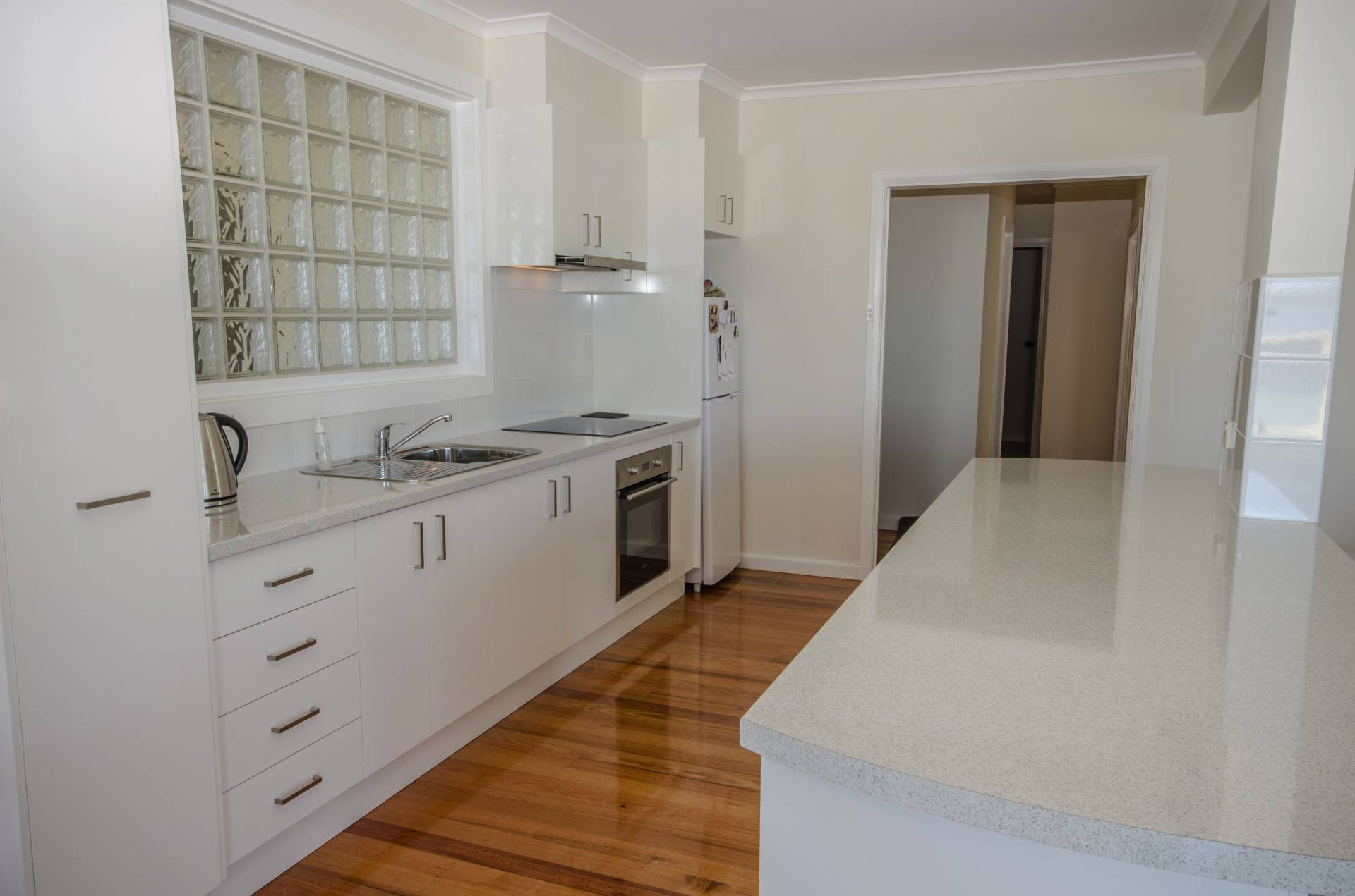 The home features include a new modern kitchen with appliances, a spacious kitchen meals area.  Three bedrooms, 2 living rooms, walk in robe and a study. The two fully renovated bathrooms have new floor to ceiling wall tiles, vanities, showers and toilet suites.  Polished hardwood floors are a feature in the kitchen / meals area and living room and the home has been freshly painted throughout.  New split system plus a wood fire for those cozy winter nights.  Under roof line spacious single garage with electric roller door and indoor excess.