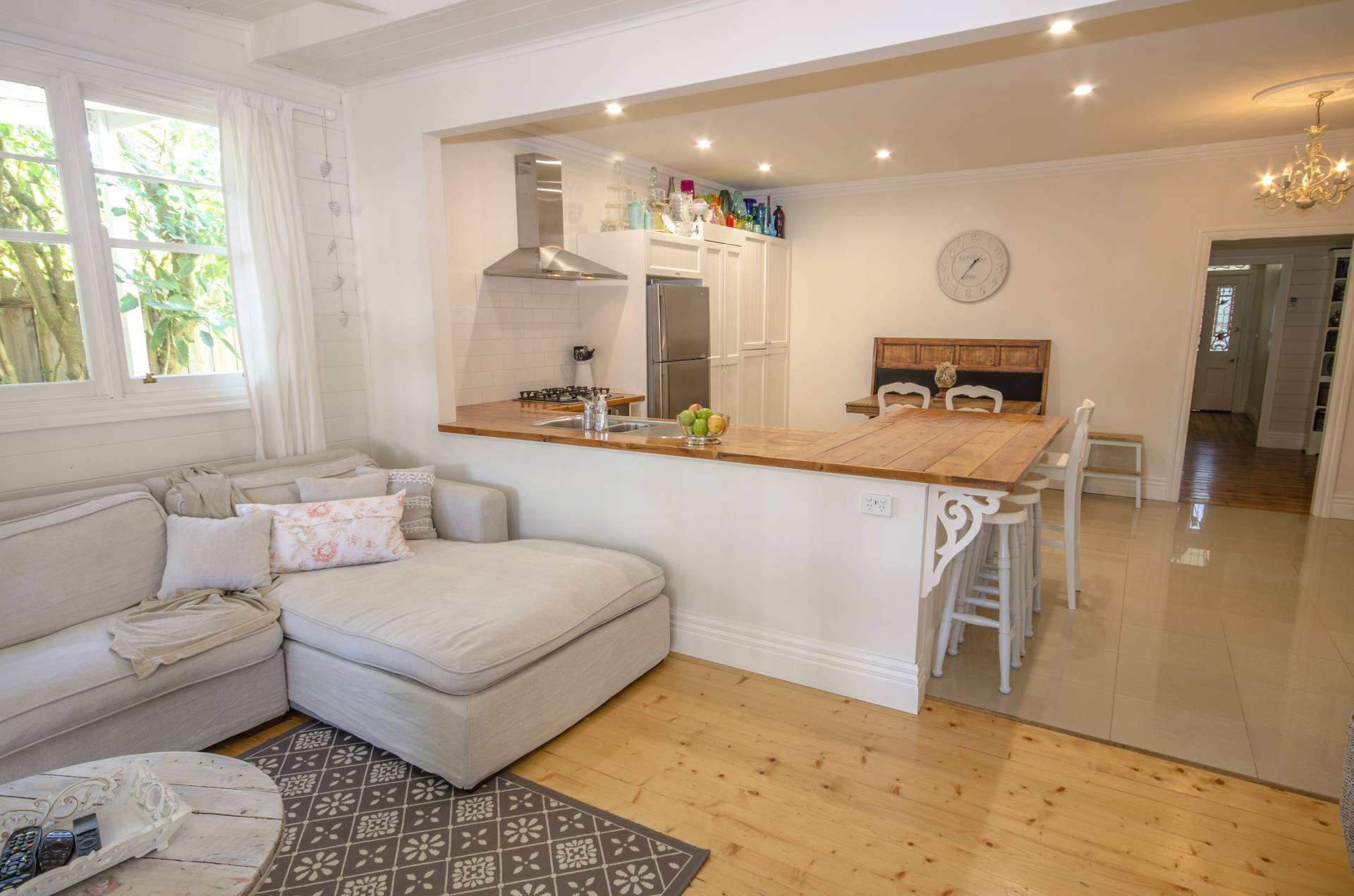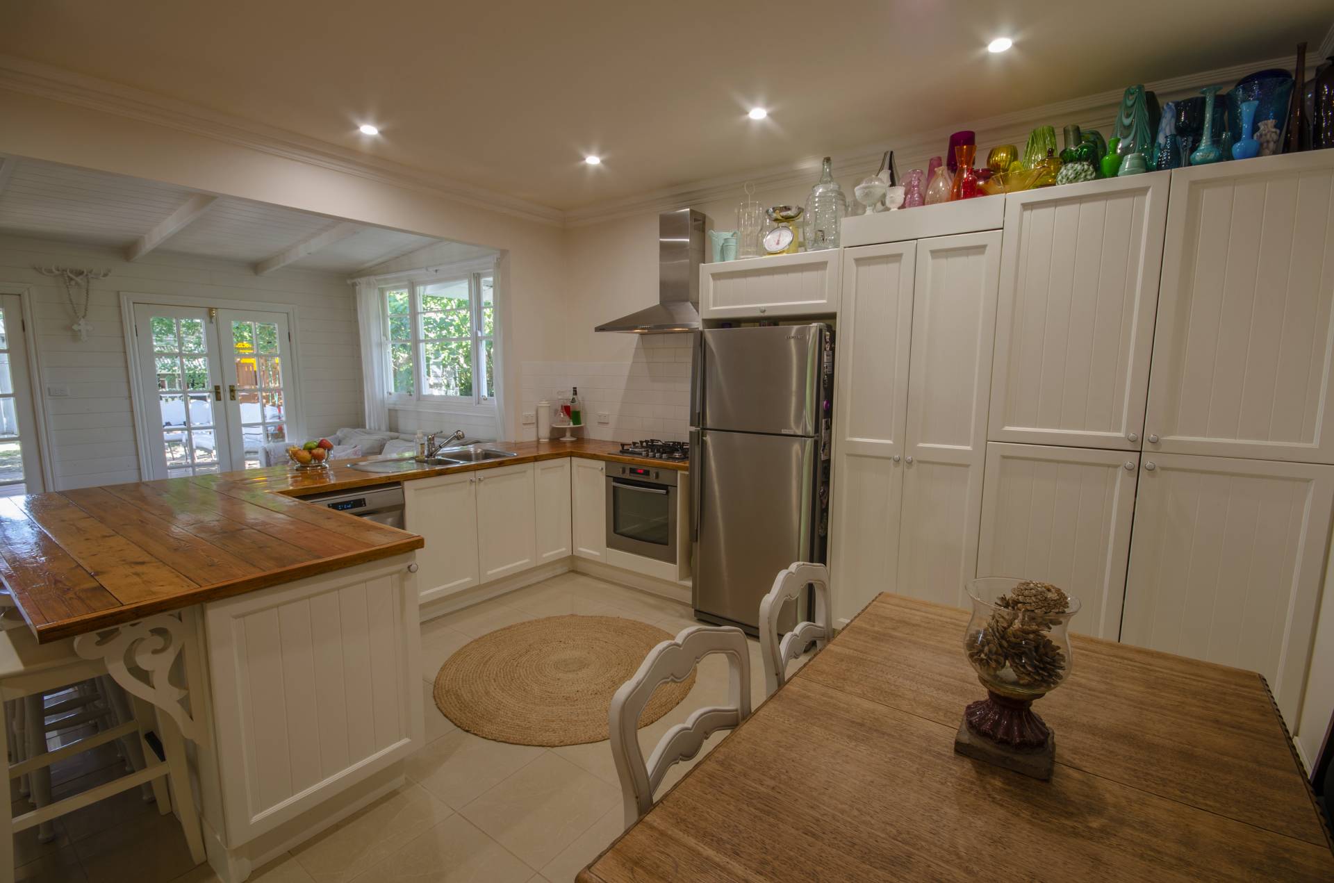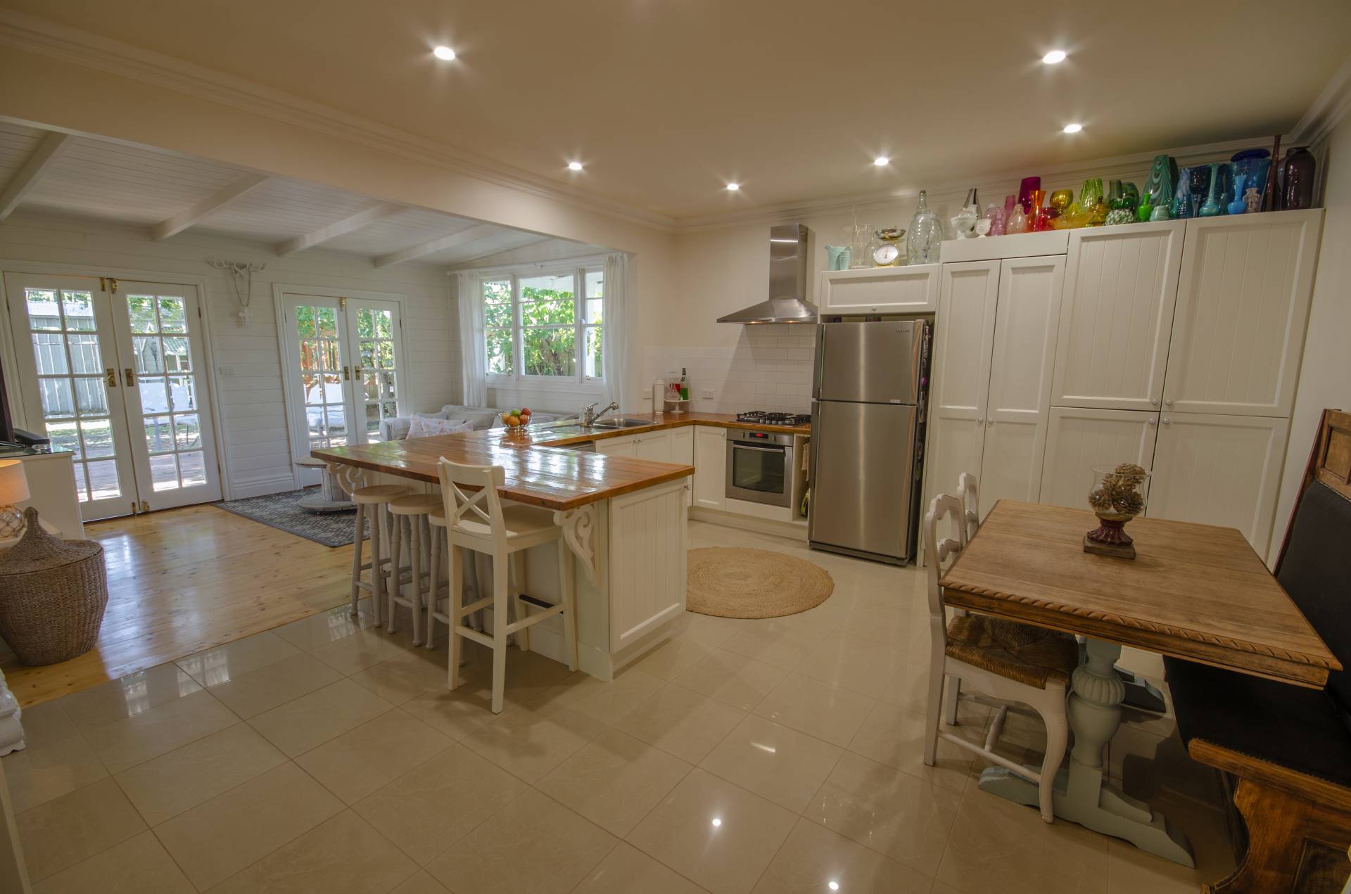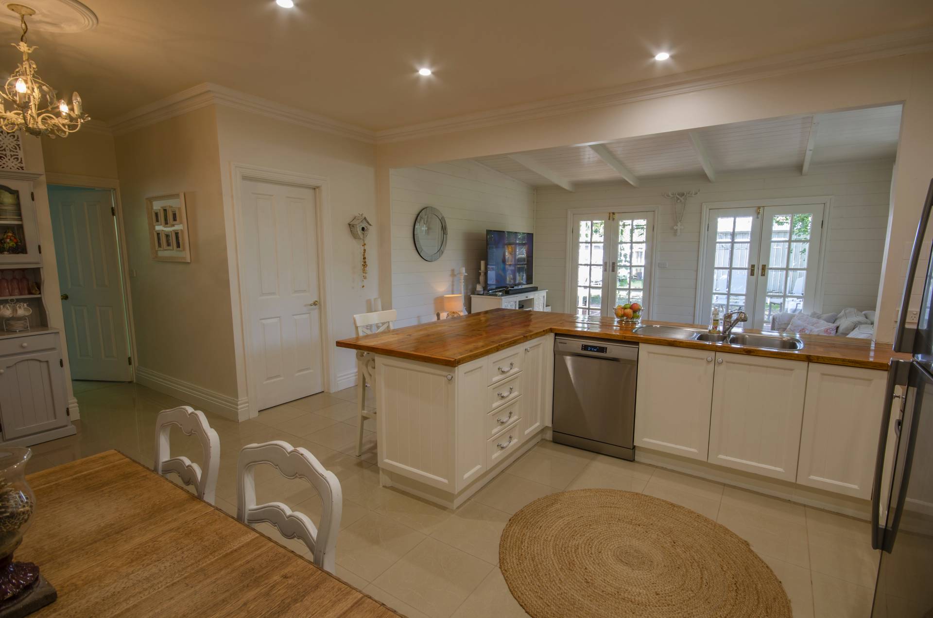 Kitchen has been beautifully renovated but retains some of its original character, plenty of cupboard space, timber top benches, stainless gas oven, hotplates, dishwasher, ceramic floor tiles and rangehood.