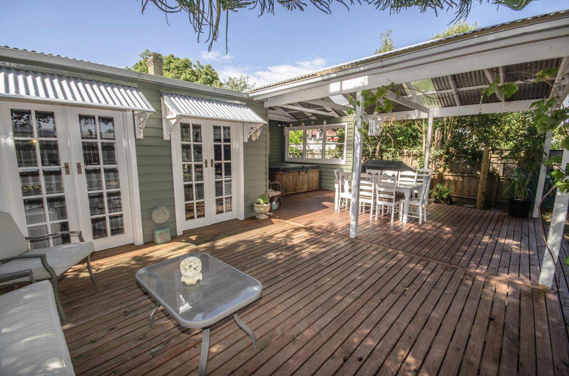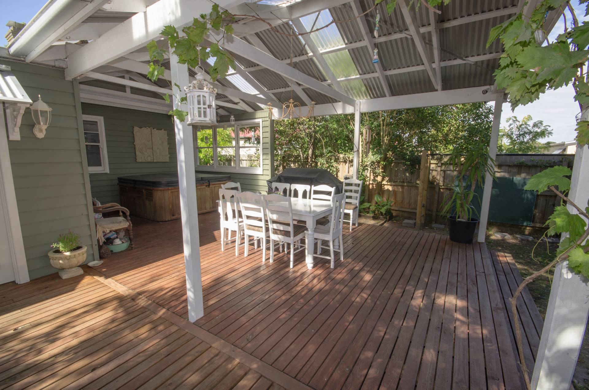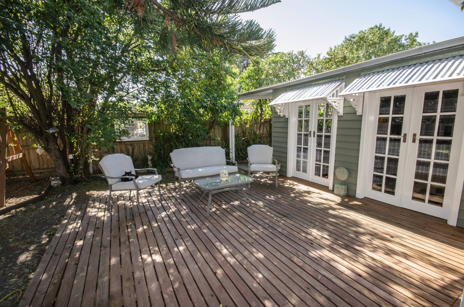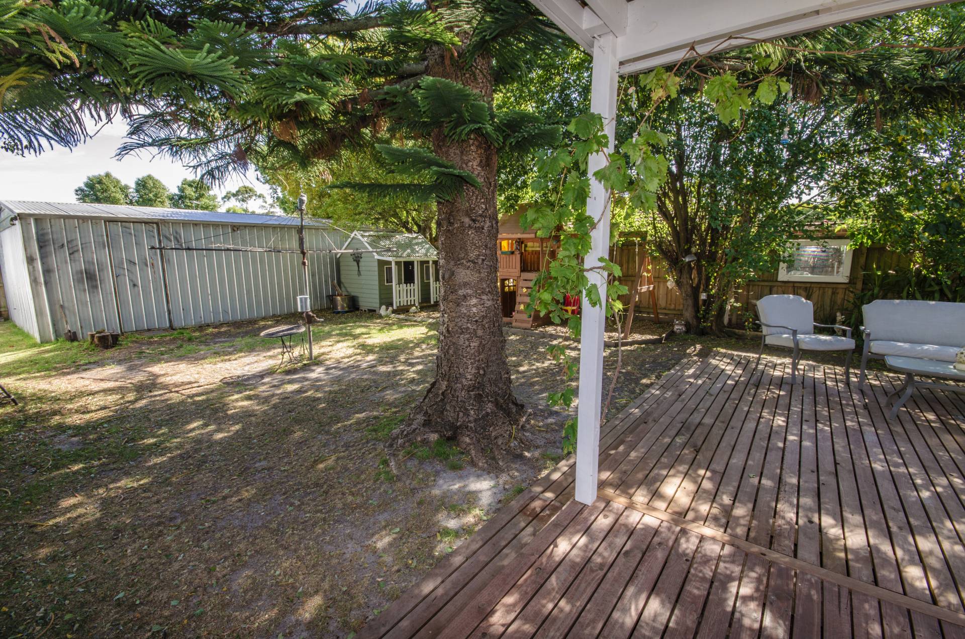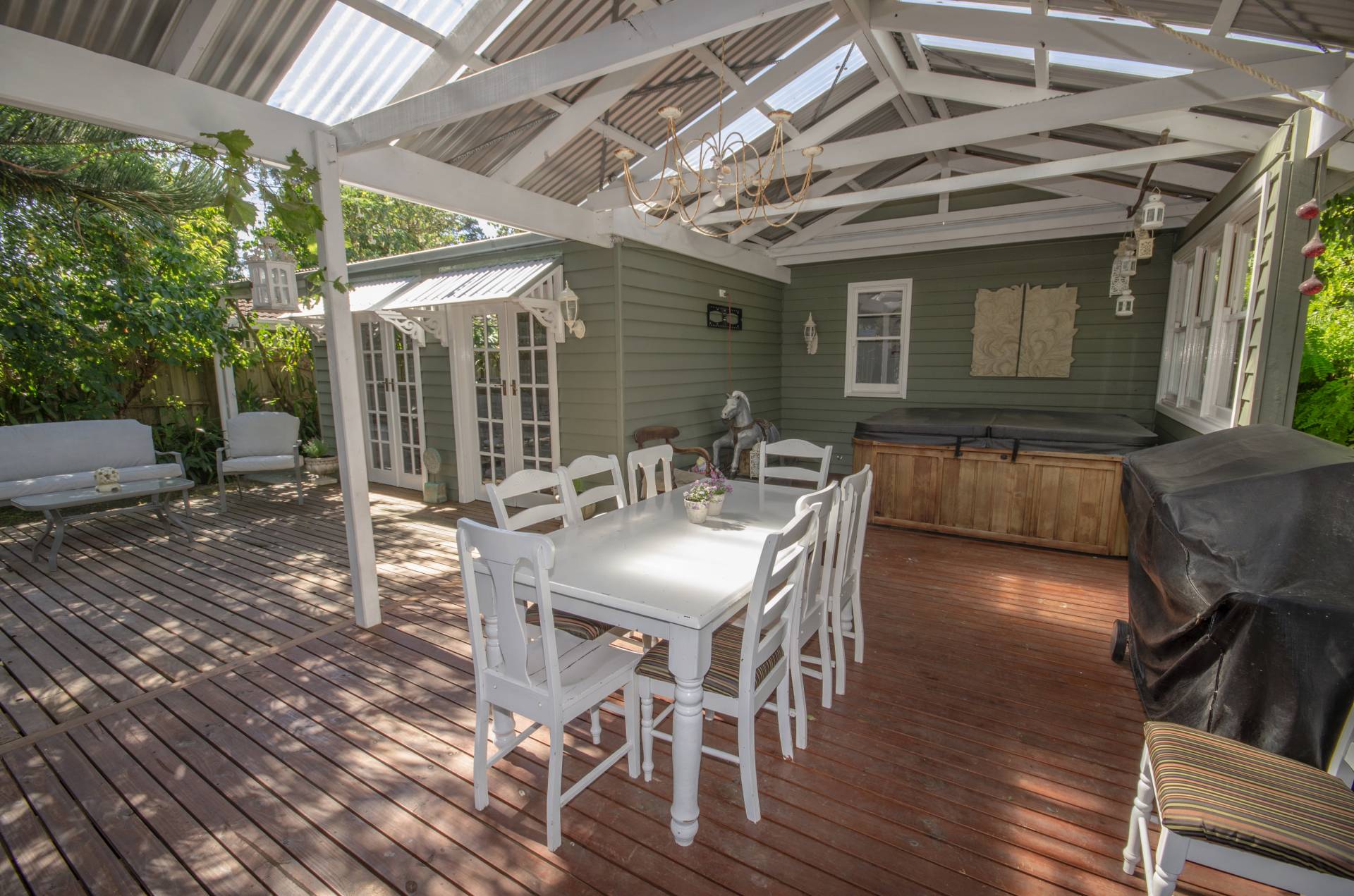 Bathroom has a claw foot bath, corner shower and pedestal hand basin. The family room has French Glass doors that lead out to a large decked outdoor living area. 50% of this decked area is roofed for weather protection on the family barbeques. All of this is nestled under established shady trees. There is gated access to the spacious yard and steel lockup garage.