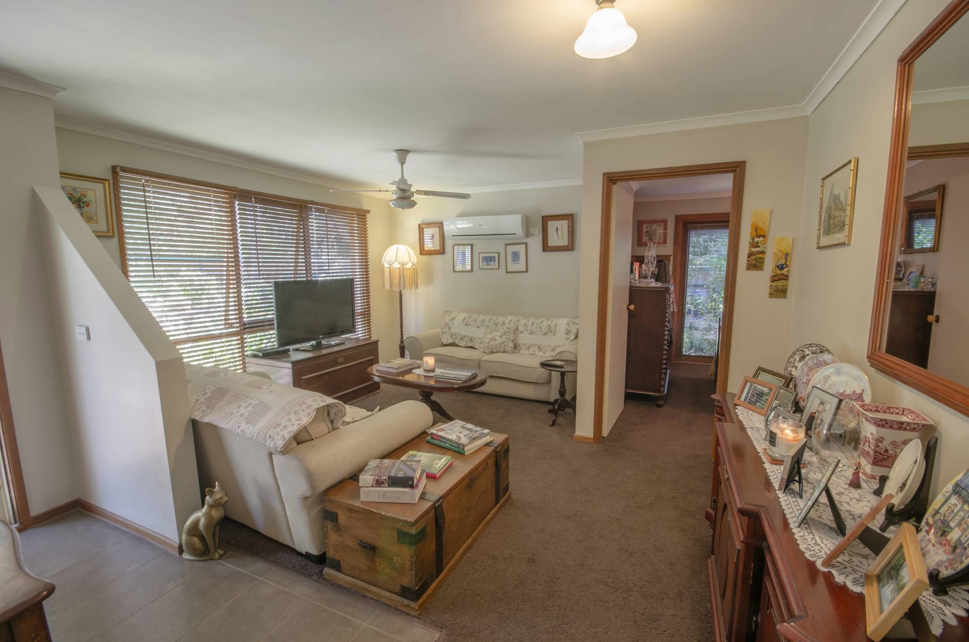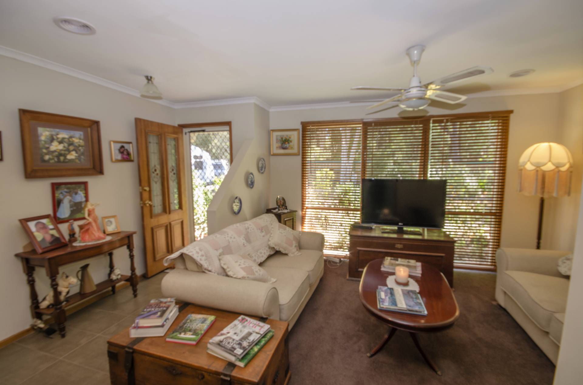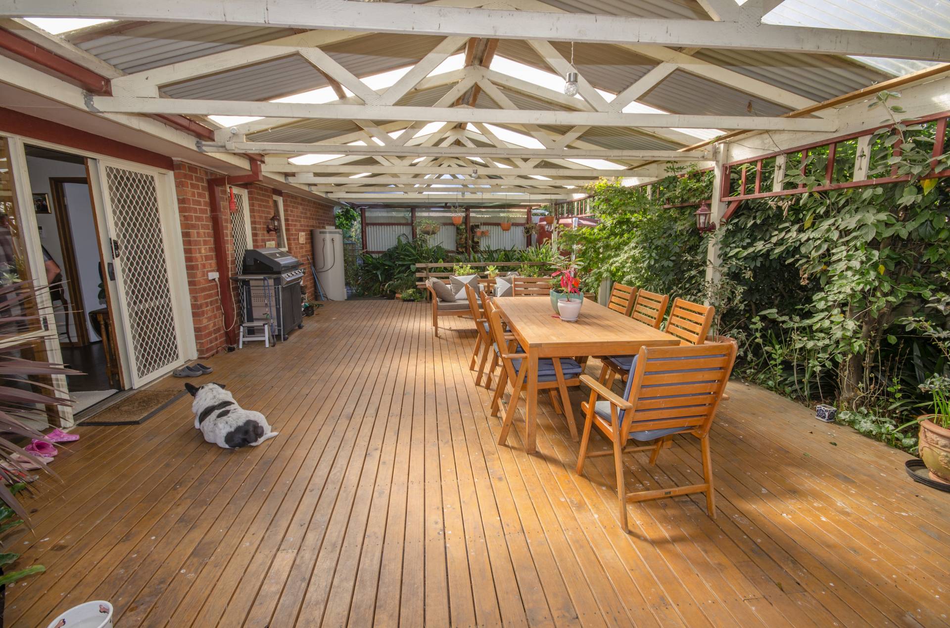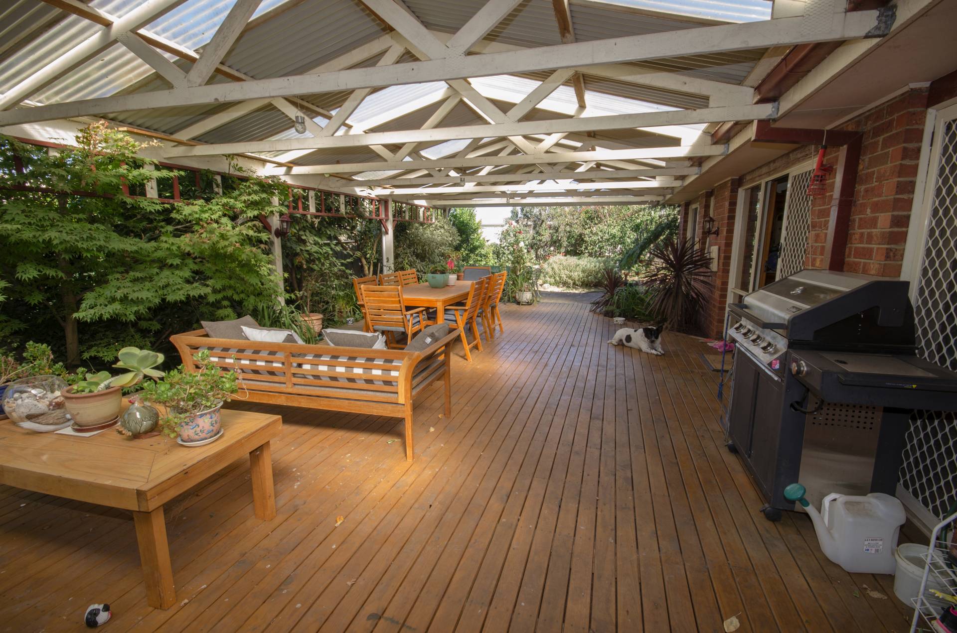 High fences, beautifully established gardens, veggie patch, water feature and water tanks for the gardens. Carport and dual access to property, room for truck, caravan or boat.