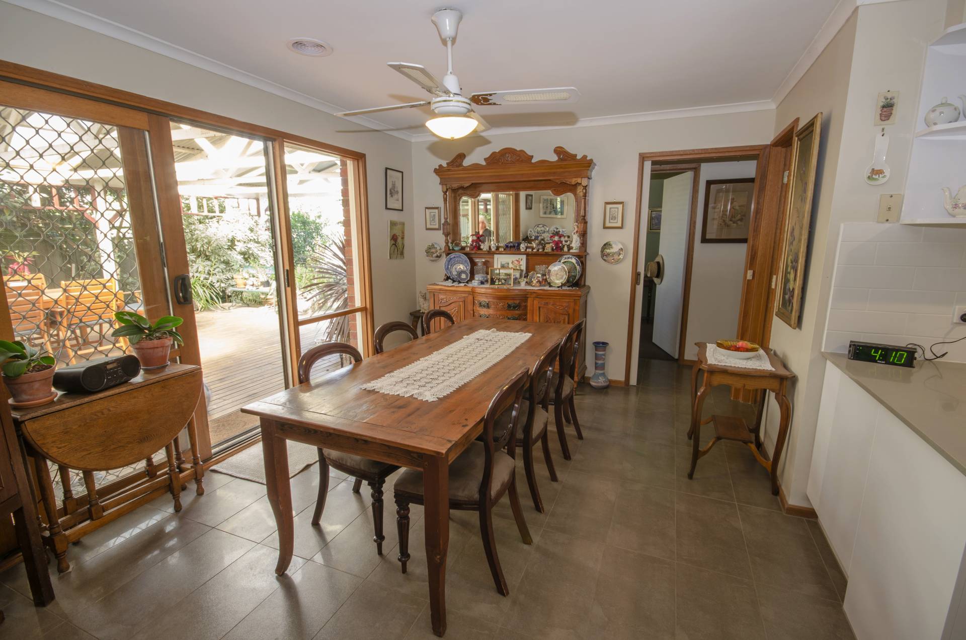 Separate lounge, family room with sliding door leading out to huge undercover decked pergola, 2 car garage and tool shed. Both garage and shed have power and concrete floors.