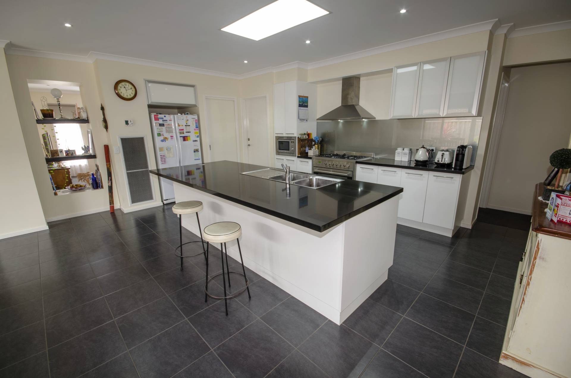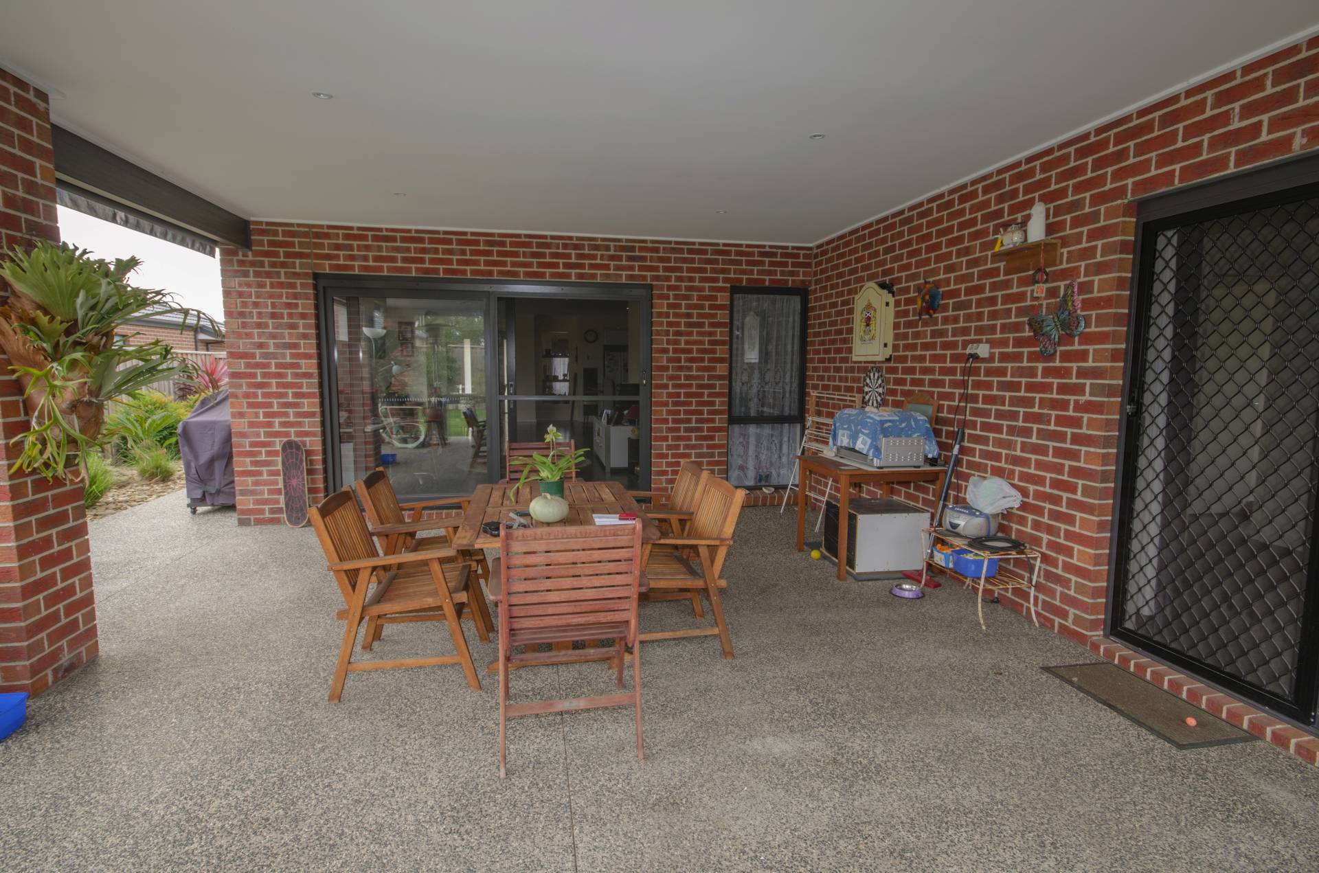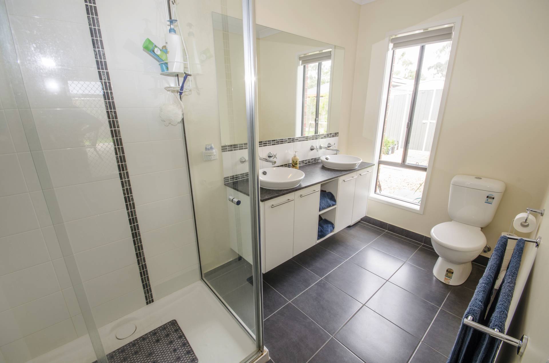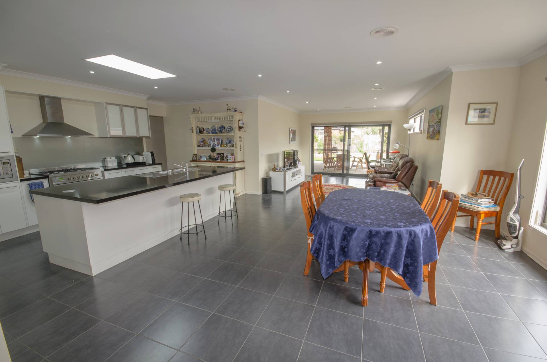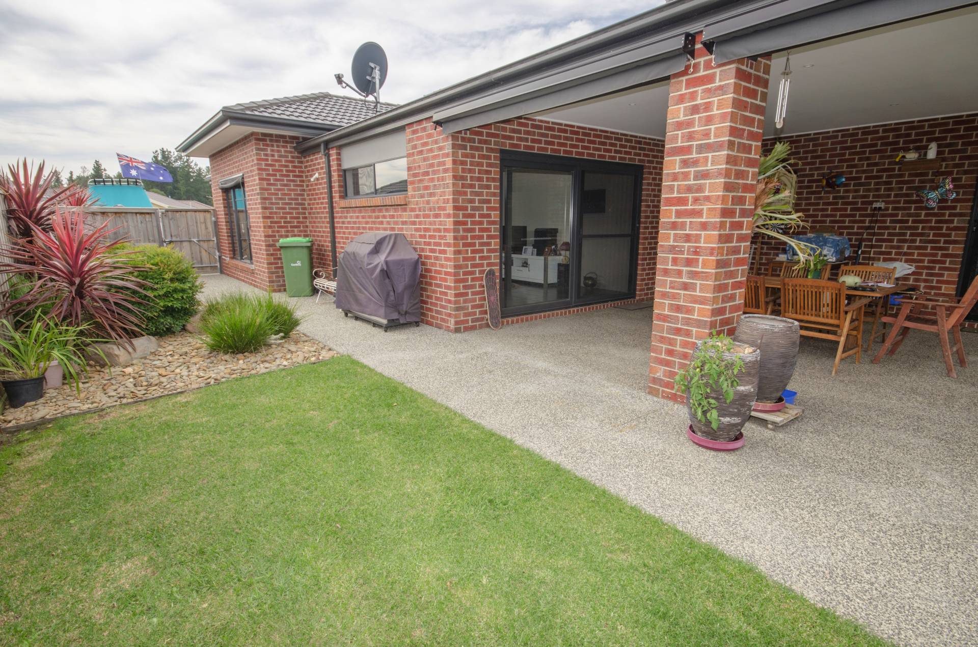 Master has walk in robe and ensuite with double vanity, shower and toilet. All bedrooms are good sized including wardrobes. Sliding glass doors from master and family rooms lead out to the huge alfresco area with bistro blinds and feature pebble paving.