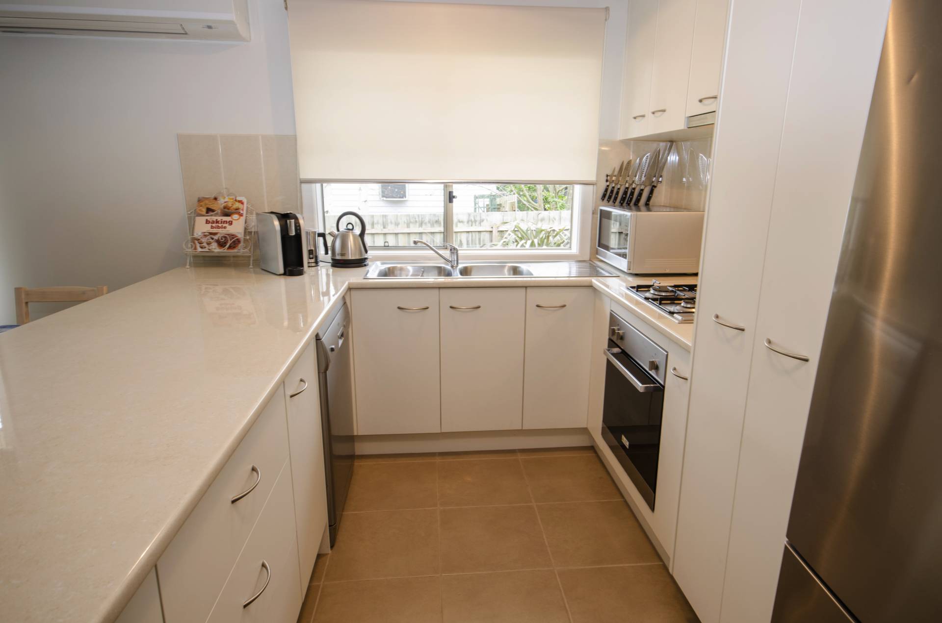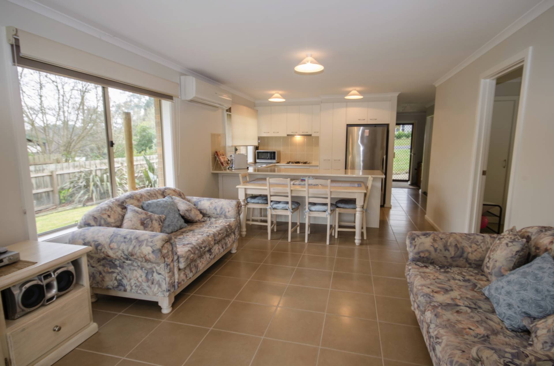 An open plan design combines the kitchen, family and dining areas.  Attractive floor tiles cover all wet and living areas.  The kitchen is both modern and equipped with a gas cook top, electric oven, dish washer and large bench space.
