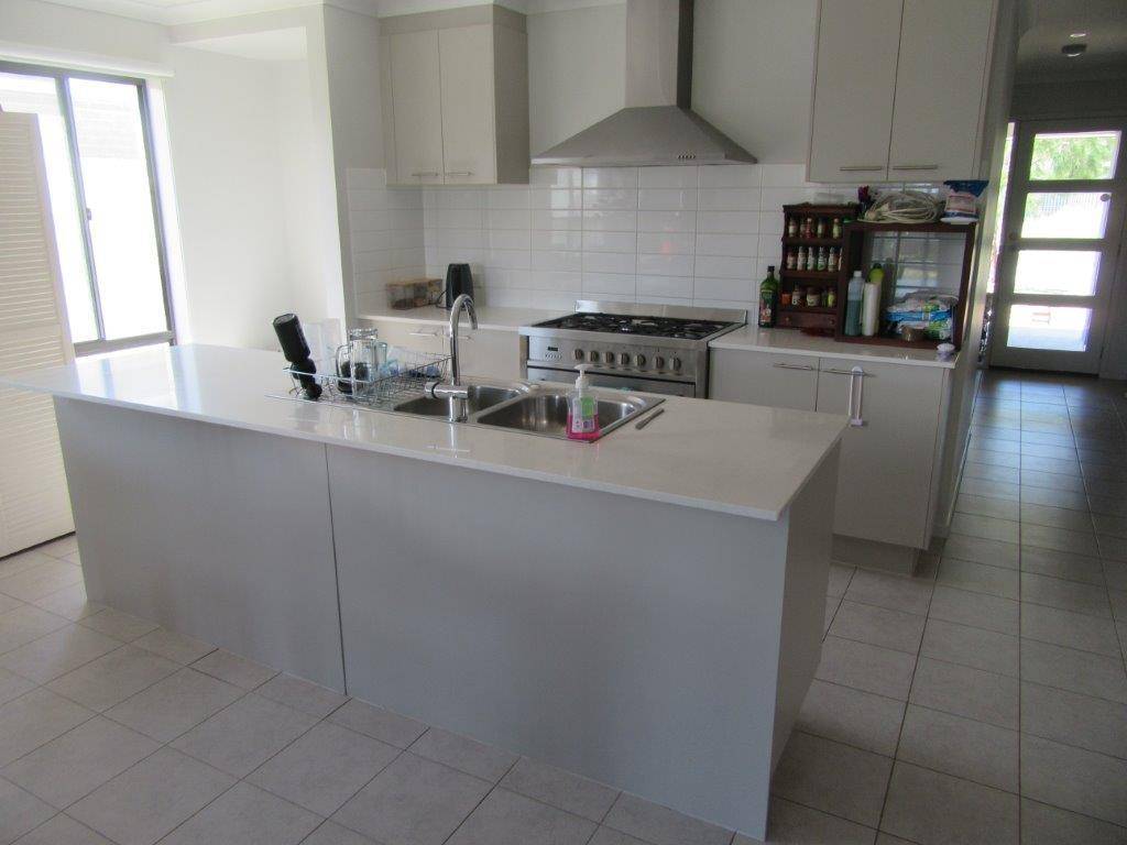 Stainless steel appliances - dishwasher, rangehood, stove, plus pantry and island bench