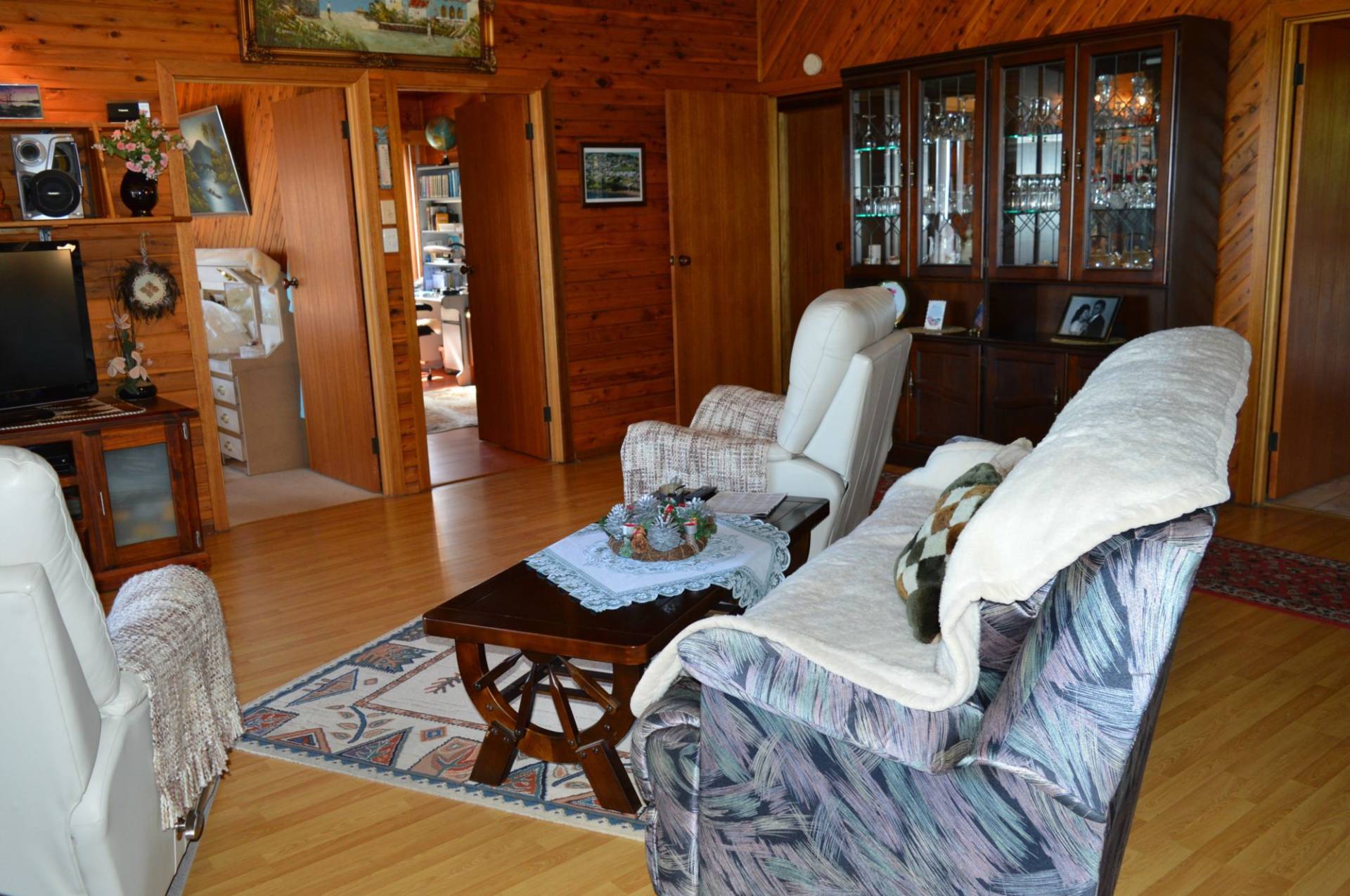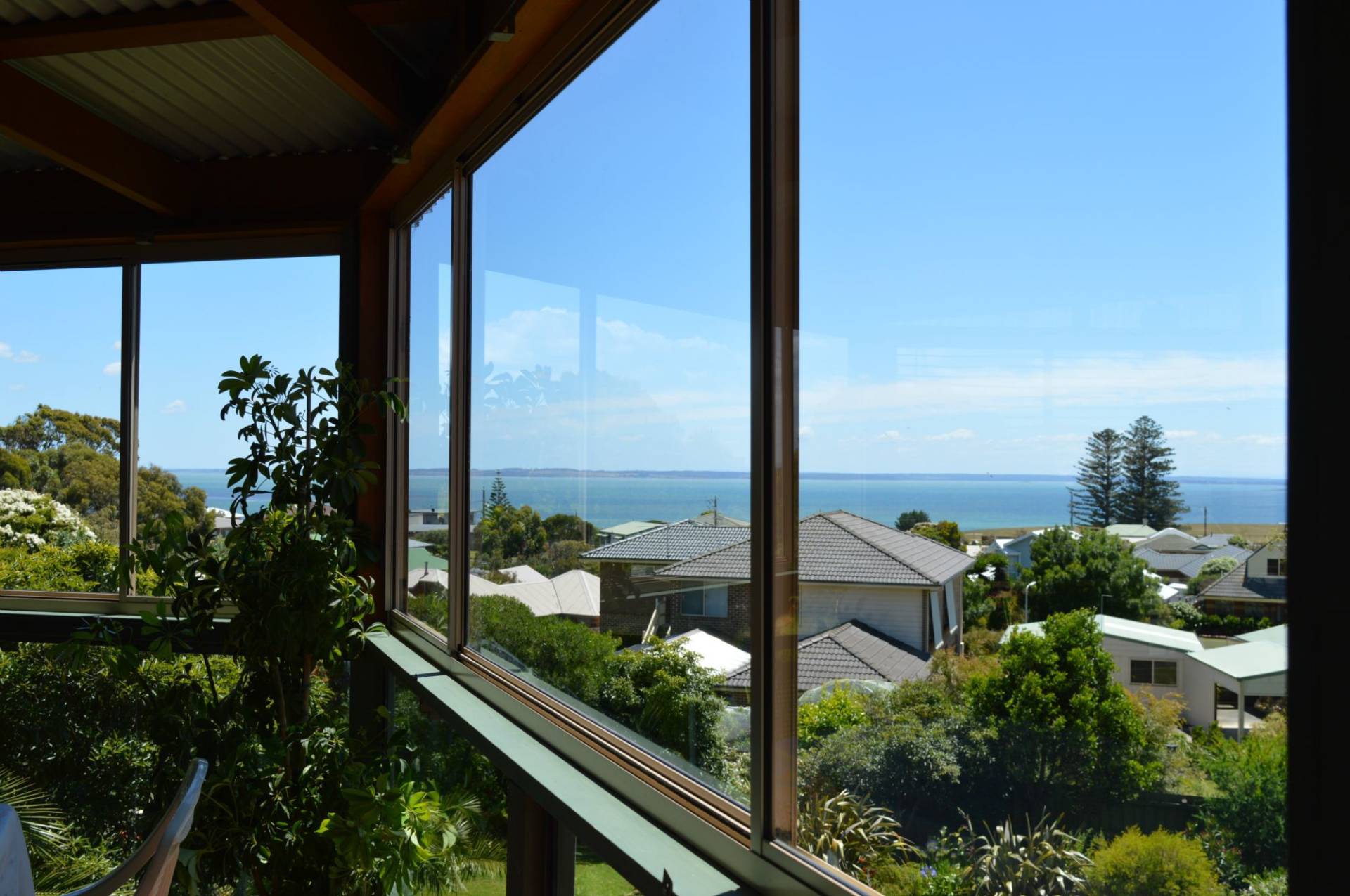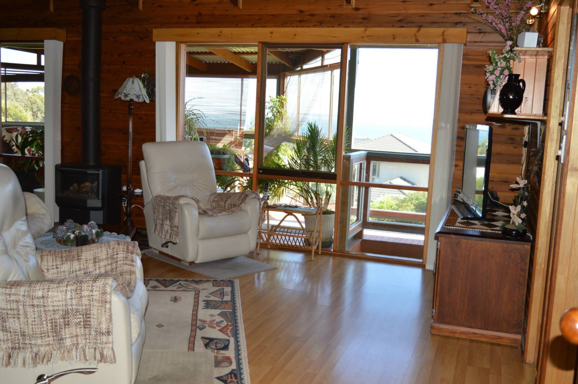 Upper level: Foyer entrance leads you into the large lounge to take in and admire those blue views! There is an alcove kitchen, dining with access through sliding doors onto north facing undercover alfresco area, fully enclosed by glass for all year round enjoyment. The balcony wraps around the home to enjoy the surrounding views. Master bedroom and guest bedroom, family bathroom and separate laundry with access out to the balcony.