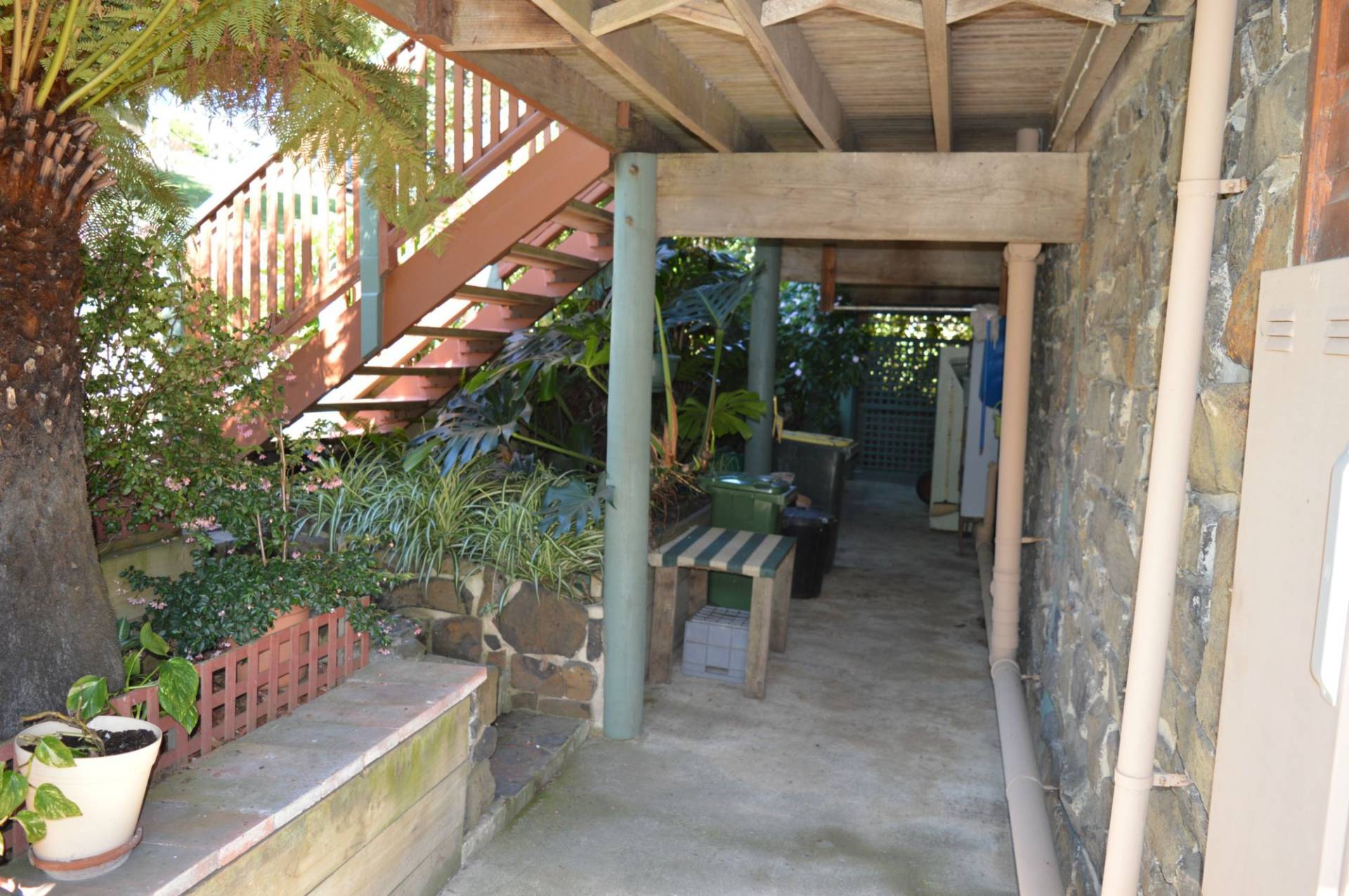 Lower level: Large studio, complete with lounge room, bedroom with ensuite, spa room and available space to add a kitchenette. Large under roof workshop/garage, plus 2 separate carports, bluestone lined breezeway and external stairs to upper level. A must for your inspection!