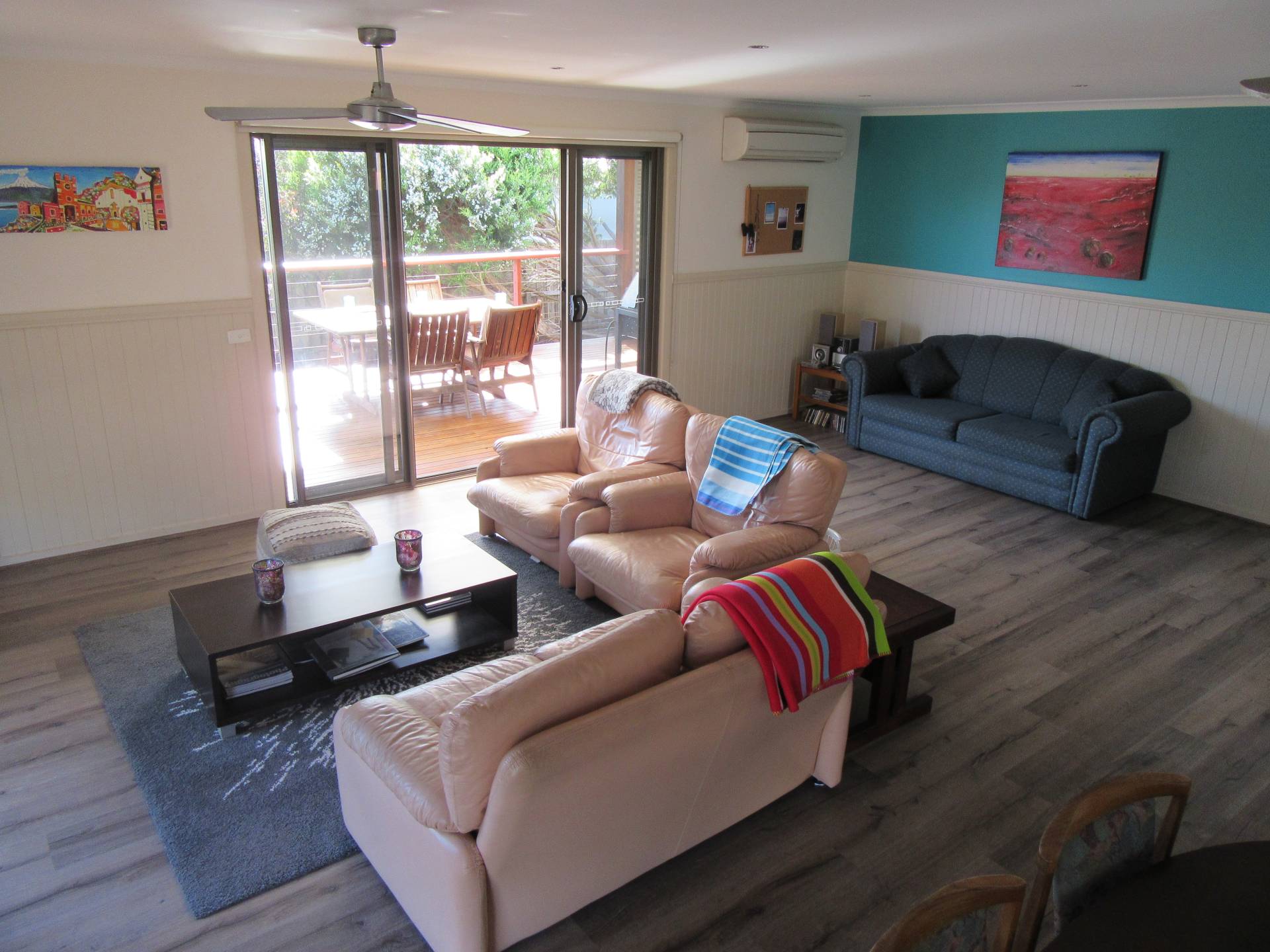 Featuring, large open plan kitchen and dining, ceiling fan and a split system. A coonara wood fire is nestled in the family lounge room, which leads out through east facing sliding doors onto an exceptional all weather large undercover barbeque entertaining zone, complete with mood lighting sunk into the decking.