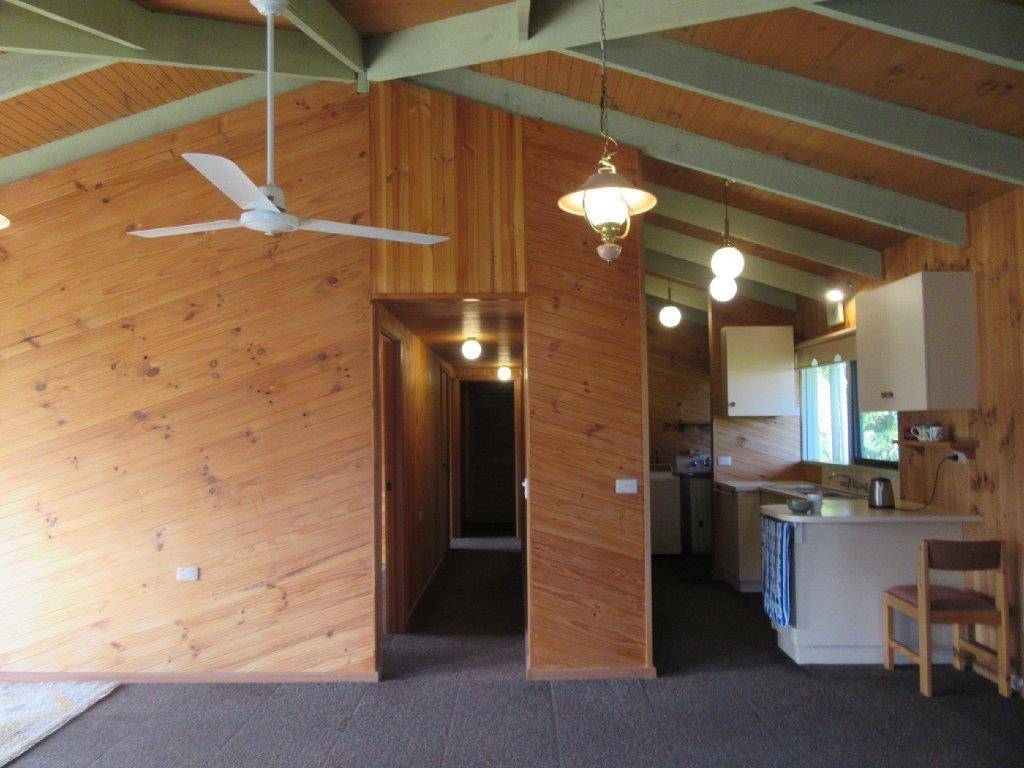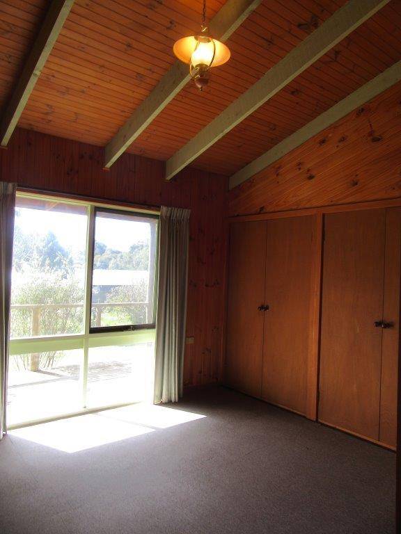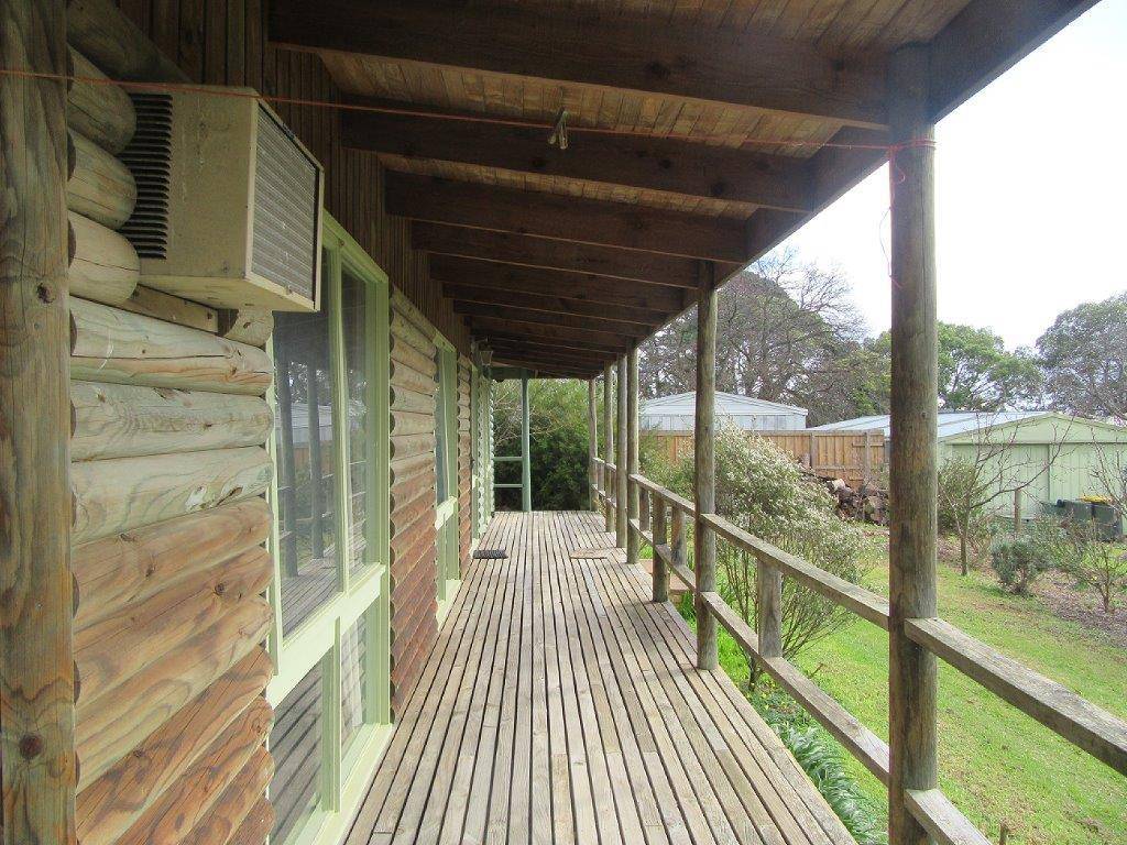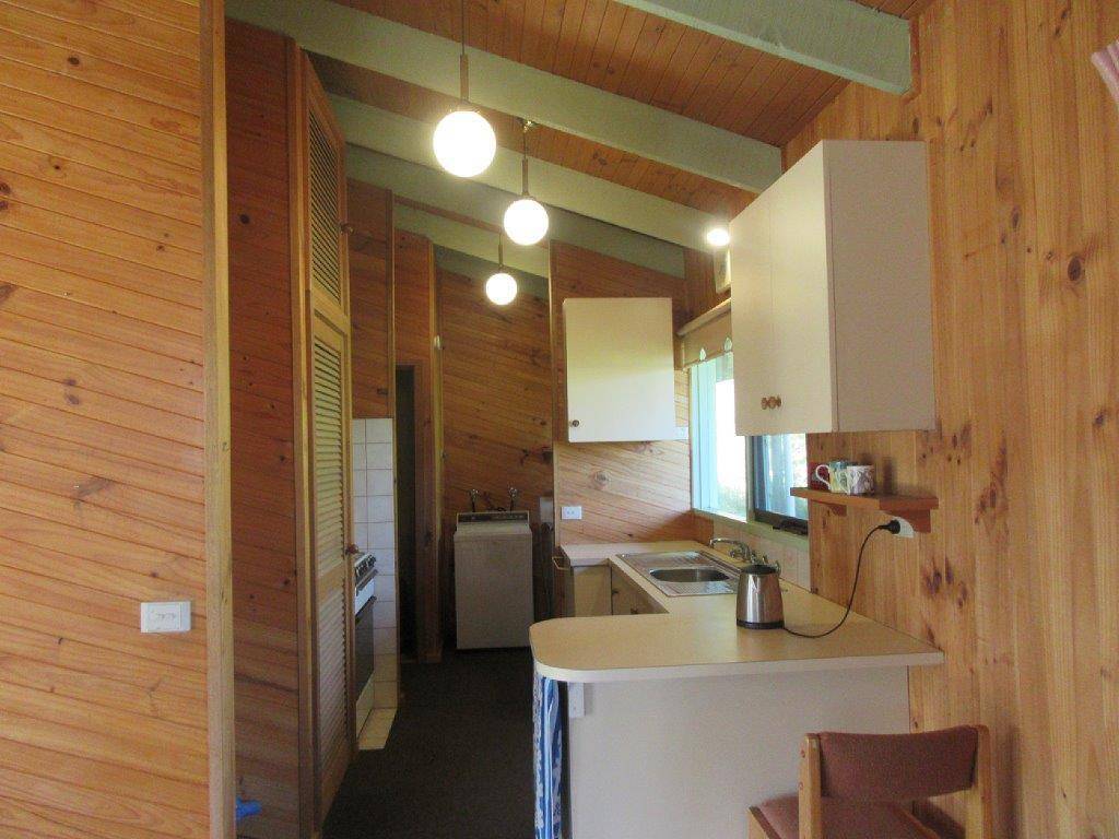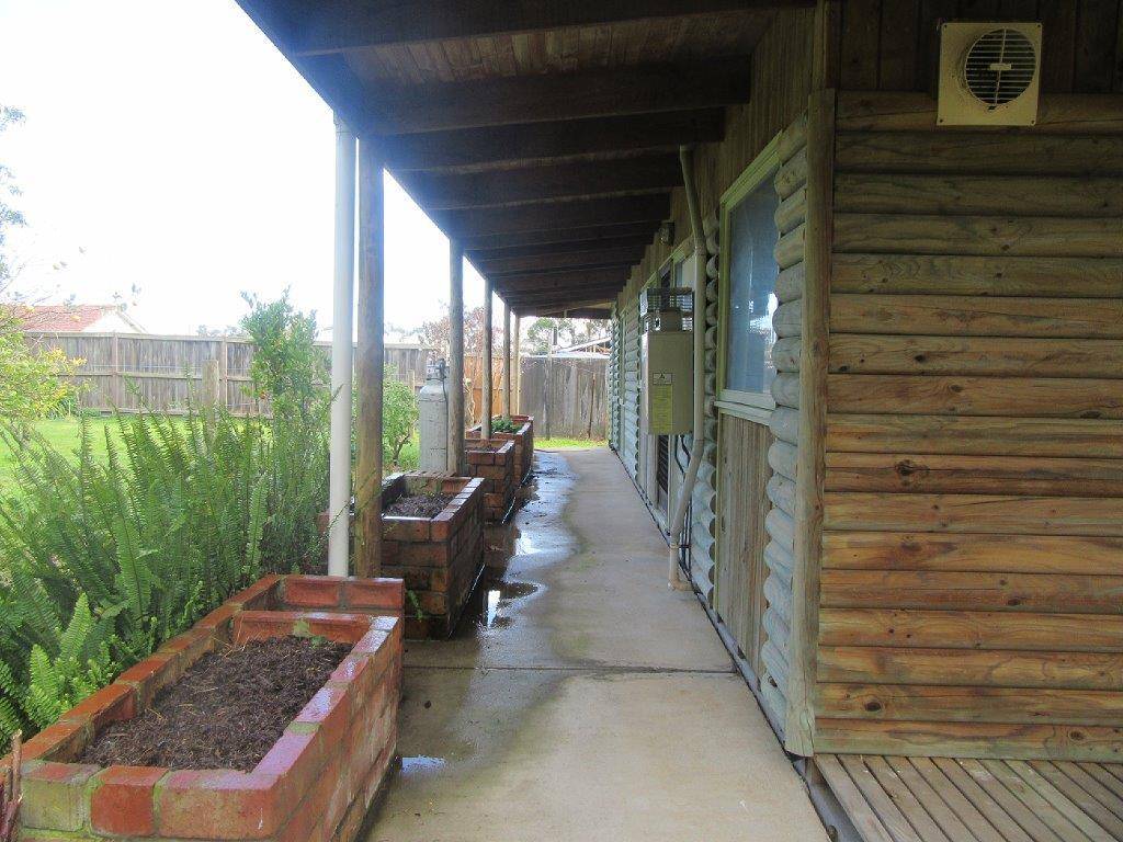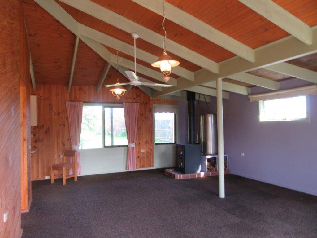 Keeping in style with log cabin design the home has high ceilings and exposed beams, cosy wood panelling and country style light fittings. The house is kept warm from a combustion wood heater that doubles as a stove top/oven, handy for cooking that mouth-watering stew over winter. The cosy kitchen includes gas cooking, pantry, and overlooks the raised brick garden beds you could grow your herbs and veggies in. Both bedrooms have built in robes, the master with extra storage space, and the bathroom is in a handy central location.