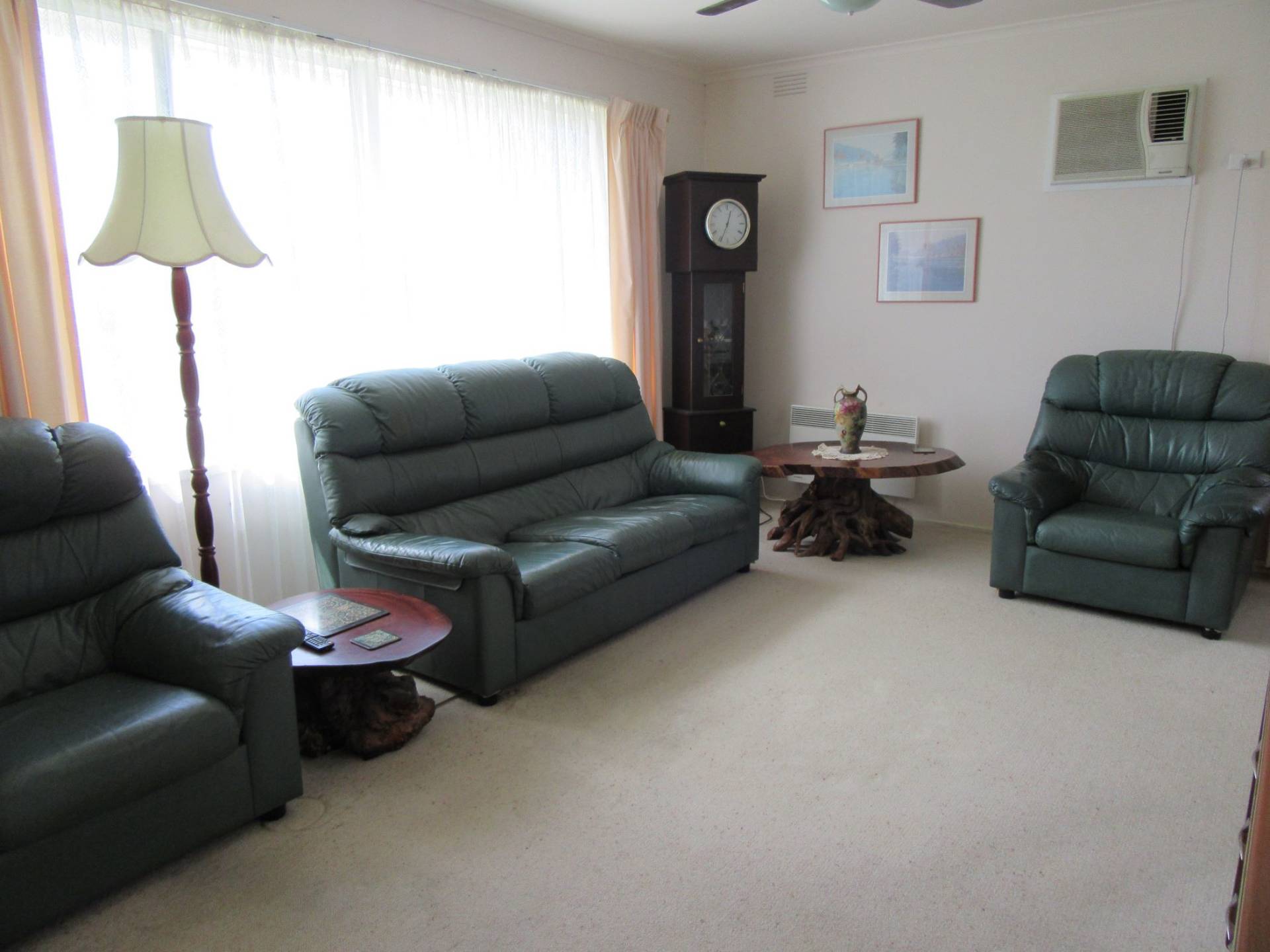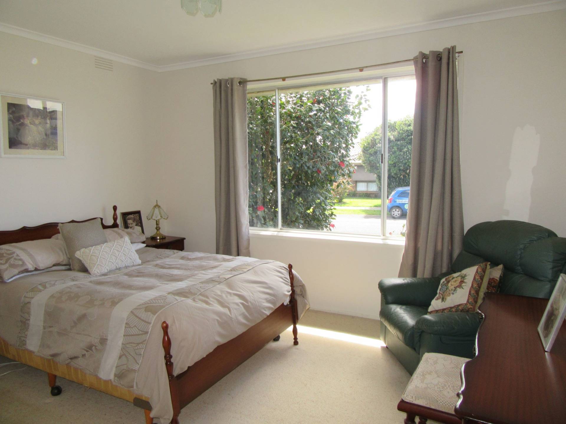 There’s 3 bedrooms, master with large north facing windows, a separate toilet and a large family bathroom and hall cupboards. The laundry is next to the kitchen with rear access to large yard that backs onto park like grounds.