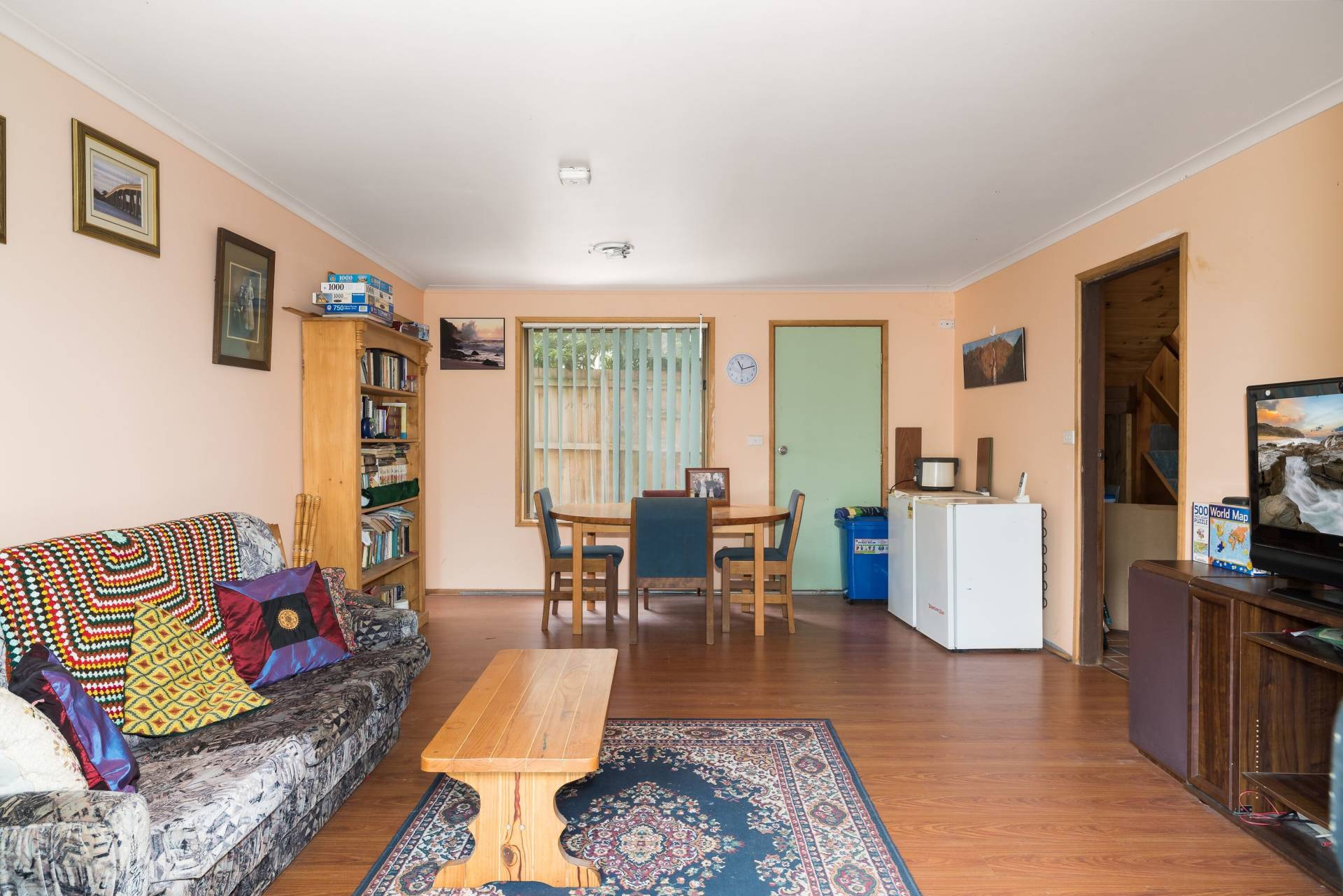 This solid 2 storey home has upper and lower living spaces, two bathrooms, central kitchen complete with dishwasher, electric oven and gas cooktop, split system, 10 x solar panels and access from the dining area outside to the north easterly partially covered balcony.