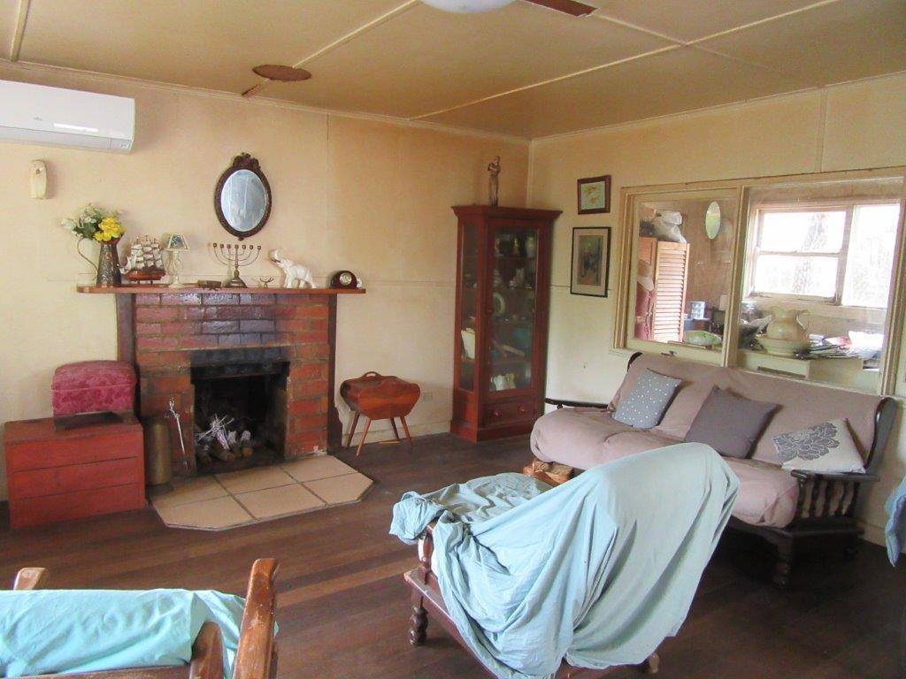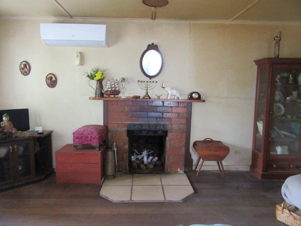 Features include hardwood flooring, open fire place, split-system air conditioner , old shed and is fully fenced.