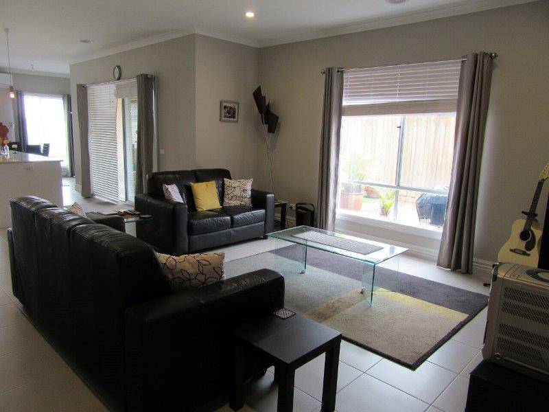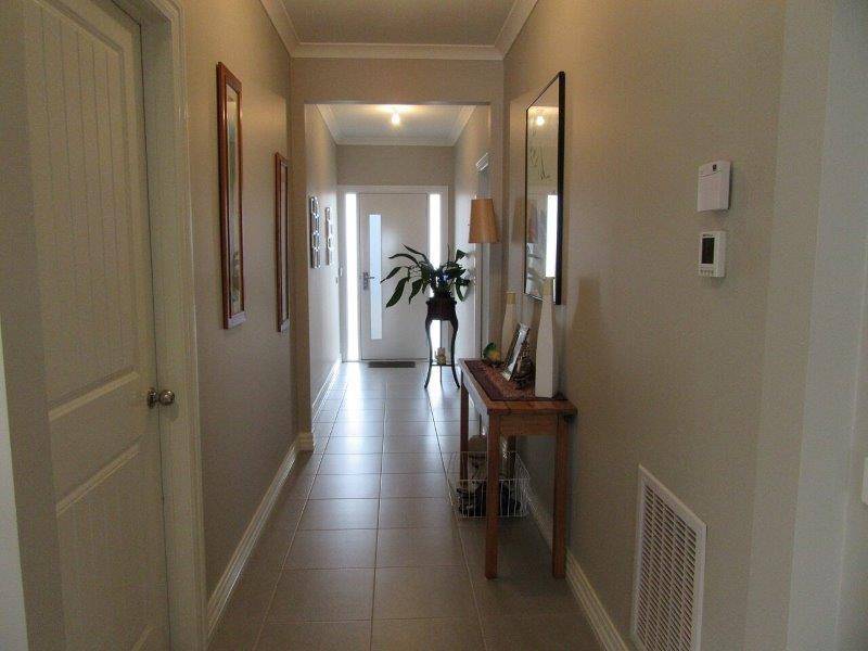 The Kialla Homes built house is under 2 years old and has been very well maintained, offering neutral tones, tiled flooring and quality fittings throughout. Two generous bedrooms have carpet and built in robes and the master includes a large walk in robe and ensuite with his/her vanities and a glass framed double shower recess. The centrally positioned family bathroom is generous in size with a full bath, toilet and matching glass framed shower. An open plan living space full of natural light is based around the kitchen that is designed to keep you in touch with family and guests. With stainless steel appliances, a 900mm dual cooking setup, stone benchtops, dishwasher and double sink set into a large island bench with added power points, there is plenty of inspiration to make that perfect meal. Glass sliding doors lead you out to the undercover patio where you can spend more time entertaining and less time maintaining. With an automated sprinkler system in place hooked up to a water tank your low maintenance, landscaped gardens can look lovely all year round.