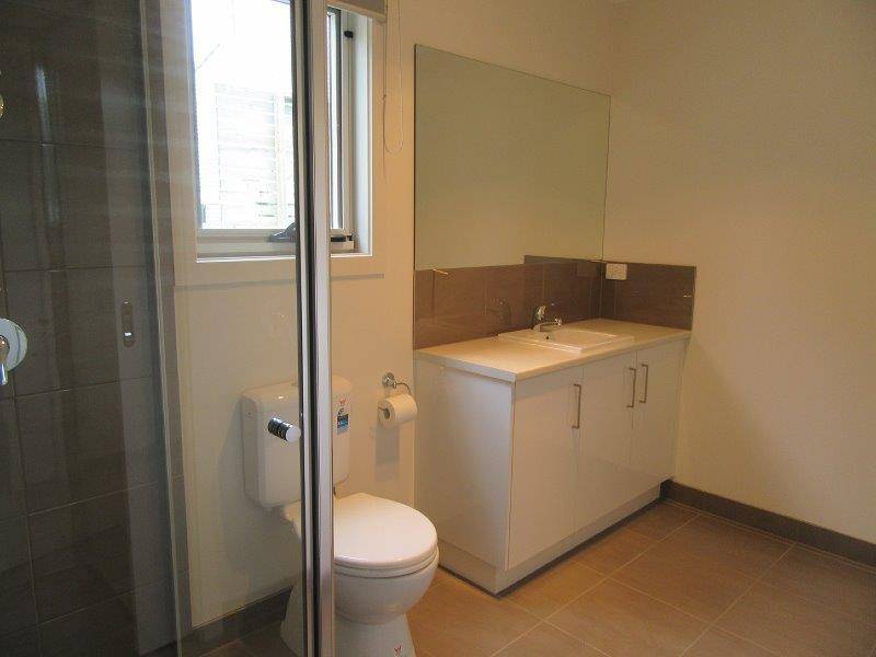 The 2 storey dwelling has been built with attention to detail in mind, this is obvious in the added extras. Downstairs offers an open plan living/dining room and kitchen with electric cooking, stainless steel appliances, pot drawers, island bench and a double sink. A glass sliding door gives access to the lawn and patio courtyard, perfect for when you want to entertain, and the large windows throughout let in the natural light. On this level there is also a master bedroom with more than enough robe space, ensuite with double entry doors and a glass framed shower. The décor has been carefully selected to allow for personal finishing touches and flows seamlessly up the carpeted stairs with feature wood railing and lights at foot level to keep traversing them safe.
