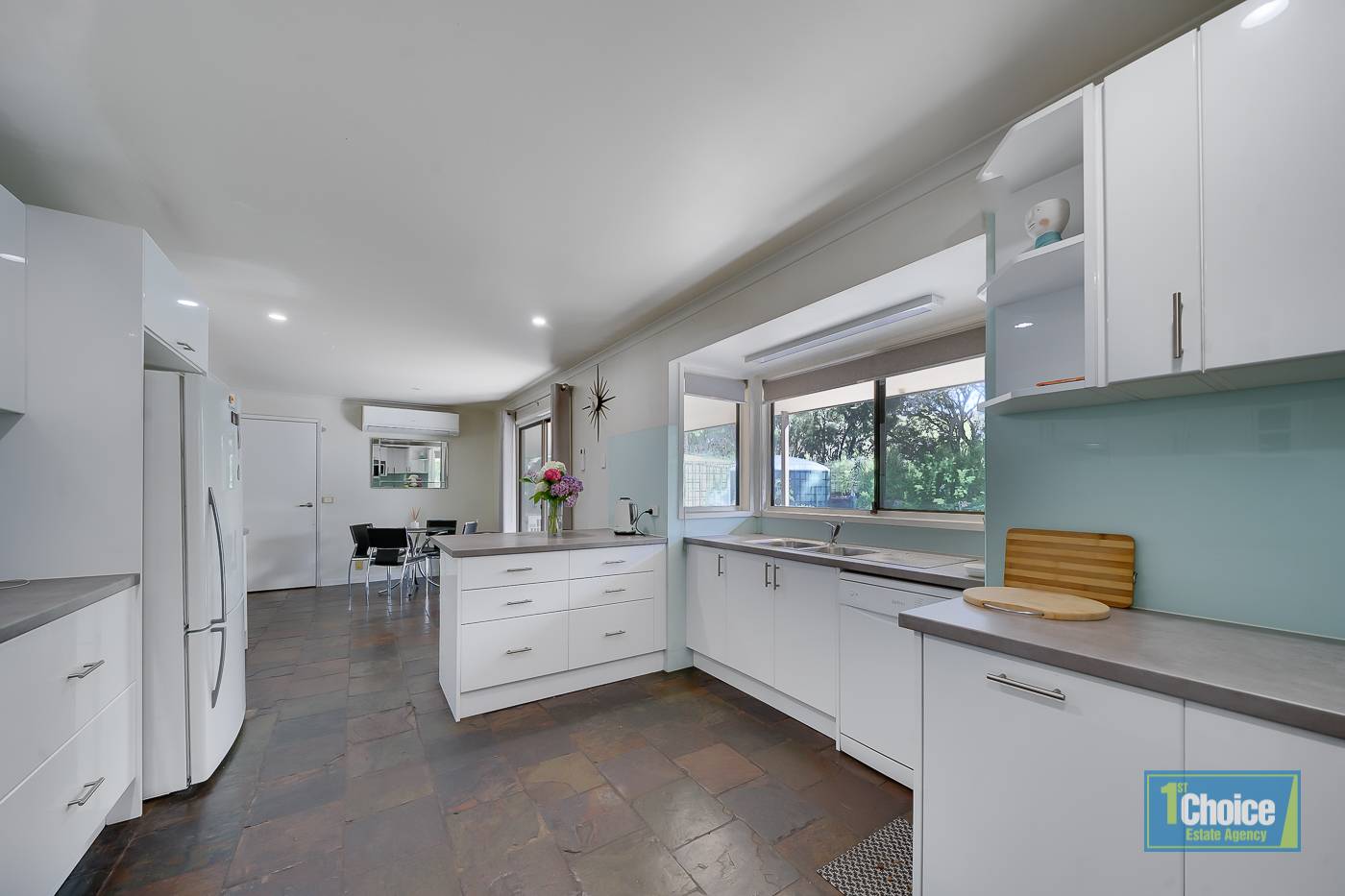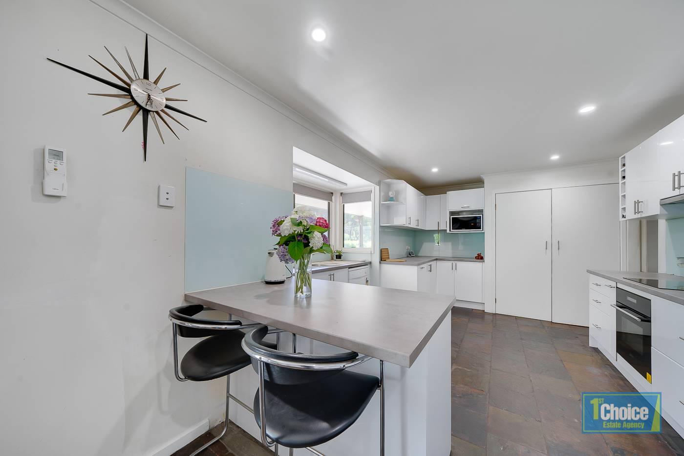 * New modern kitchen with bay window looking out to Conservation Reserve.