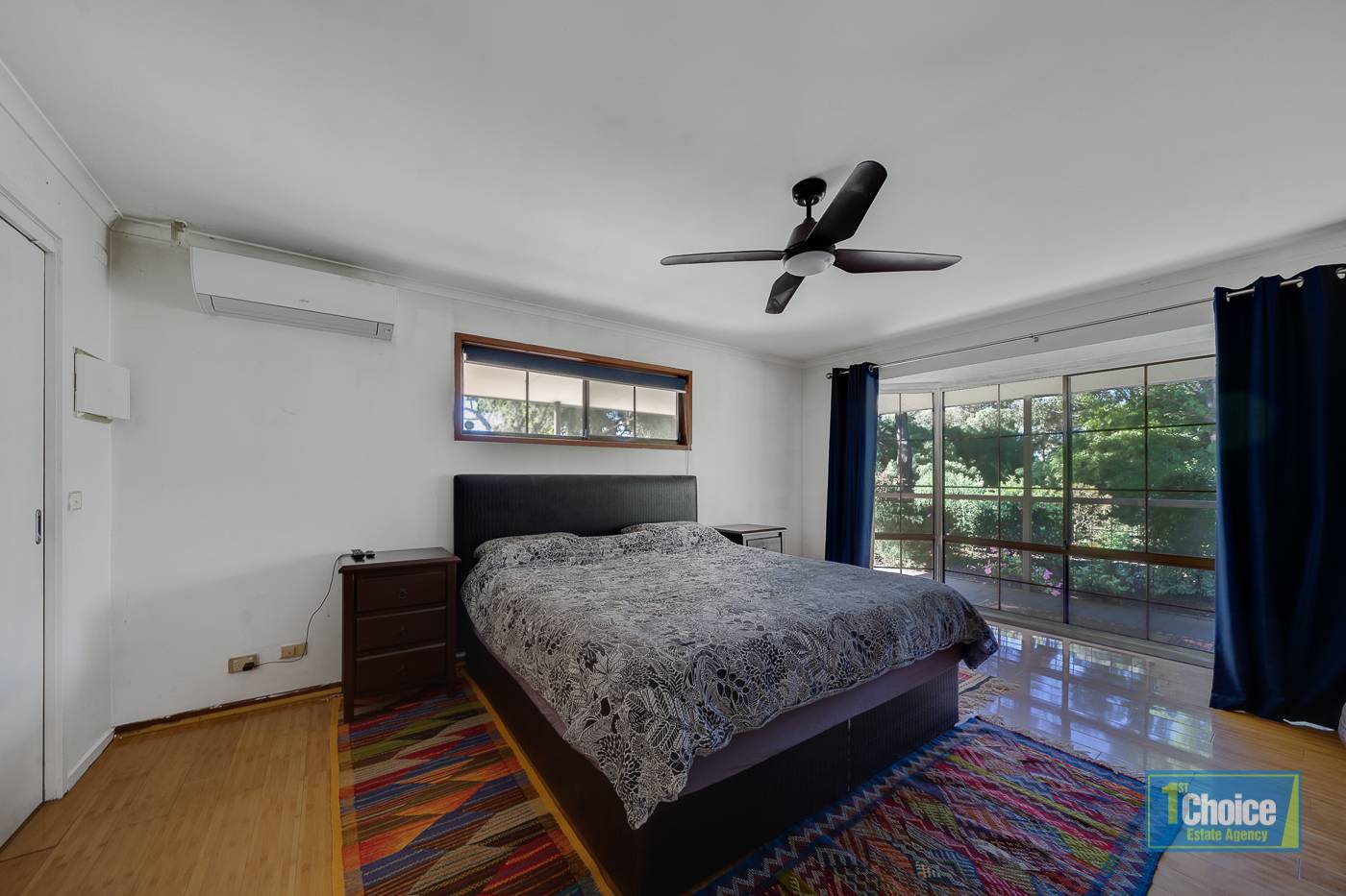 * Spacious master bedroom with split-system air conditioning & ceiling fan, walk-in-robe