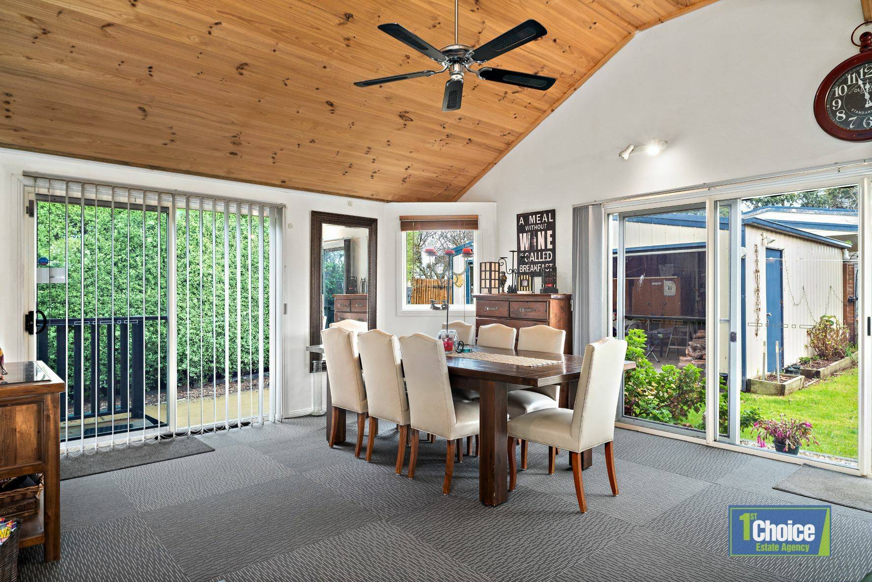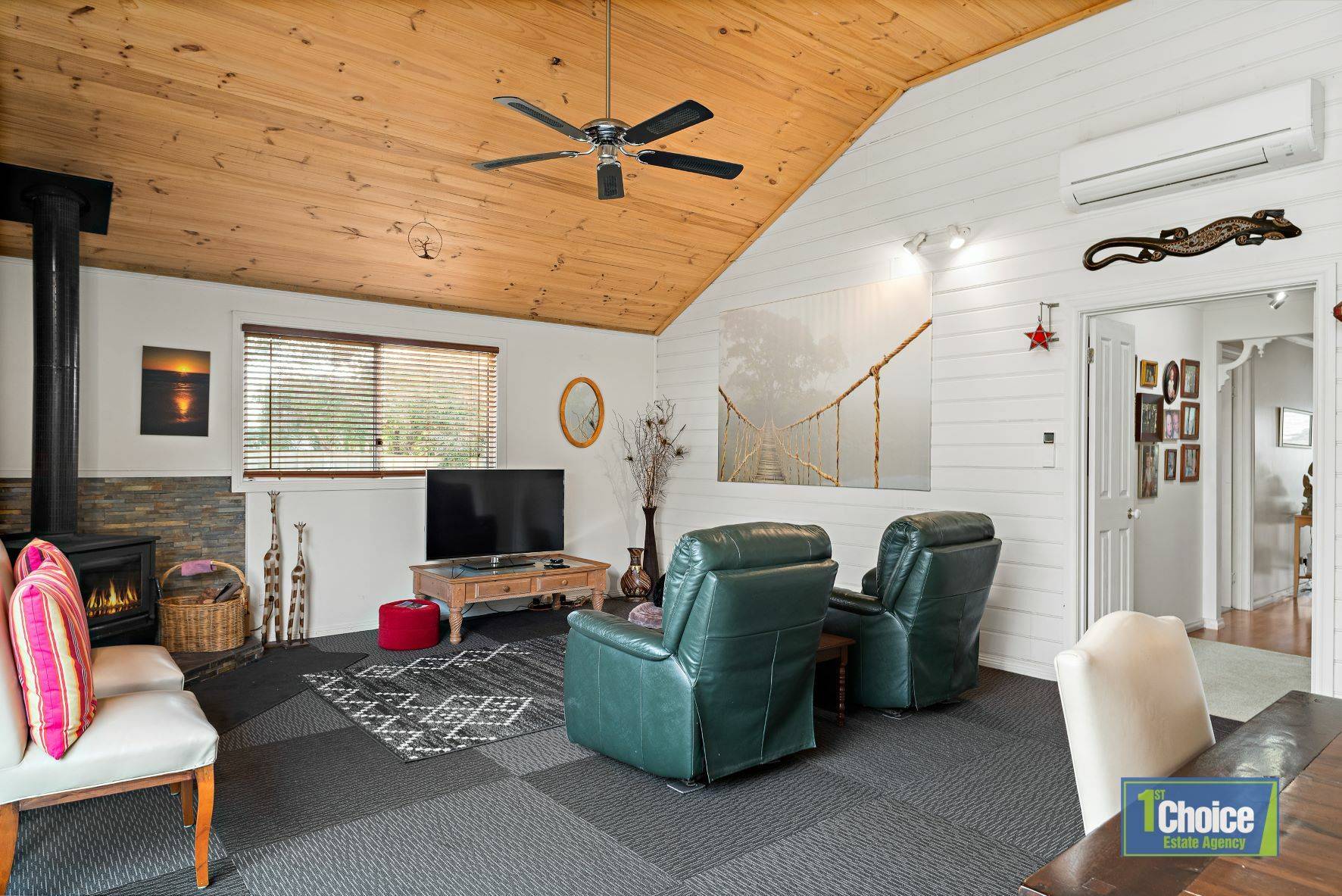 Welcome to this feature filled country home which hosts 2 spacious living/dining zones, one of which is highlighted with highset raked timber lined ceilings.