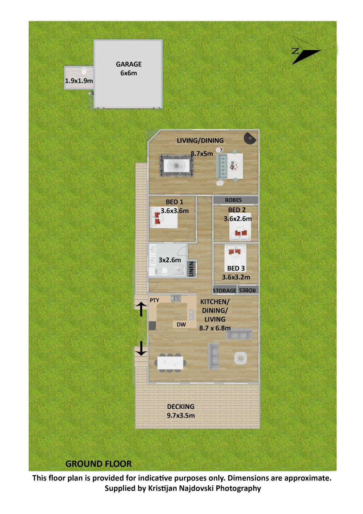 The modern functional gourmet kitchen includes a 900mm oven and gas top cooker and stylish benchtops. There are three comfortable and functional bedrooms. Lots of good things are included within the home including ceiling fans throughout, a free-standing wood fire, 2 split system air-conditioners and solar system. There is a roomy loft storage area with stair access.