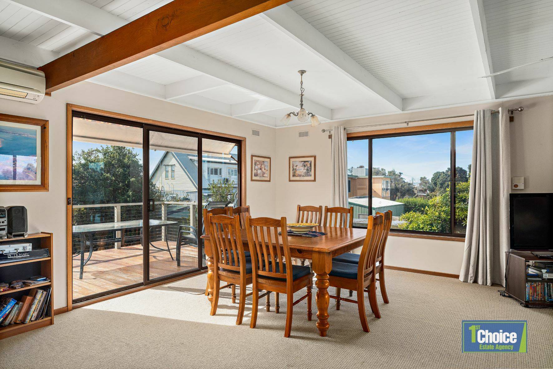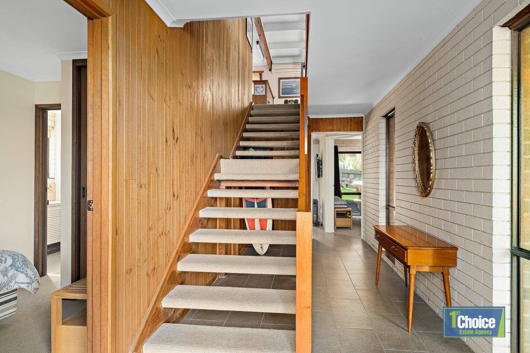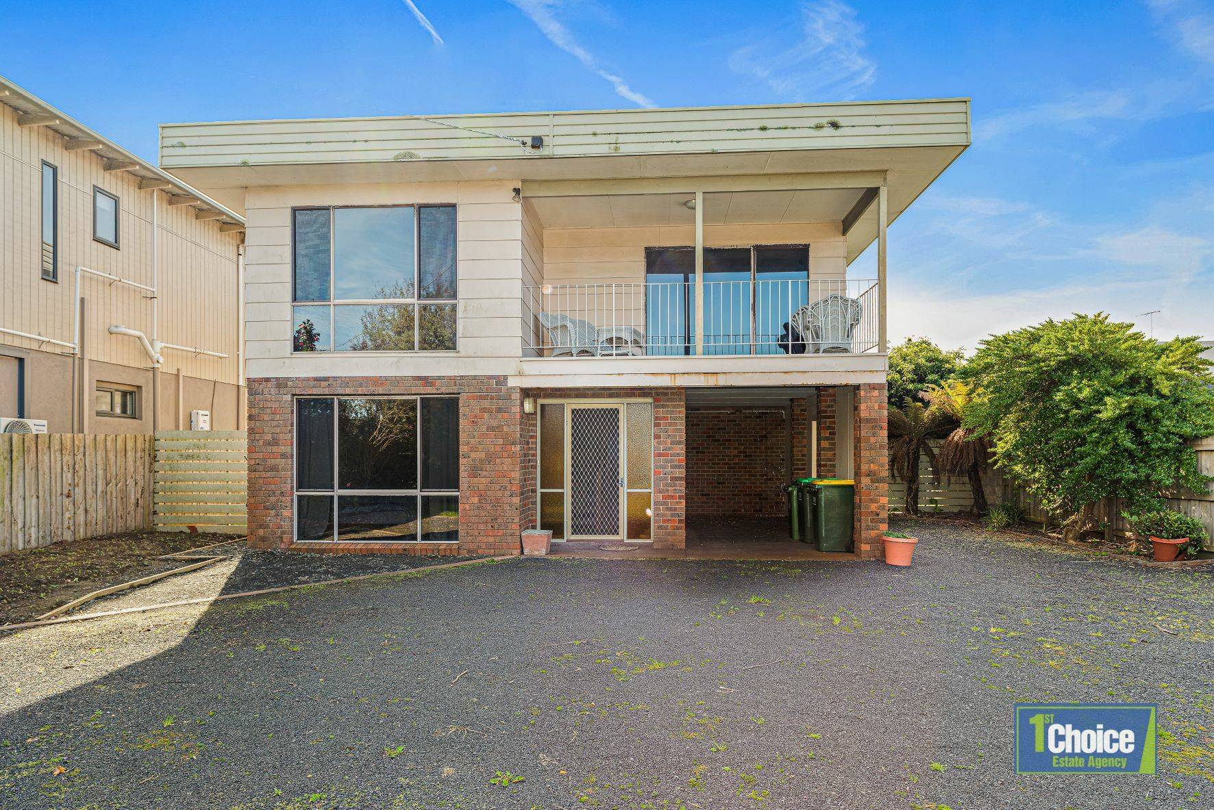 Upstairs – features open plan living with a large wood grain kitchen with ample storage, lounge and dining area and the master bedroom with ensuite. Split system air, south facing balcony overlooking the foreshore greenery. The north facing balcony for entertaining your guests has filtered views of San Remo.