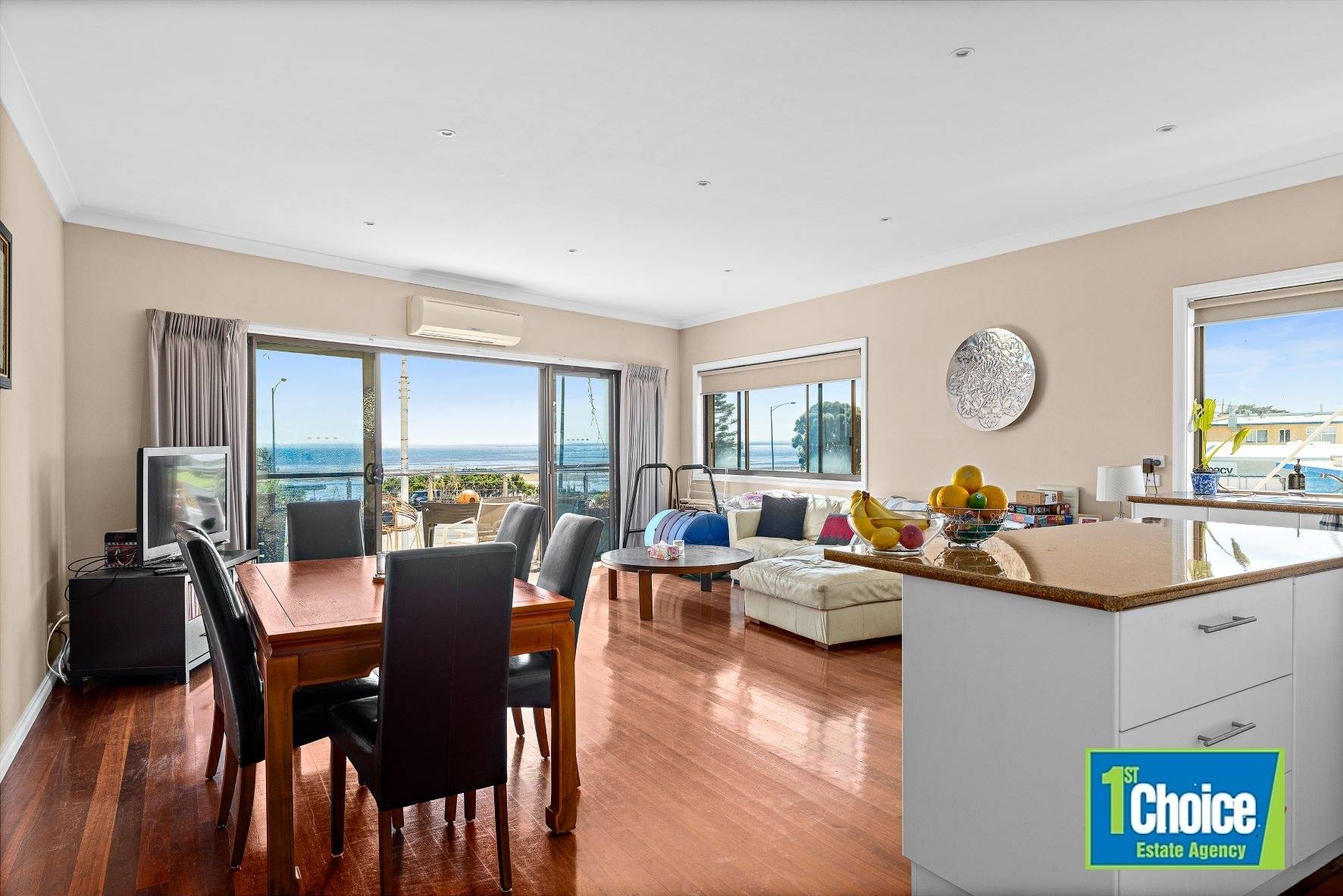 This property is centrally located in the popular seaside town of San Remo, at the gateway to Phillip Island. Positioned on the second level, above commercial properties, this two bedroom unit offers incredible views overlooking the parks and reserves of San Remo, to the beautiful blue water of Westernport Bay and over to French Island. This is a unique and spacious property with a large open plan kitchen, dining & living area that opens out to a private north facing balcony. Two large bedrooms have access to their own bathrooms, the second bathroom having dual access & includes the laundry. Additional features include reverse cycle heating & cooling, timber floorboards to the living areas, and one allocated carpark at the rear of the building.
