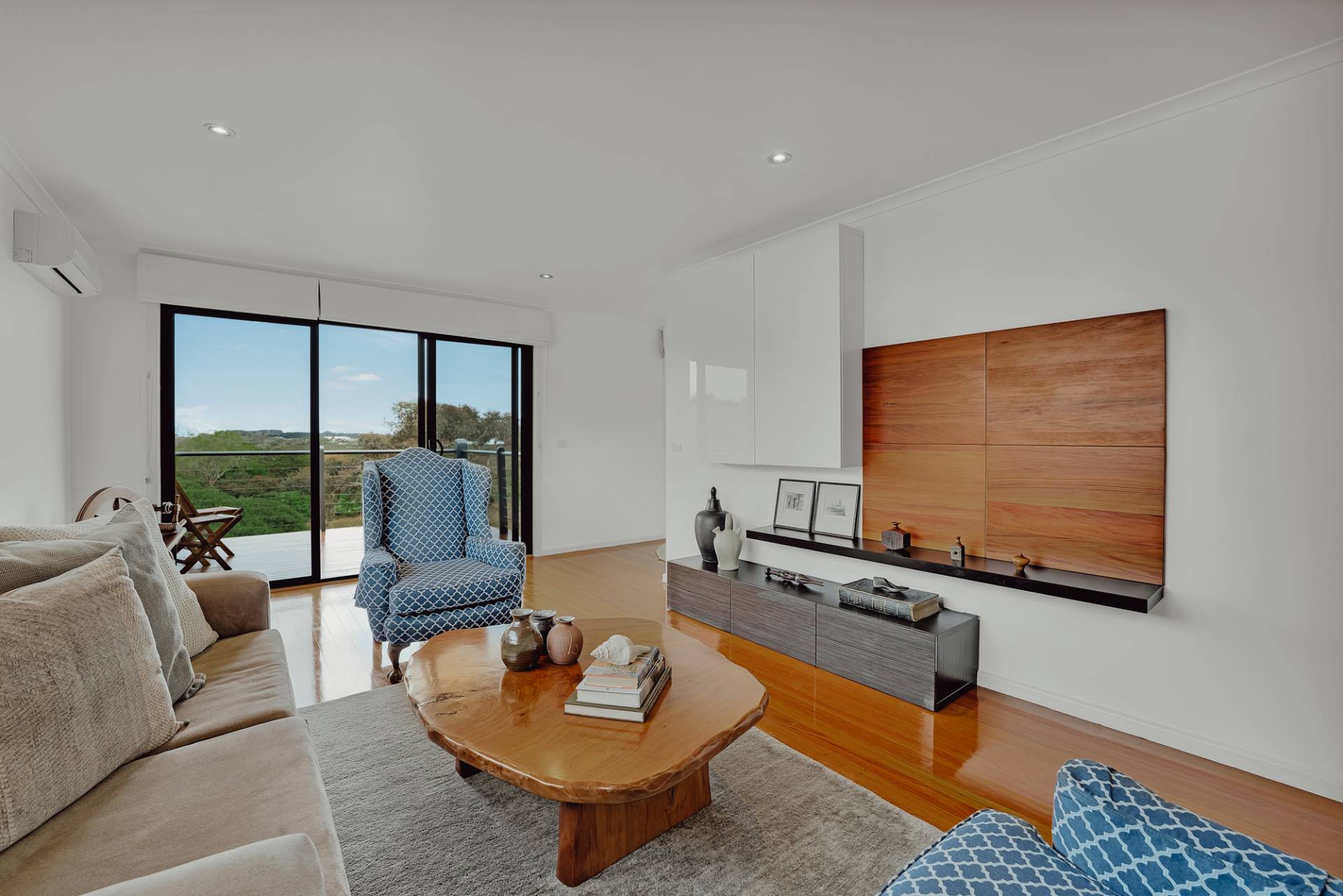 Located on Phillip Island and within the sort after seaside town of Newhaven, this home comes with Panoramic Water views and is perfect for those looking for something special.  Within an easy 1.5 hour’s drive from Melbourne, it offers the perfect option for a sea-change or holiday home away from the hustle and bustle. This light filled family home is located near the Newhaven Marina, Village, boat ramp and stone’s throw to a secluded sandy beach. When you pull up to this unique property, it feels like you have arrived home. As you walk through, you are greeted with a sense of space that is bright and open, with high ceilings and large windows allowing plenty of light to flow through the whole house and capture the views.