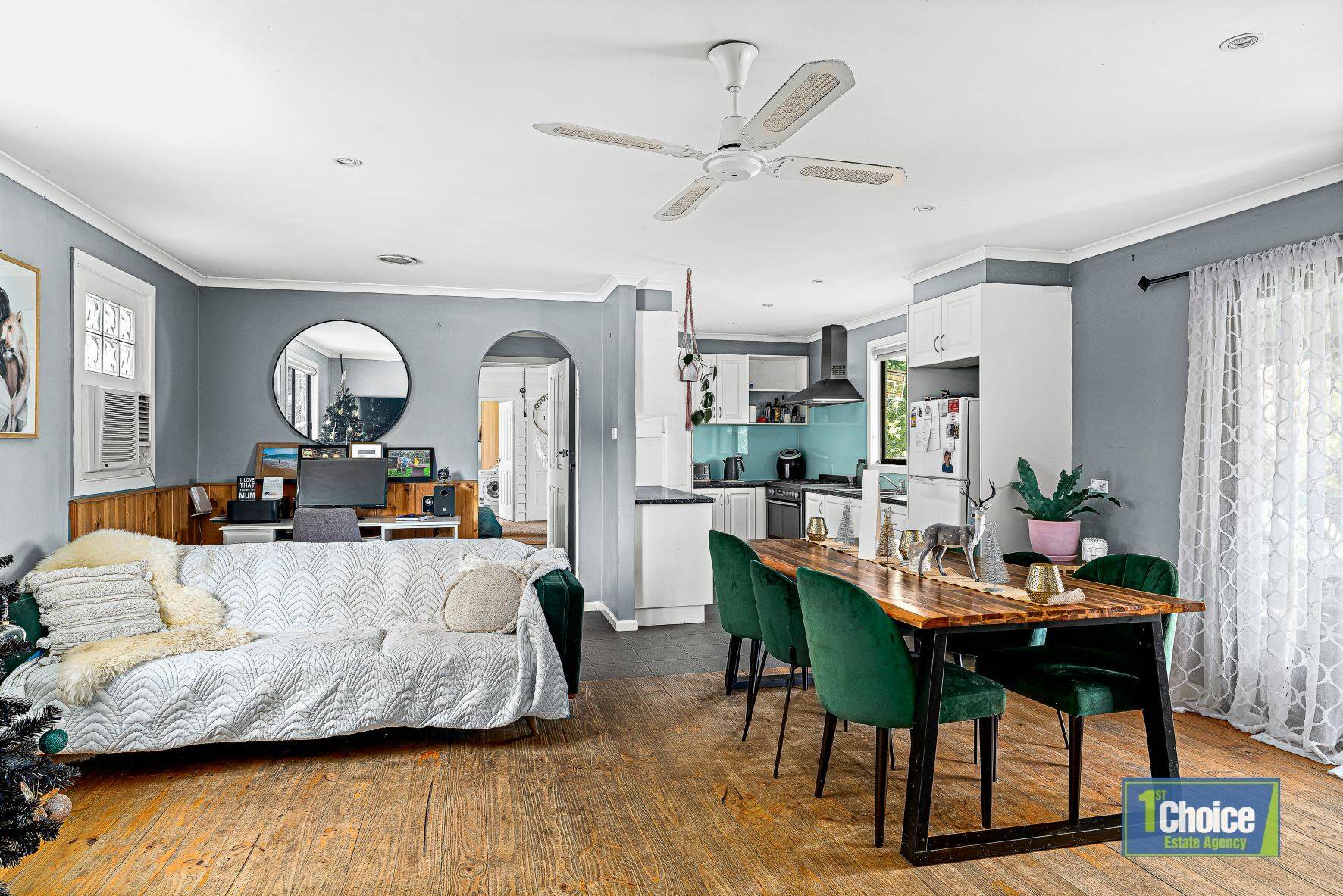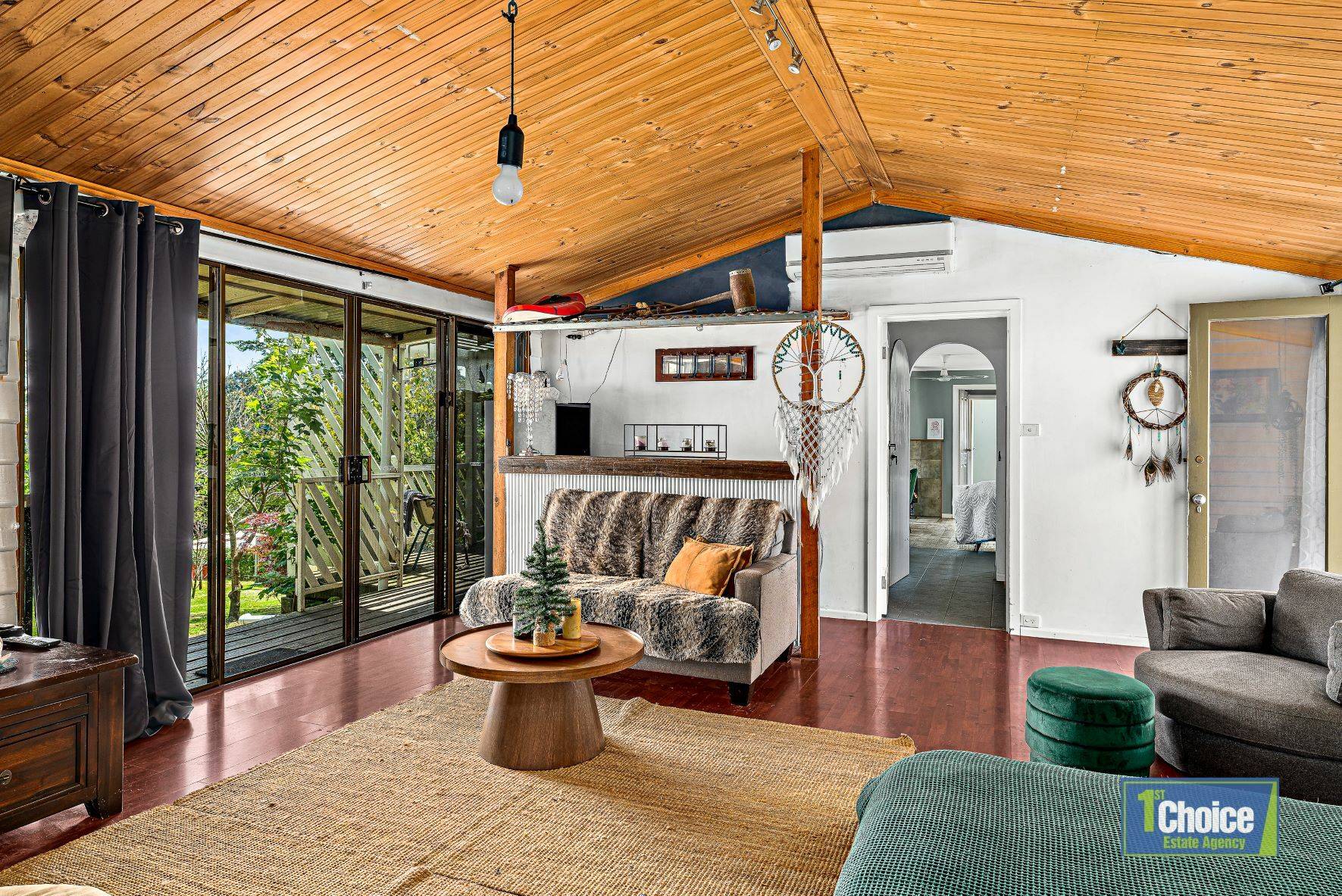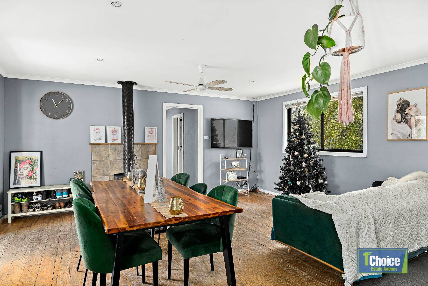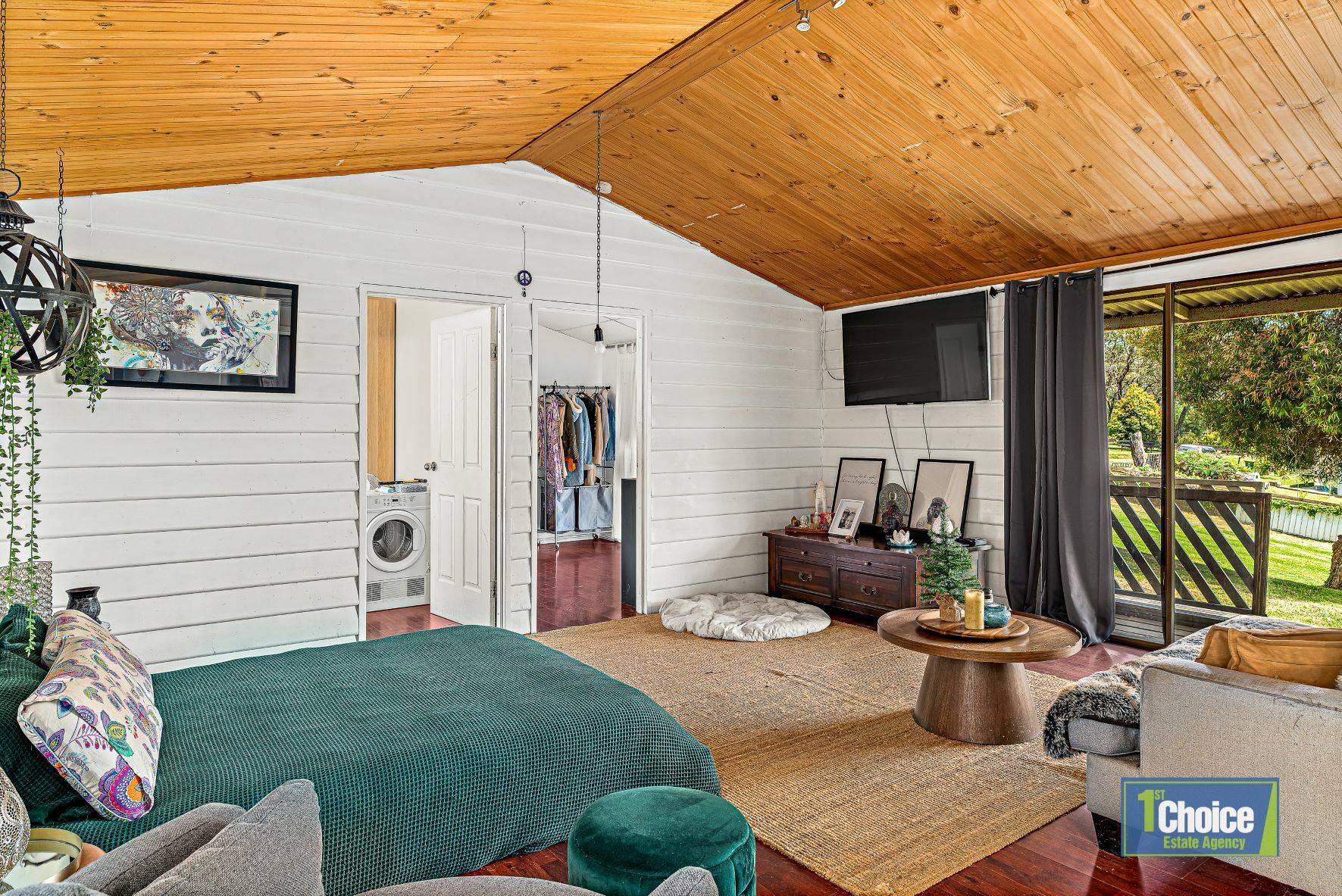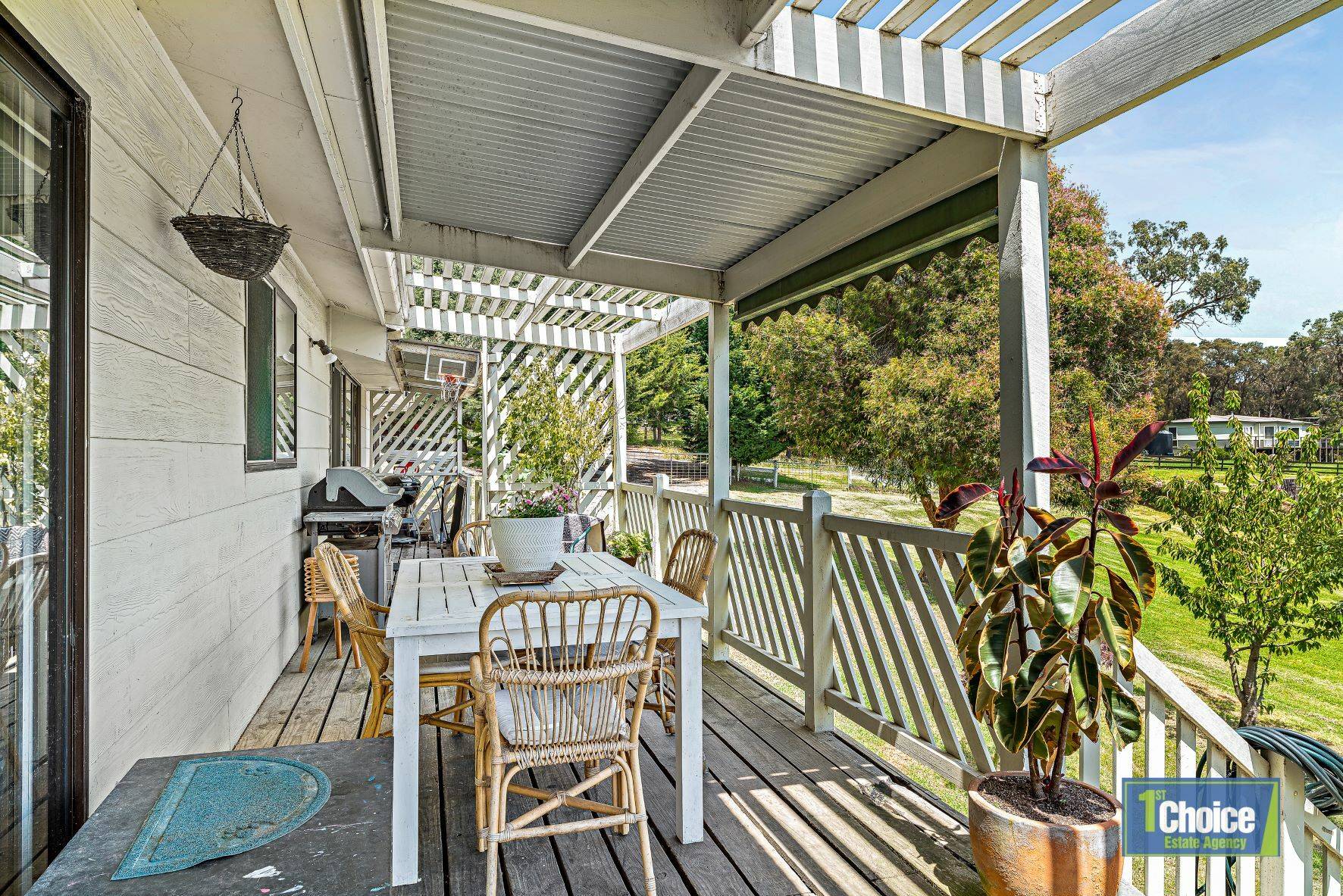 Surrounded by other large parcels of native treed settings, this spacious family home offers something special for those seeking space and serenity within minutes to a township.   The home has plenty of warmth and character with the well designed floor plan giving the choice of families with teenagers to have their own living zones.  Featuring 4 bedrooms, 2 at either end of the home,   formal living/ meals and kitchen area centrally located as is the  family bathroom . The  2nd living/games room with a bar is ideal for the family gatherings.   Additional internal features include split – system air conditioner, wood fire, ceiling fans, timber floors and sliding doors from both living zones to front under cover verandah.  The home  has been positioned on the land so as to leave plenty of space for pets or just room for the kids to play.  Externally, the house is complemented by double garage,  carport for boat/caravan or trailer, garden shed, chook pen and other miscellaneous shedding.  The home is elevated leaving plenty of storage space underneath.    There is a large fenced off area ideal for a horse or pet sheep.  Solar panels and water tanks keep the property at low maintenance running costs.
