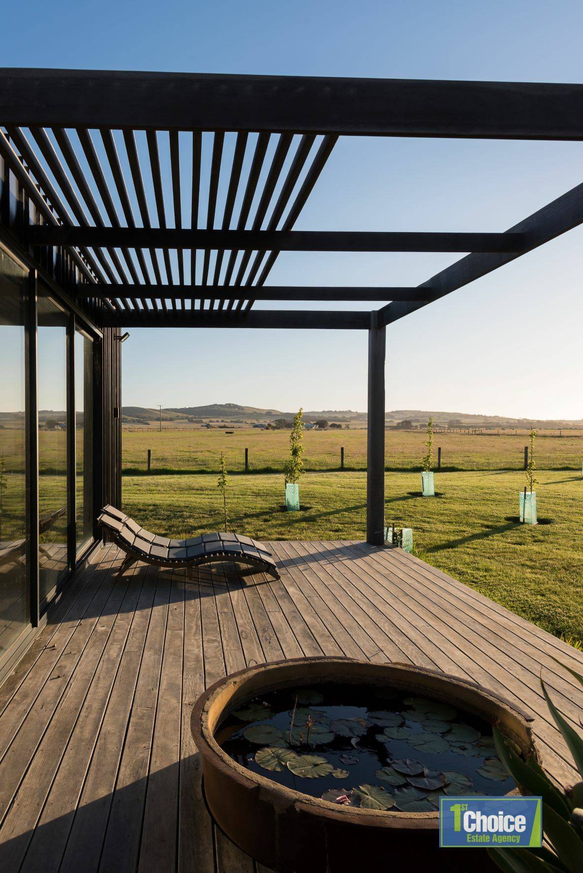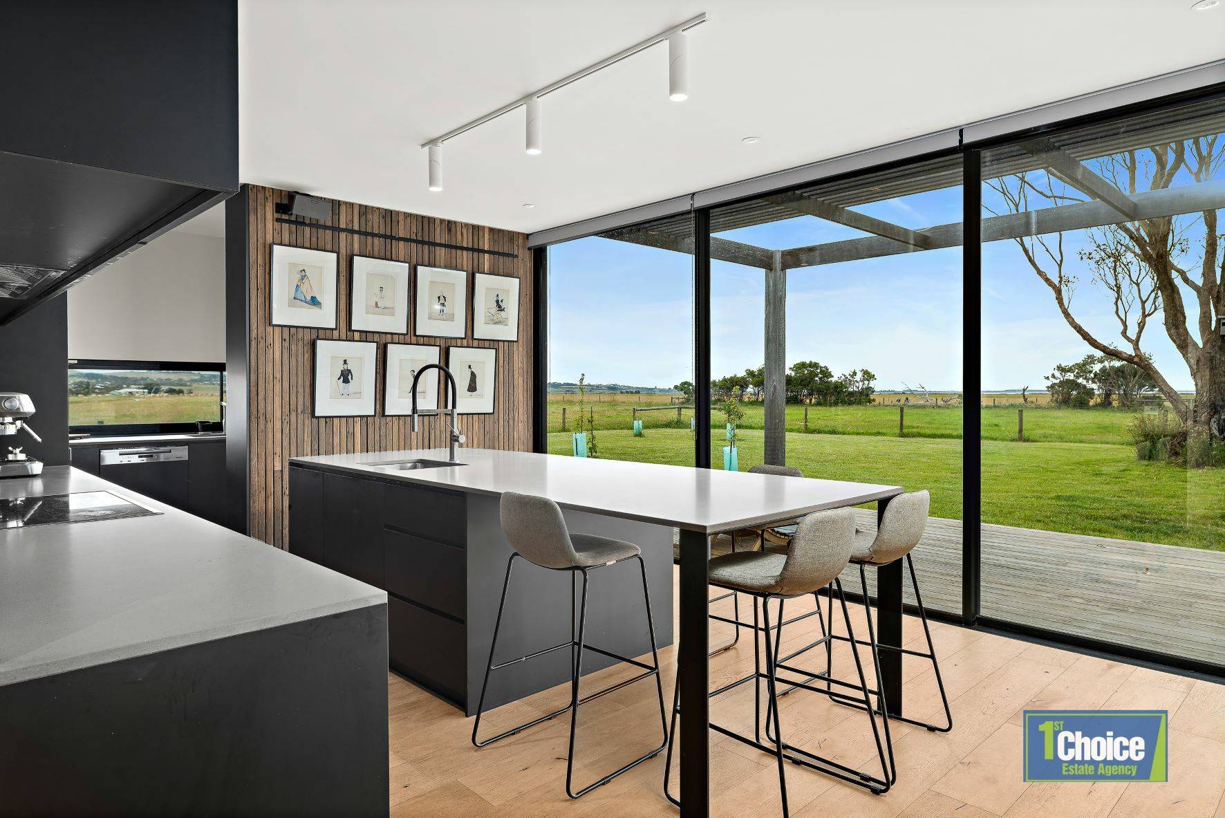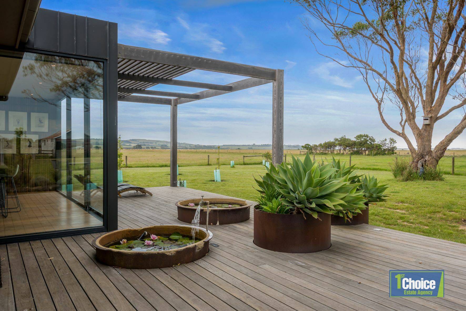 This signature home is set in a beautiful rural setting, enjoying breathtaking views over farmland and Westernport Bay to San Remo bridge and beyond. This tucked-away and very private oasis is less than an hour and a half from Melbourne.