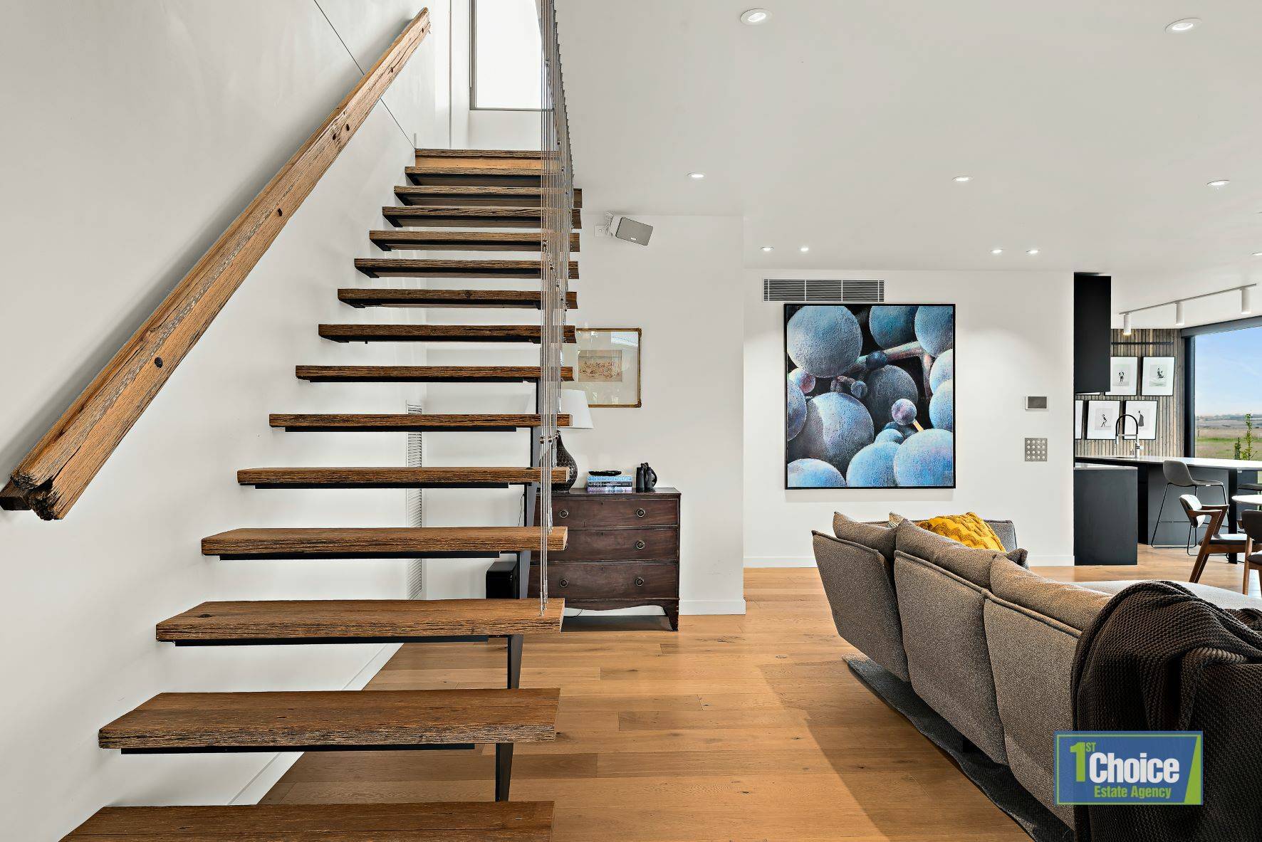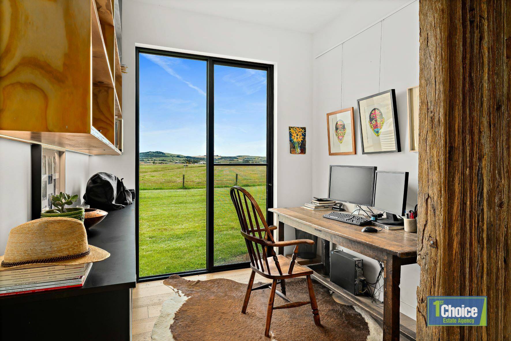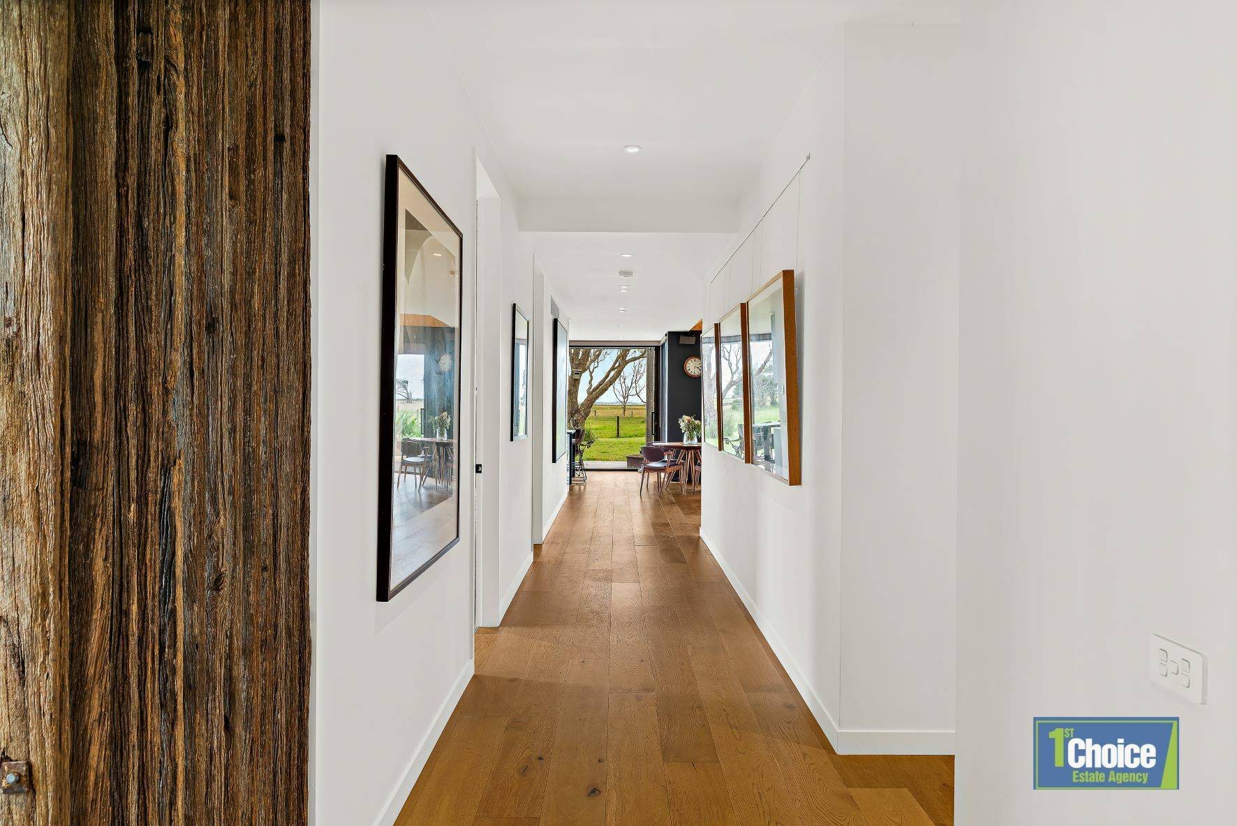 This signature home is set in a beautiful rural setting, enjoying breathtaking views over farmland and Westernport Bay to San Remo bridge and beyond. This tucked-away and very private oasis is less than an hour and a half from Melbourne.